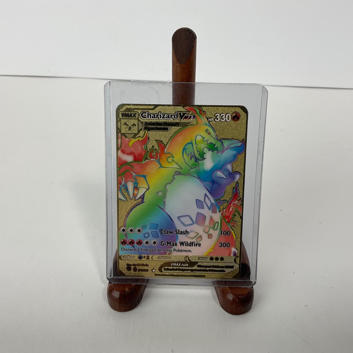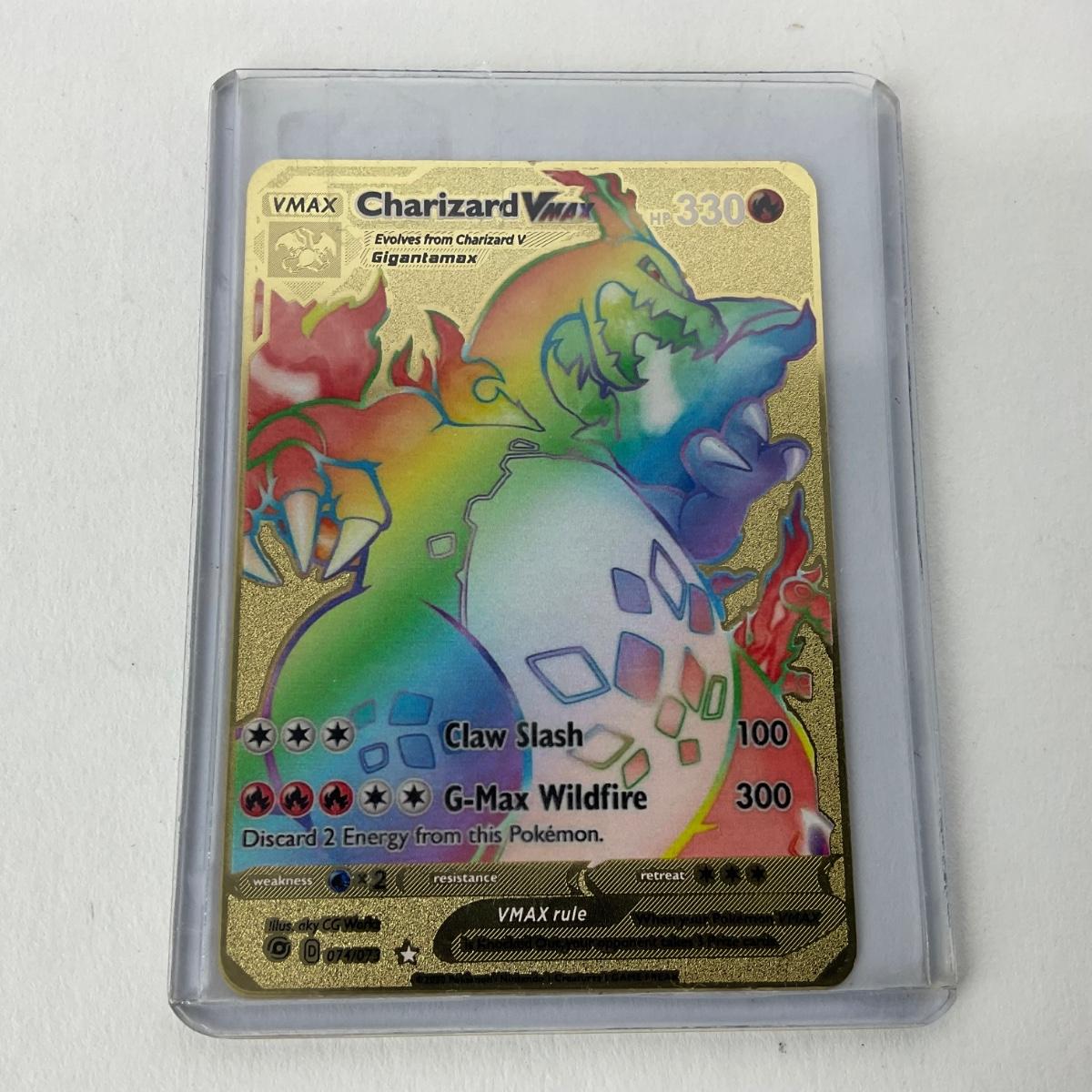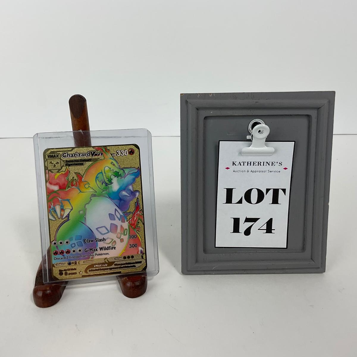 One Pokémon gold foil Charizard card in plastic sleeve. Please see photos for details and condition. ::: Shipping is available on this lot. If you require shipping you must let us know at the close of the auction. We will coordinate with you after the item has been won. Shipping fees will include insurance up to or exceeding the value of all items being mailed. If you have any questions regarding this lot please contact the auctioneer either via this website, by direct email or by phone. PICK UP TIMES and other important information can be found in the TERMS and DESCRIPTION of the auction. Please take a look for pertinent information. Thanks!