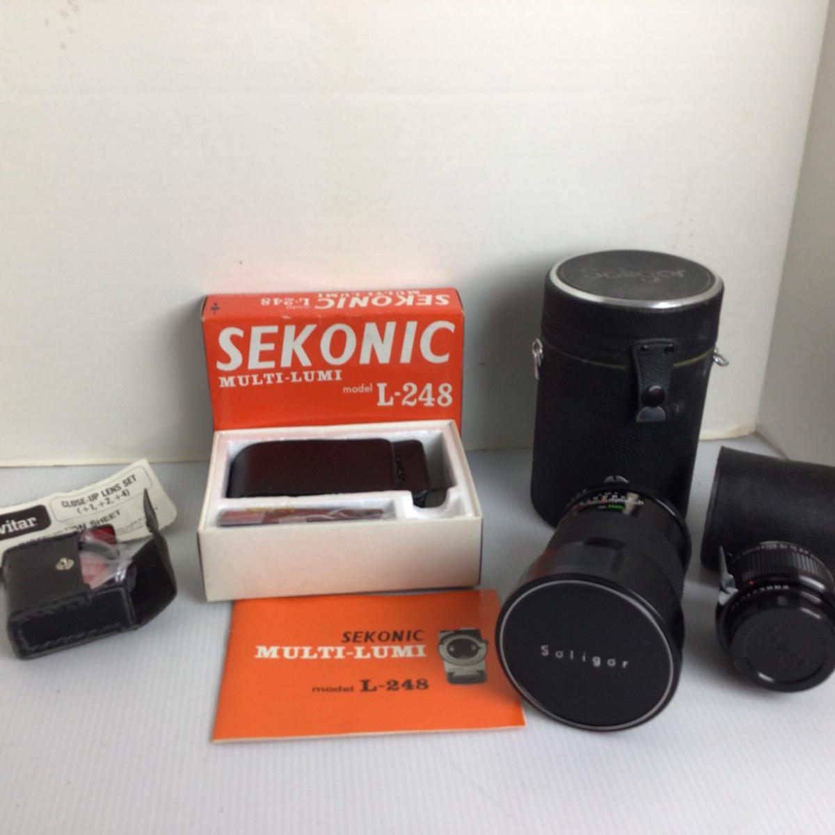 Lot contains 2 Solinger camera lens, SEKONIC L-248 multi lumi and assorted close up lens.