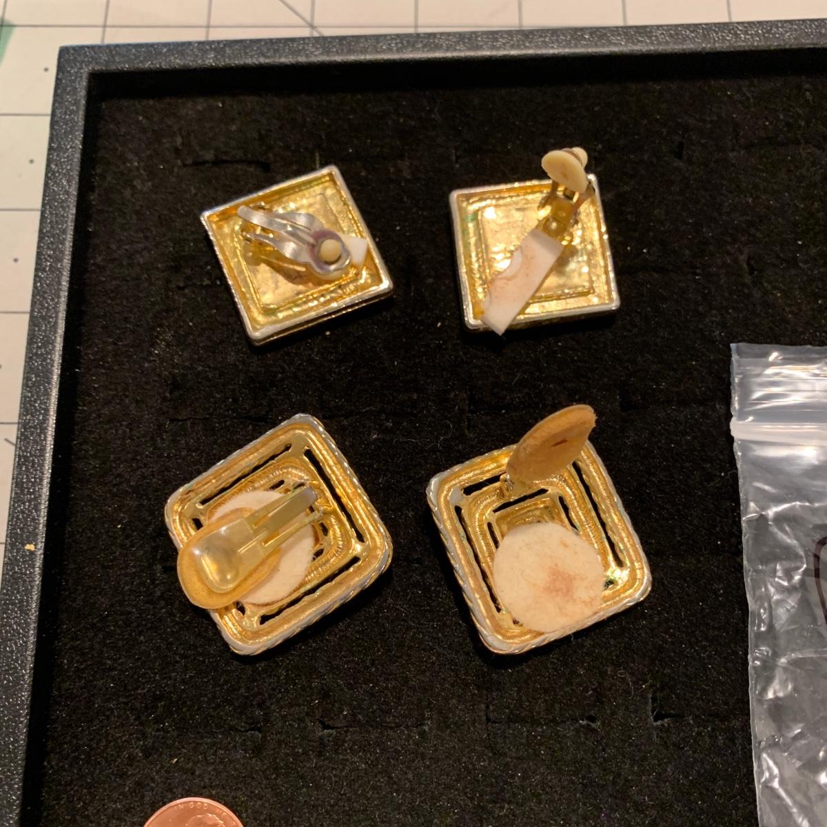 #175 Black/Gold Clip On Earrings-D55