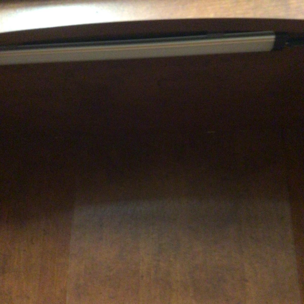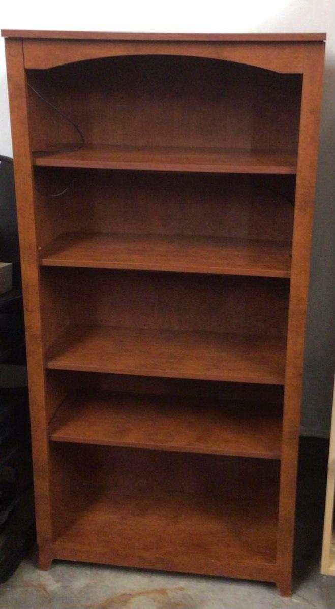 Bookshelf is pressed wood with lights added, there are 2 of these available, this listing is for one of them. Measures 59” tall x 28.5” wide x 13” deep.