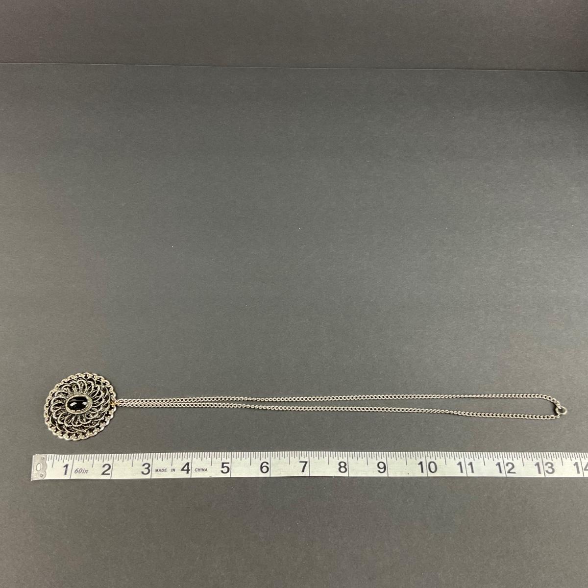 Three costume jewelry silver tone marked Korea necklaces. Please see photos for details and condition. Any condition statement is given as a courtesy to a client, is an opinion, and should not be treated as a statement of fact. Reference to condition written, oral or within a condition report shall not be regarded as a full account of condition and may not include all defects, alterations, or restorations. Absence of a condition report does not imply a lot is flawless or lacking imperfections or damage. Katherine’s Auction & Appraisal Service shall have no responsibility for any error or omission. Returns shall not be accepted on the basis of condition. ::: Shipping is available on this lot. If you require shipping you must let us know at the close of the auction. We will coordinate with you after the item has been won. Shipping fees will include insurance up to or exceeding the value of all items being mailed. If you have any questions regarding this lot please contact the auctioneer either via this website, by direct email or by phone. PICK UP TIMES and other important information can be found in the TERMS and DESCRIPTION of the auction. Please take a look for pertinent information. Thanks!