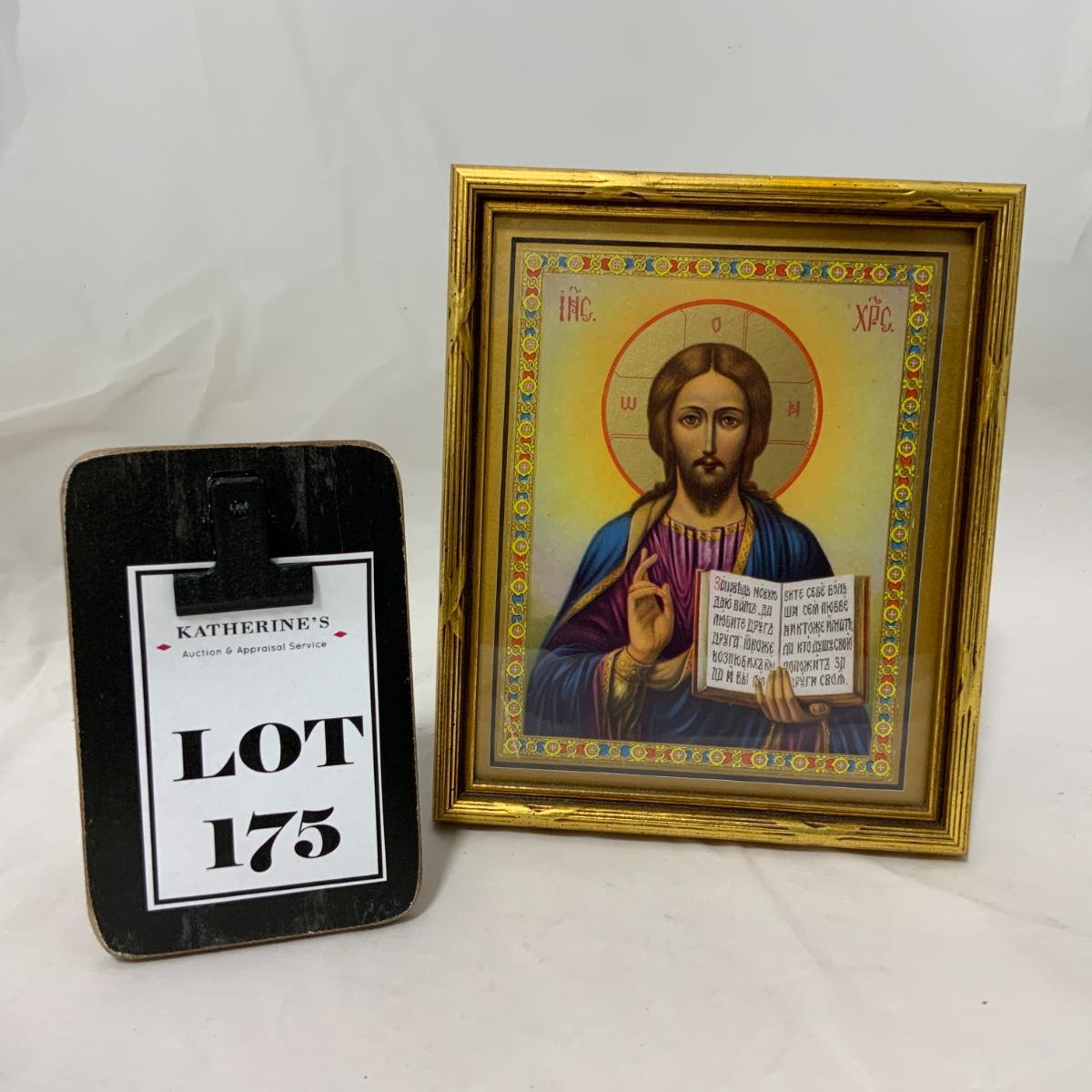 From the Estate of Peter Radovanovich: Beautifully rendered Eastern Orthodox Idol of Jesus. The colors are vibrant and the touches of gold are stunning. Please see photos for details and condition. ::: Shipping is available on this lot. If you require shipping you must let us know at the close of the auction. We will coordinate with you after the item has been won. Shipping fees will include insurance up to or exceeding the value of all items being mailed. If you have any questions regarding this lot please contact the auctioneer either via this website, by direct email or by phone. PICK UP TIMES and other important information can be found in the TERMS and DESCRIPTION of the auction. Please take a look for pertinent information. Thanks!