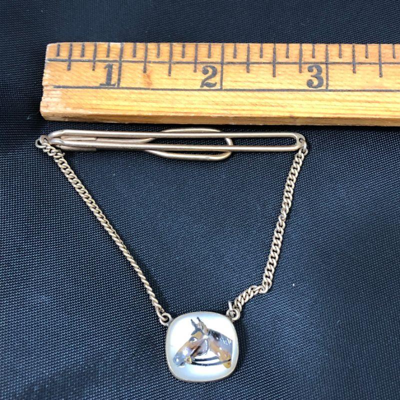 Vintage Reverse Painted Equestrian Essex Glass pin and Tie Clip. Beautiful renderings of the most noble of creatures.