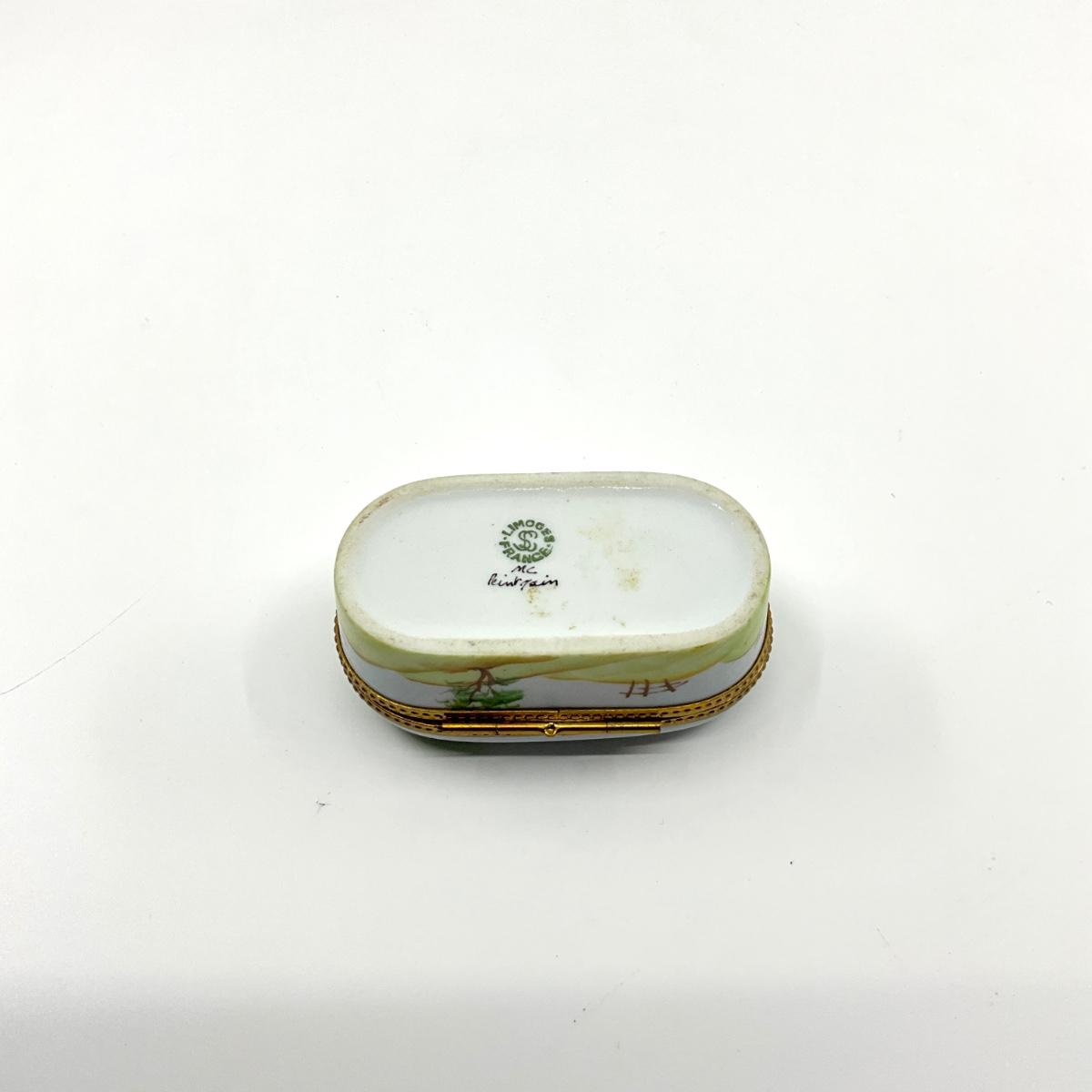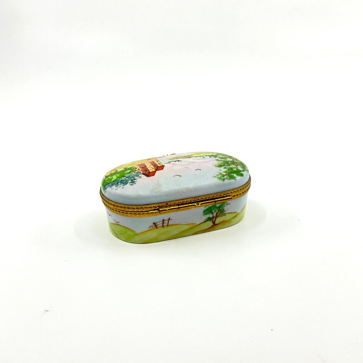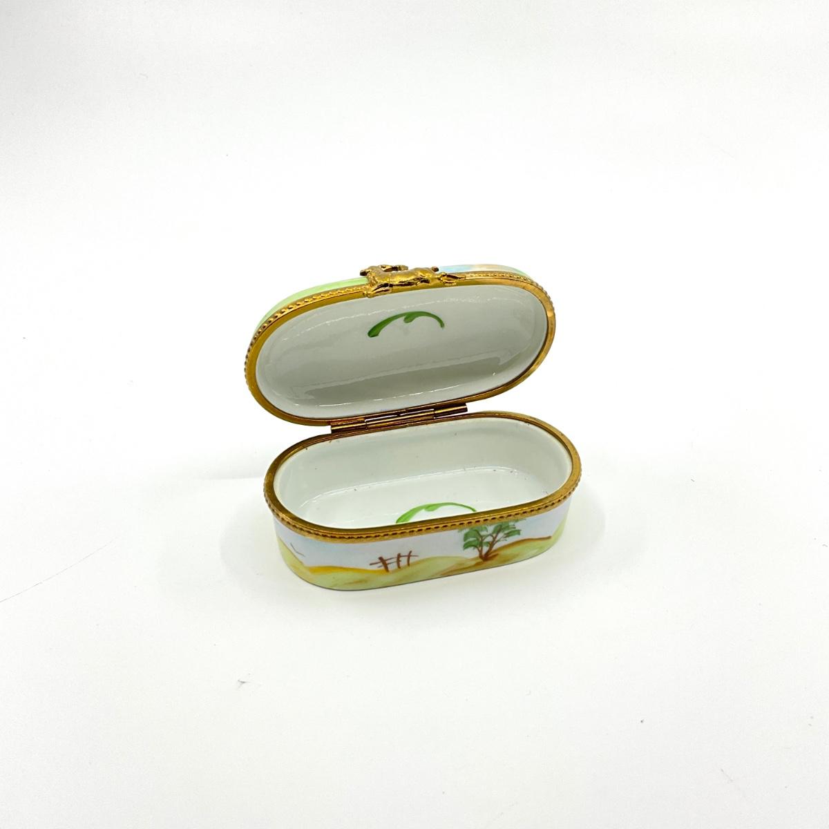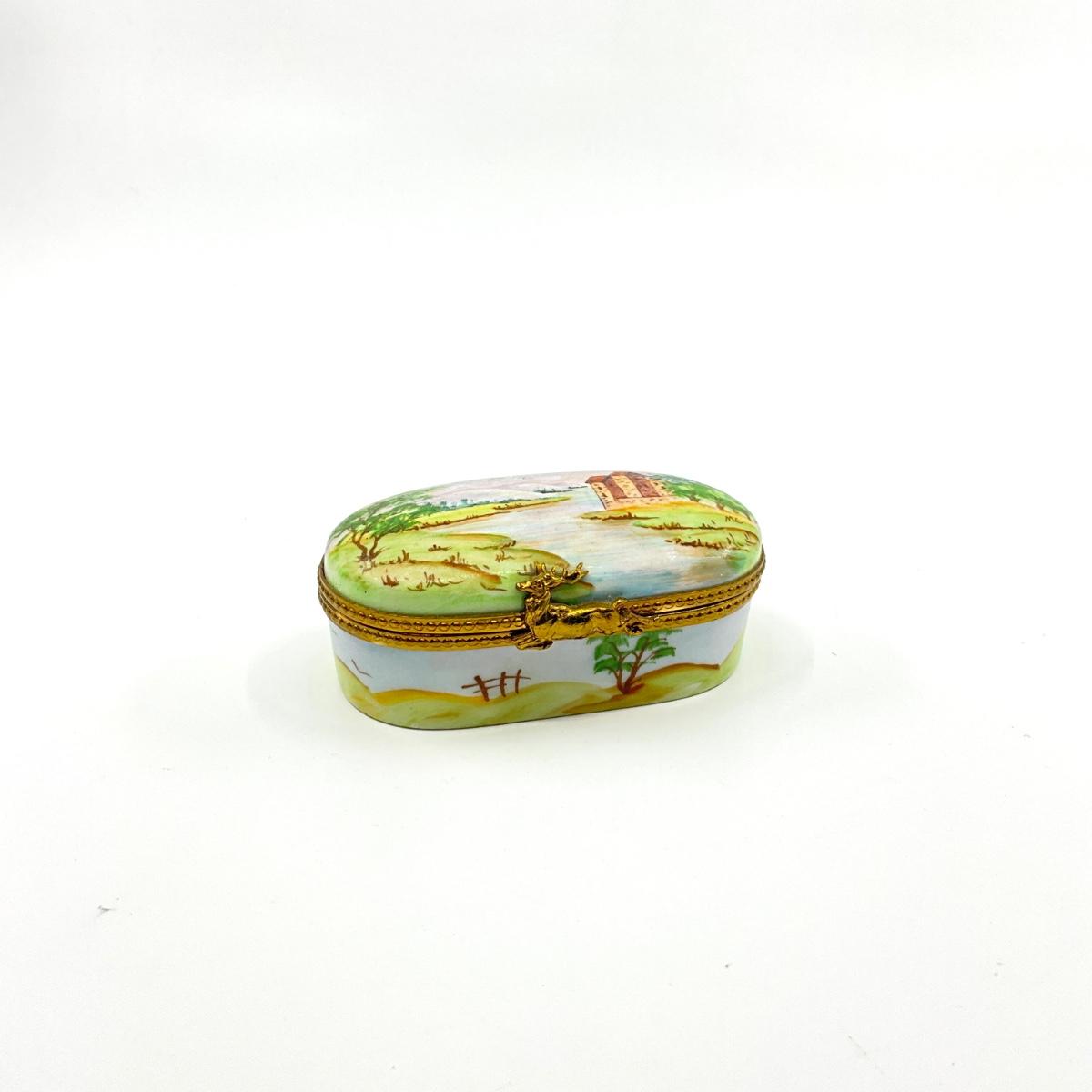 175 Limoge France Hand-painted Oval Paint Main Country Scene Porcelain Box