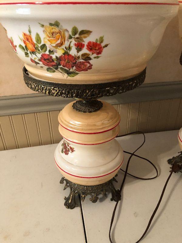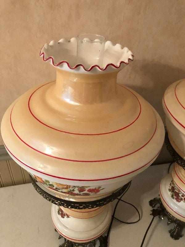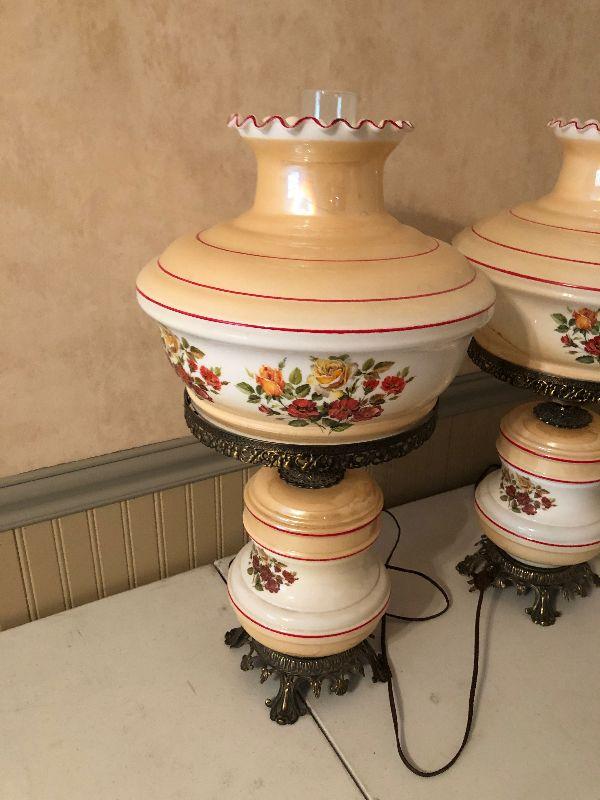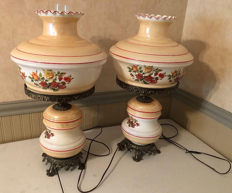 #175 PAIR of ANTIQUE LUSTERWARE With ROSED LAMPS