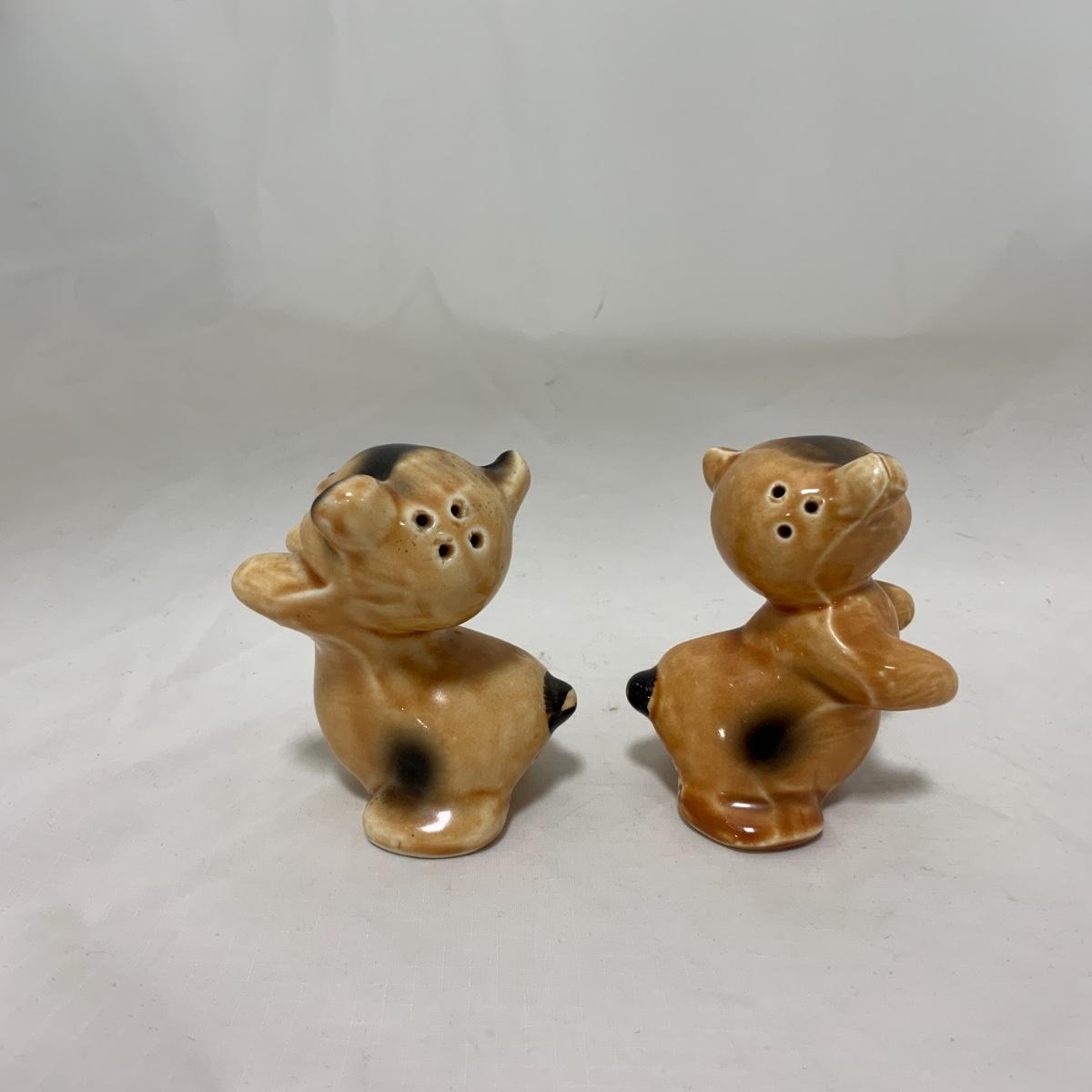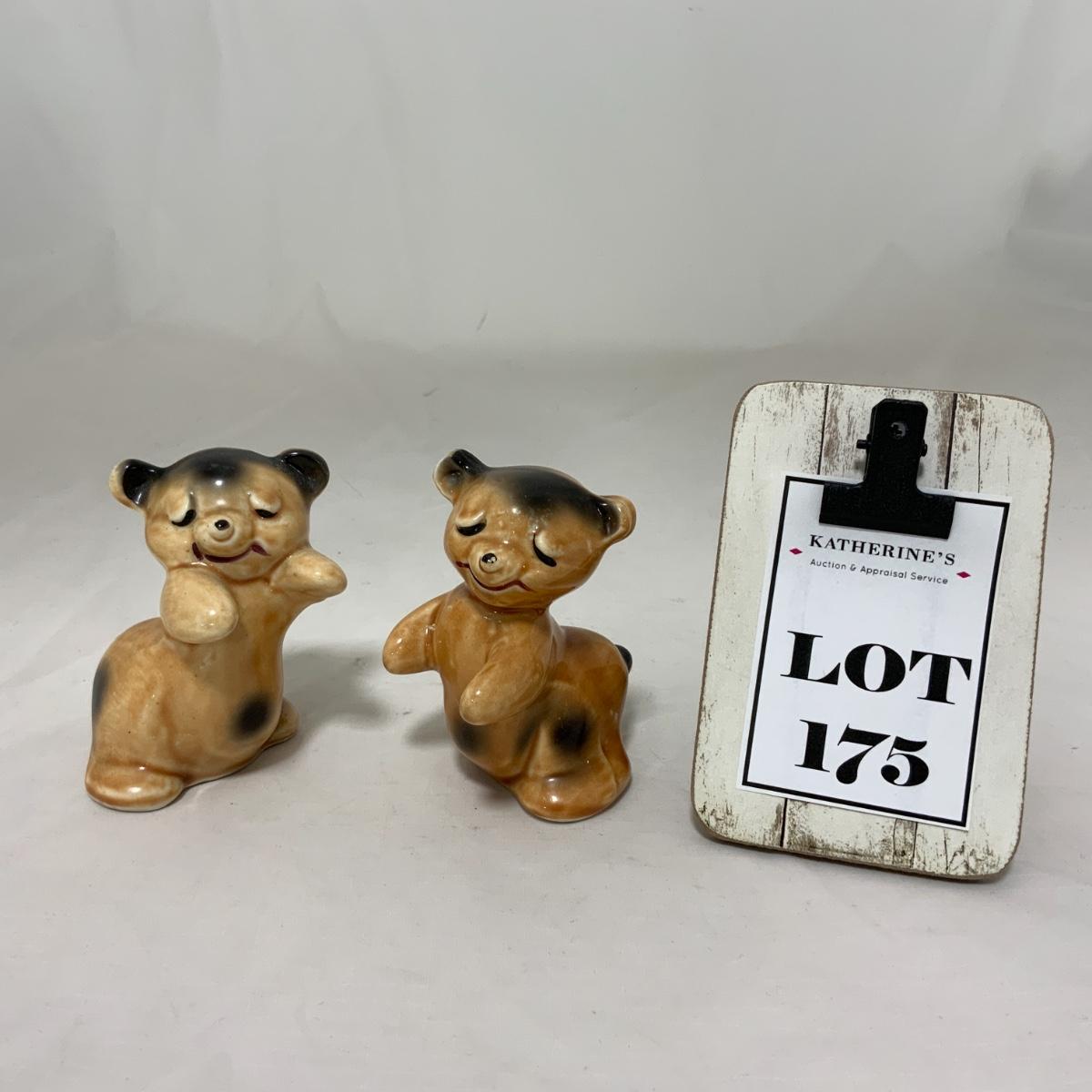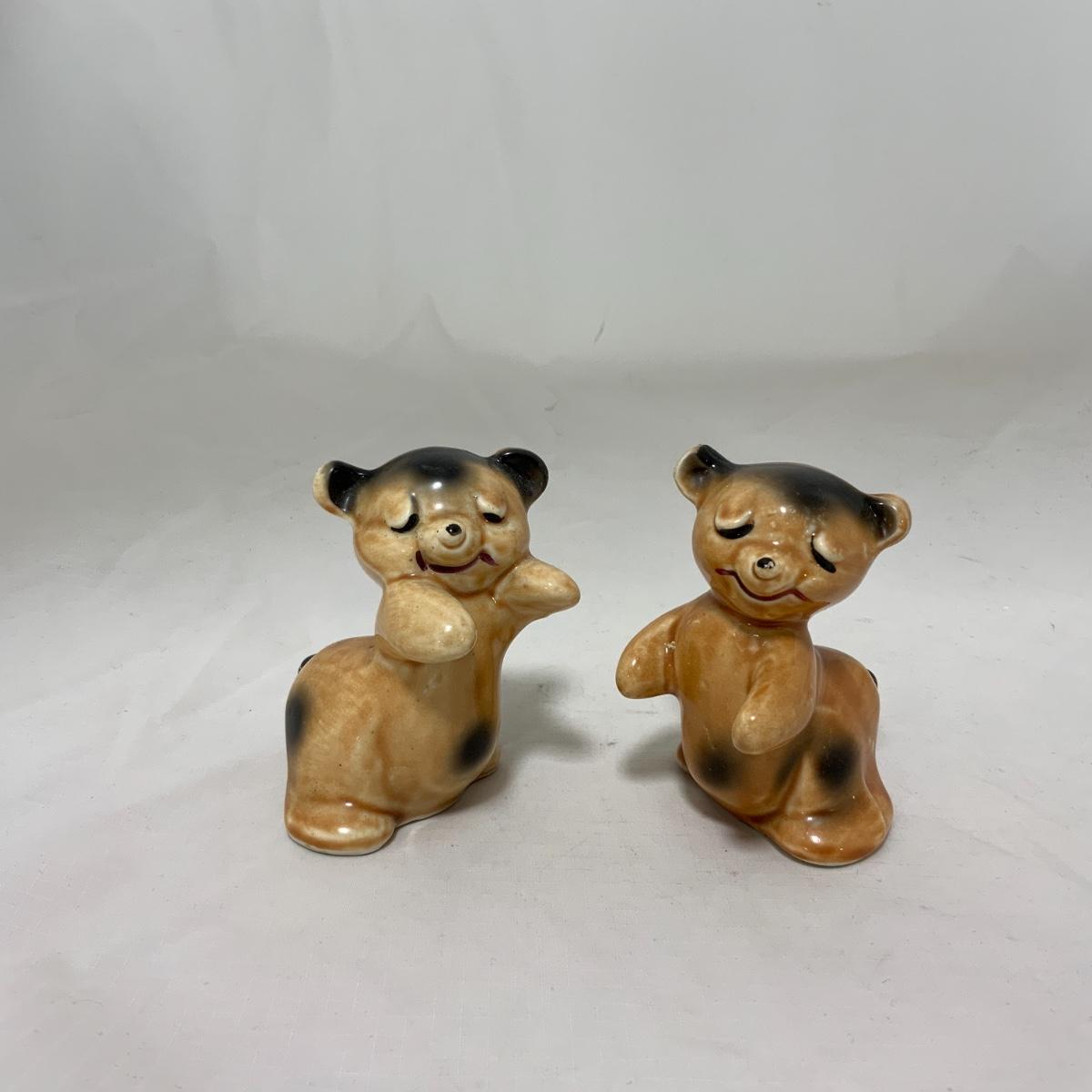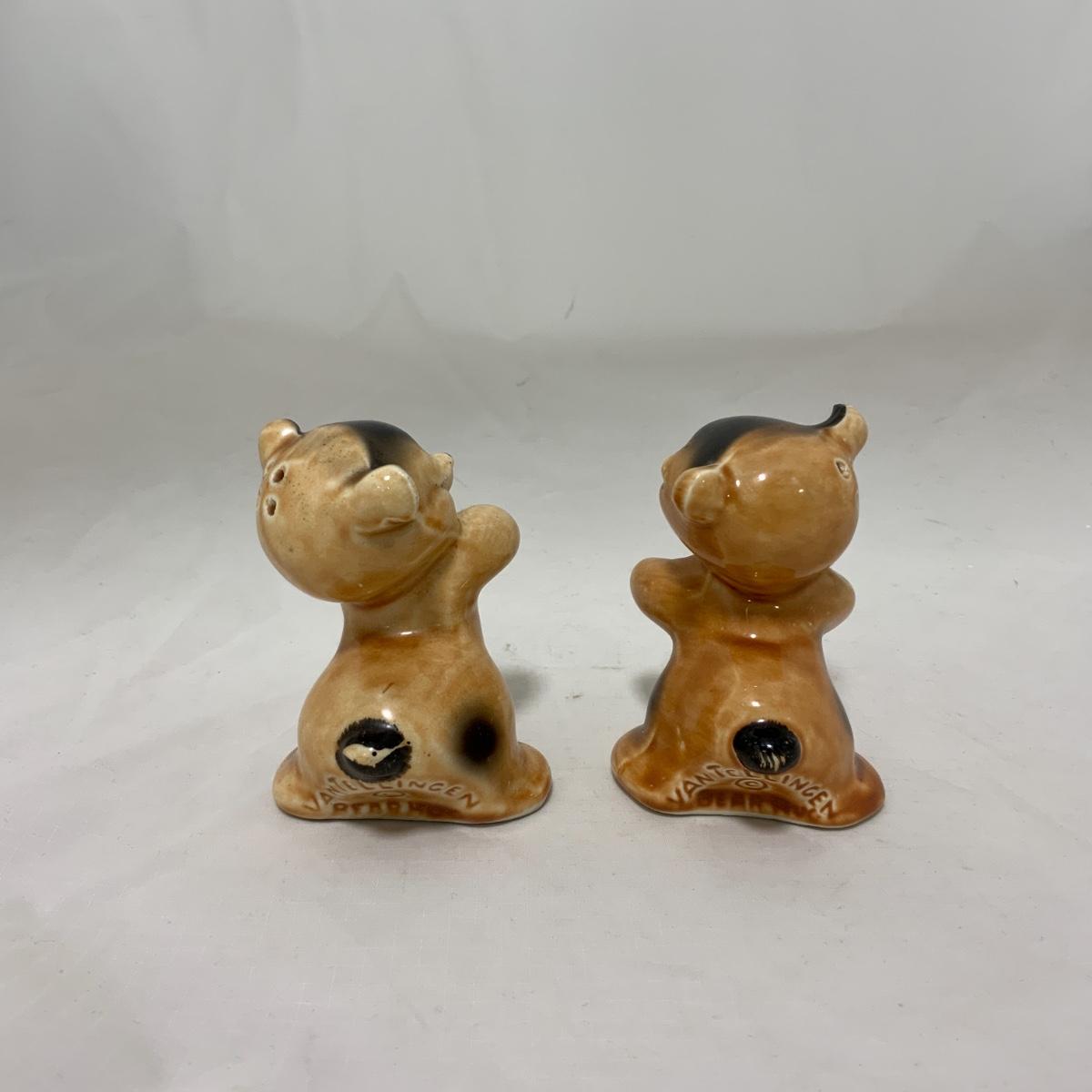 From the Estate of Peter and Alice Radovanovich: Another adorable set of 1950s Bear Huggies from Van Tellingen. You can’t not look at them and smile. Both pieces are in exceptional vintage condition. Please see photos for details and condition. ::: Shipping is available on this lot. If you require shipping you must let us know at the close of the auction. We will coordinate with you after the item has been won. Shipping fees will include insurance up to or exceeding the value of all items being mailed. If you have any questions regarding this lot please contact the auctioneer either via this website, by direct email or by phone. PICK UP TIMES and other important information can be found in the TERMS and DESCRIPTION of the auction. Please take a look for pertinent information. Thanks!