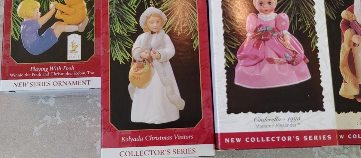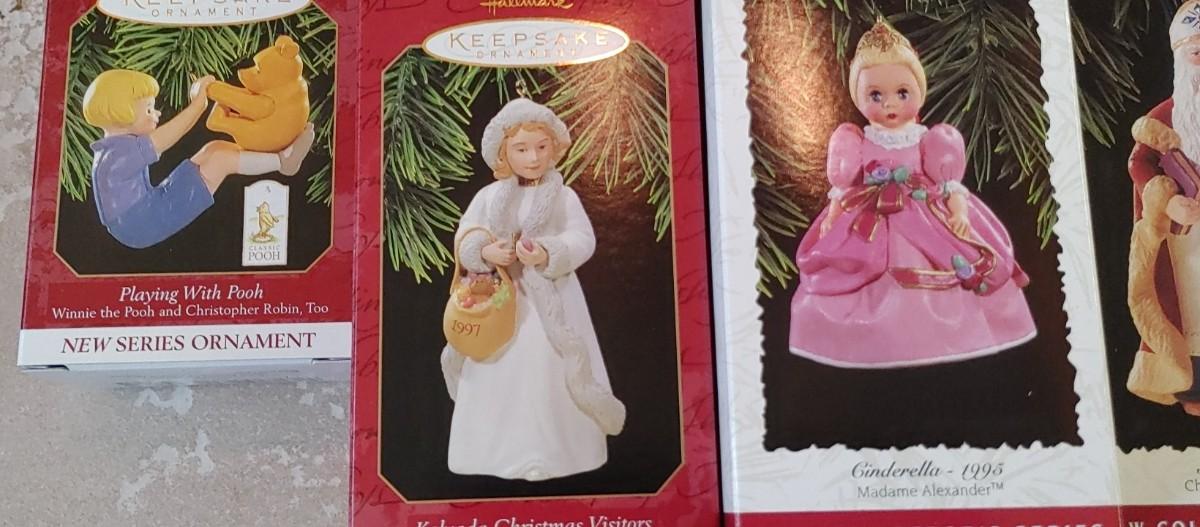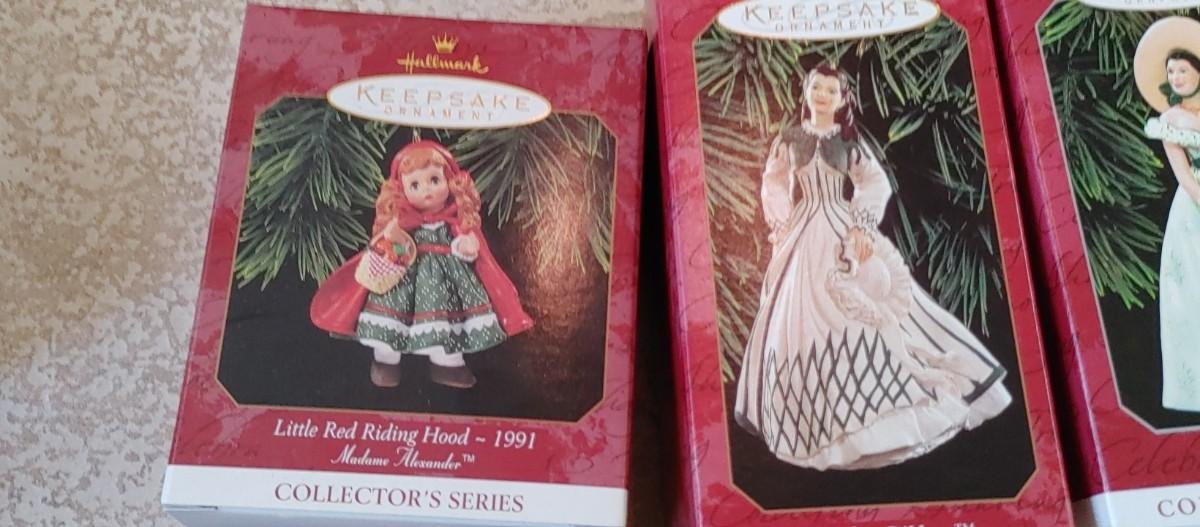 #176 ( 11) Vintage Hallmark Ornaments Gown W The Wind & More In Boxes three Scarlett O'Hara,Cinderella series & more.