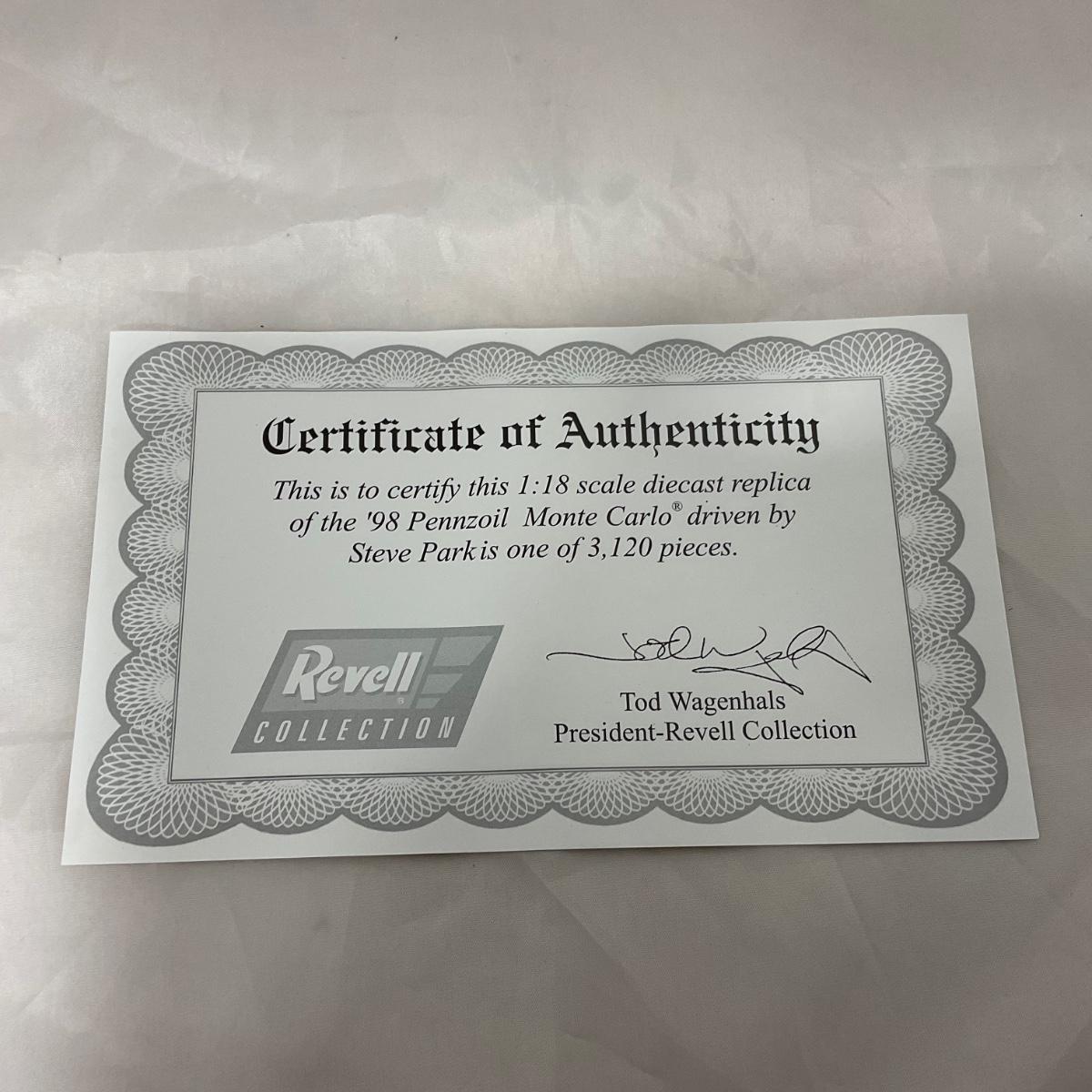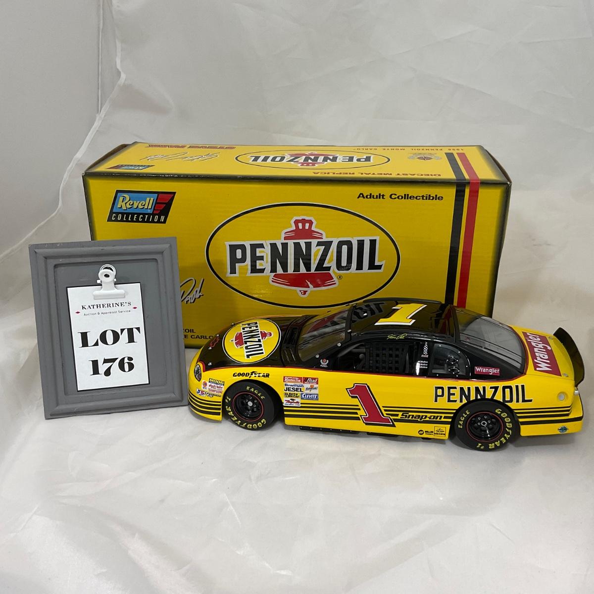 One NASCAR die cast 1:18 scale 1998 Pennzoil Chevrolet Monte Carlo figure. Comes with a Certificate of Authenticity. Please see photos for details and condition. ::: Shipping is available on this lot. If you require shipping you must let us know at the close of the auction. We will coordinate with you after the item has been won. Shipping fees will include insurance up to or exceeding the value of all items being mailed. If you have any questions regarding this lot please contact the auctioneer either via this website, by direct email or by phone. PICK UP TIMES and other important information can be found in the TERMS and DESCRIPTION of the auction. Please take a look for pertinent information. Thanks!