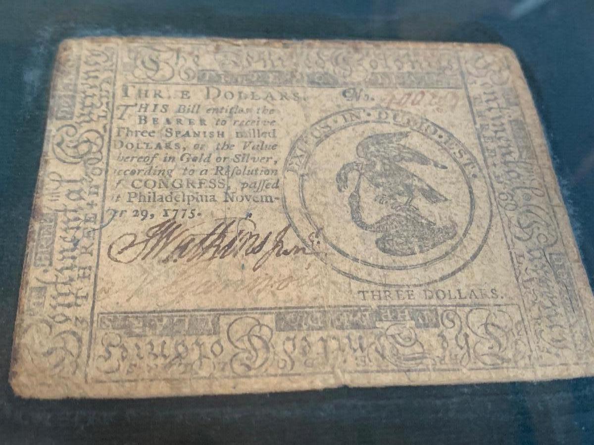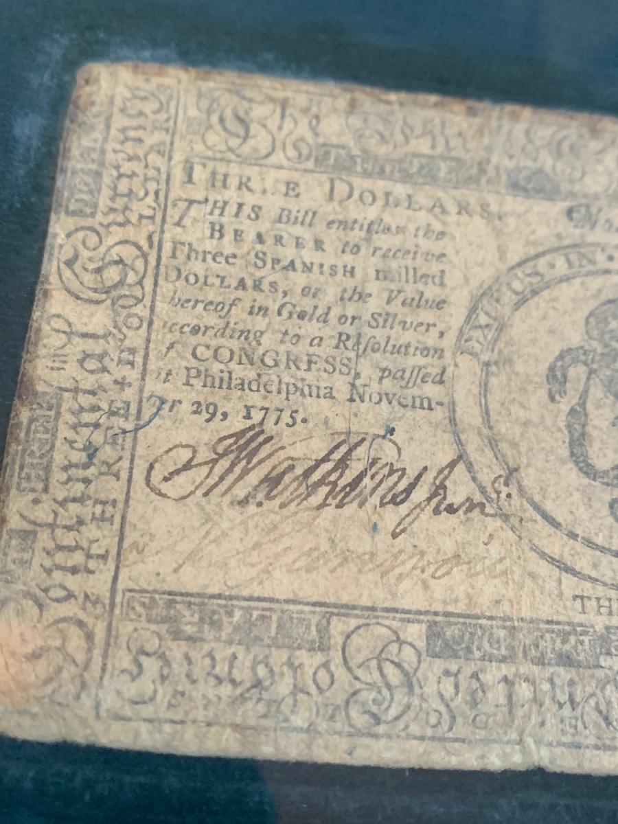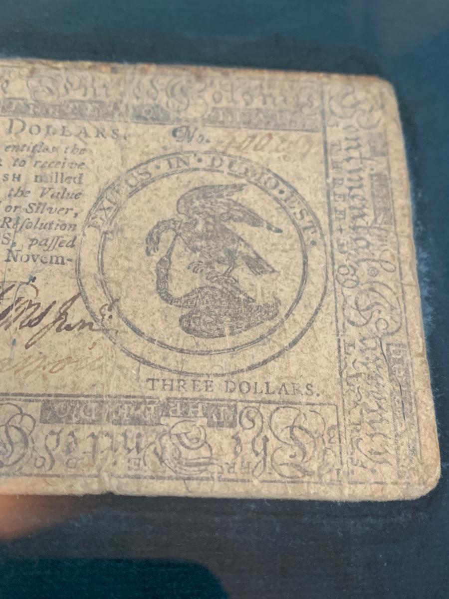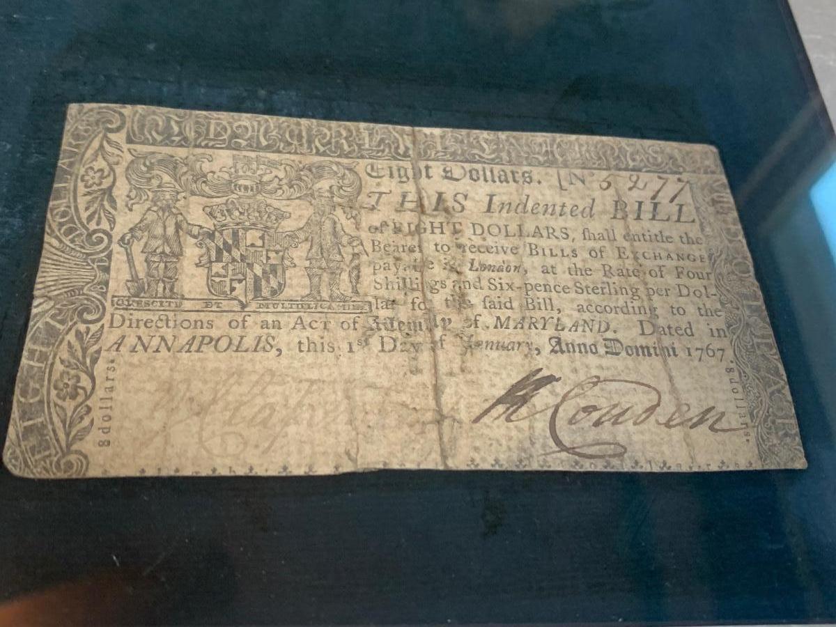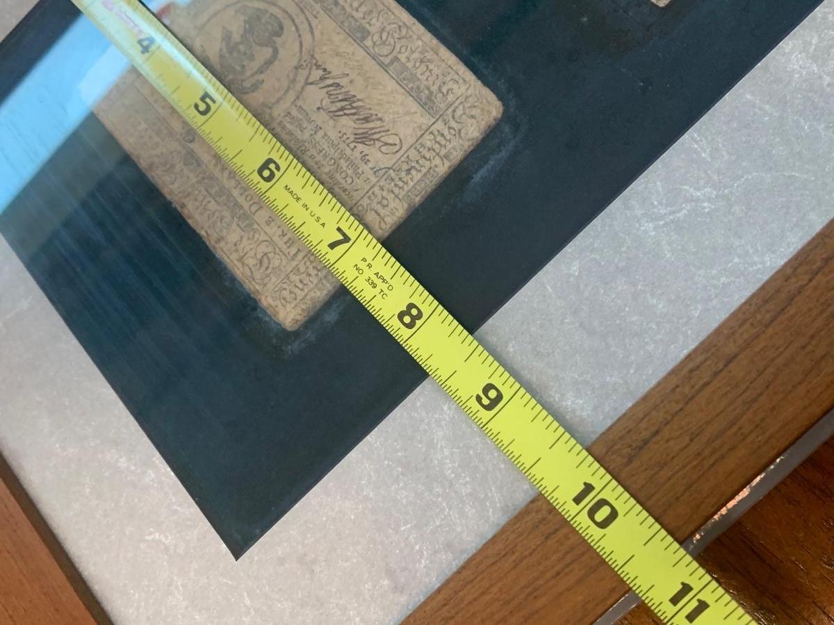 2 piece paper currency lot - Maryland Colonial era . Selling as mounted by previous owner in frame. We have other colonial era currency lots up for auction. See lot C1 and C3.