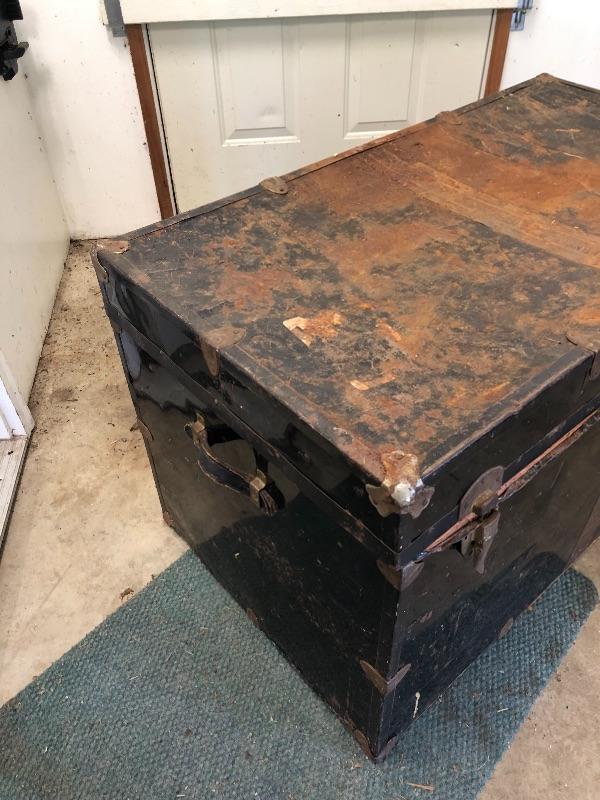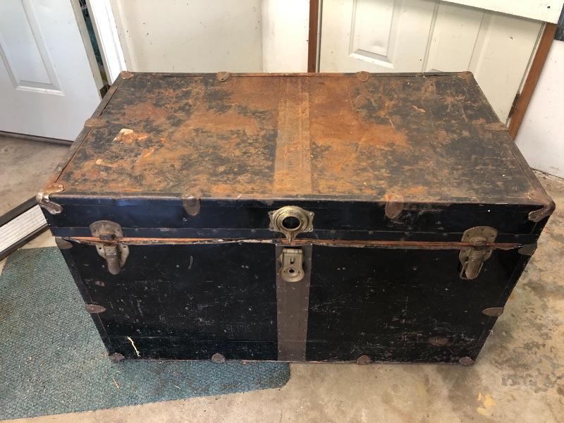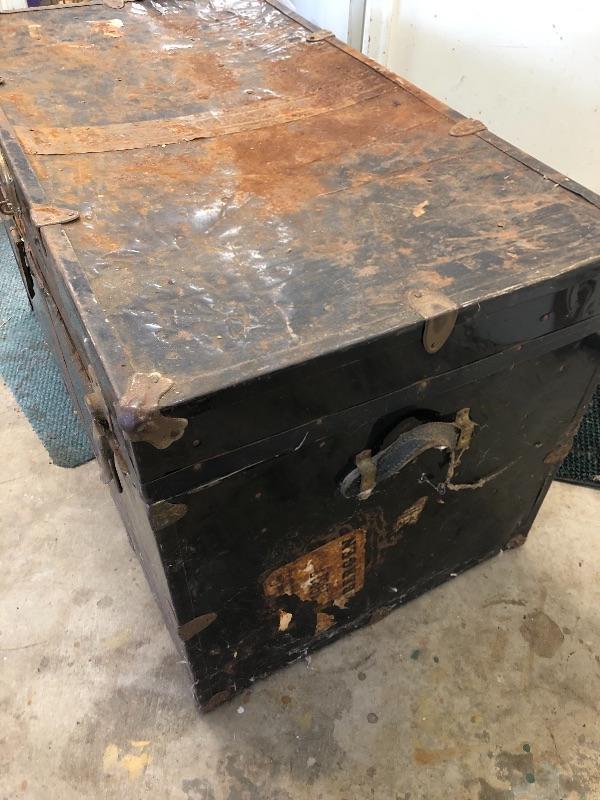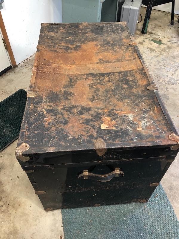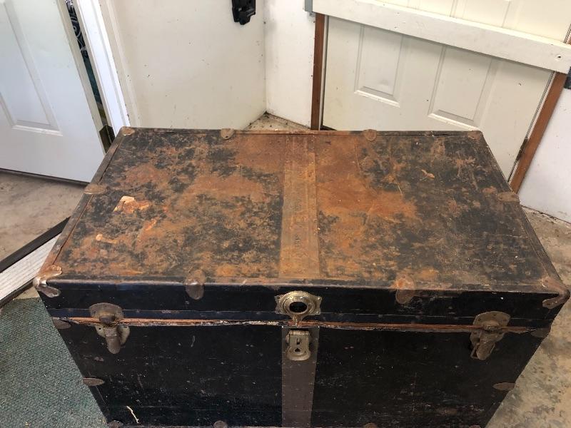 Antique Well Traveled Travel Trunk. 23 inches Tall x 22.75 Deep x 40 wide