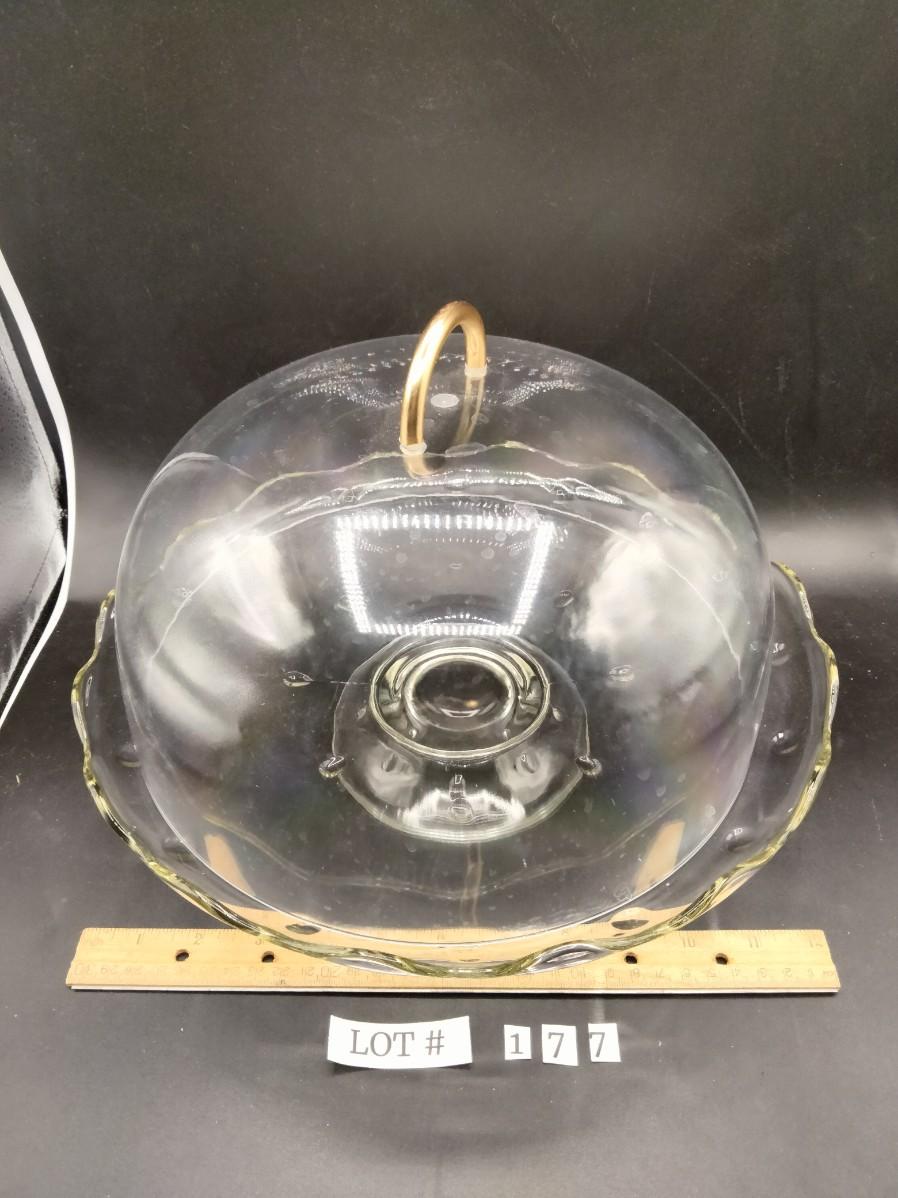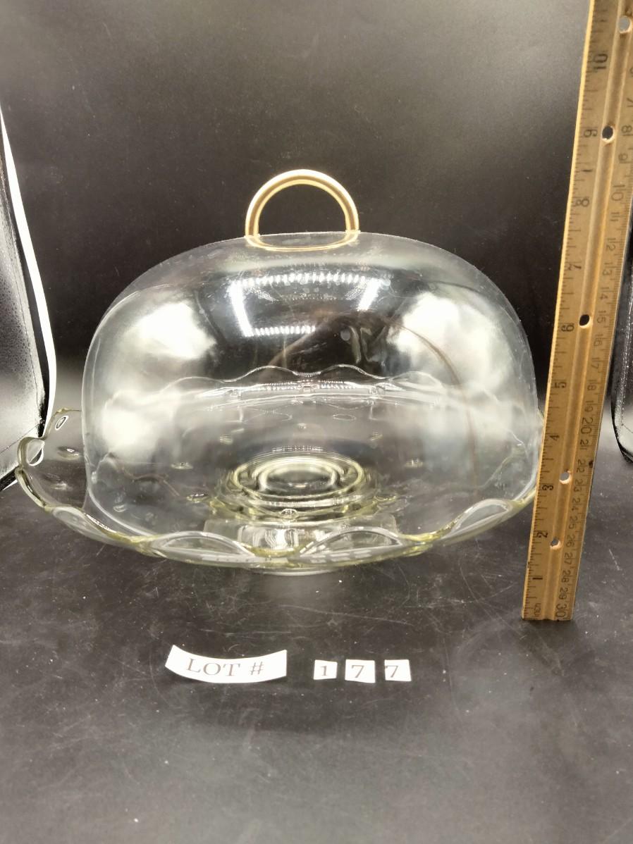 177 - Vintage teardrop cake stand and plastic dome