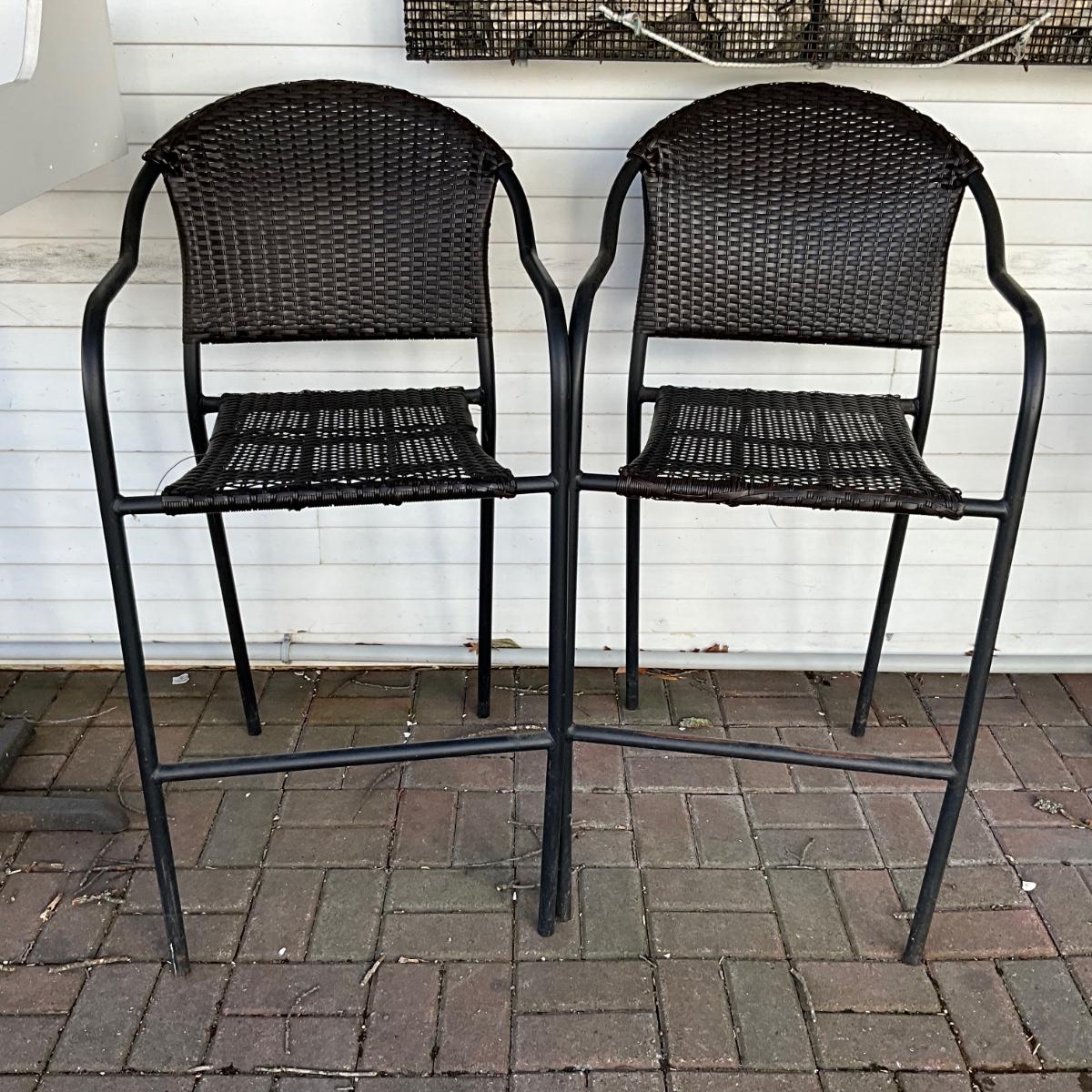 177 Pair of Outdoor Plastic Weave Bar Stools