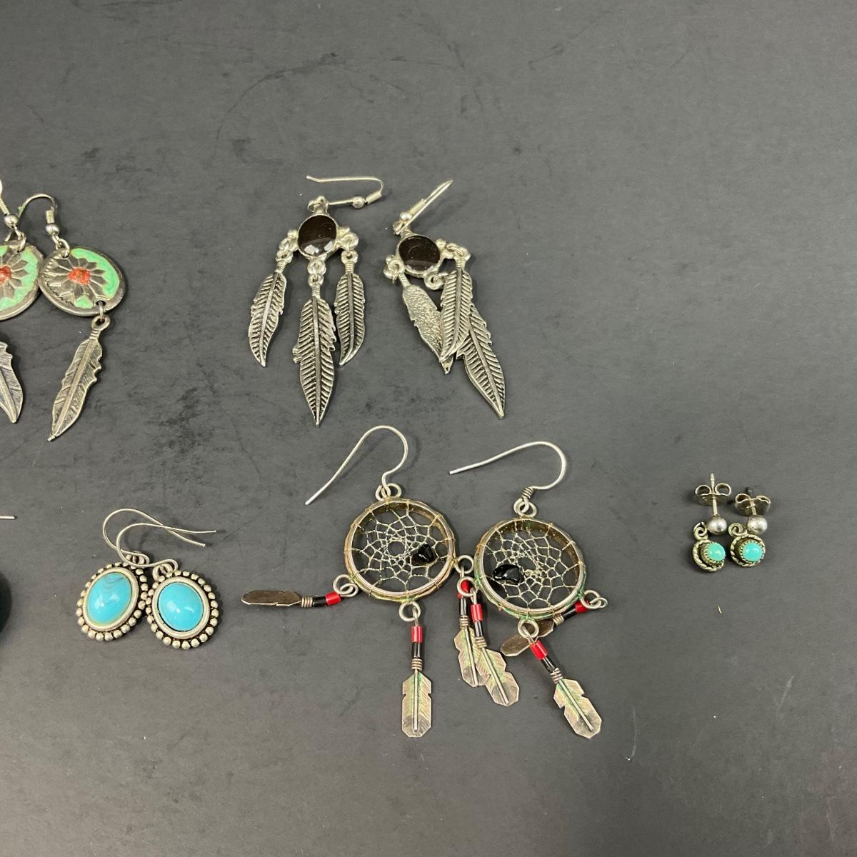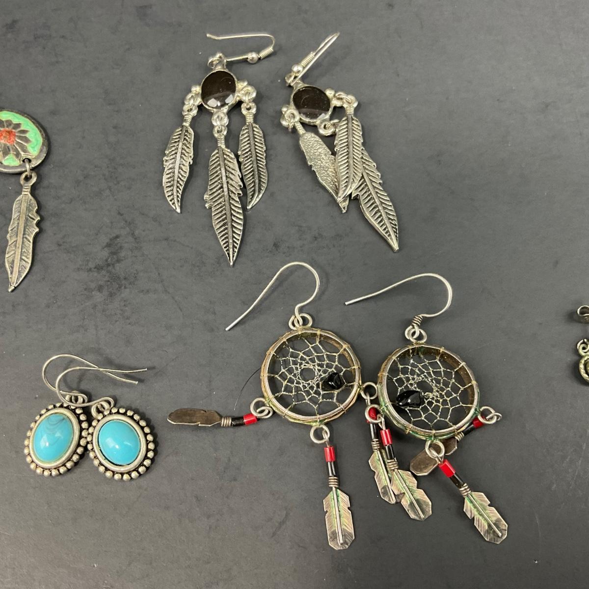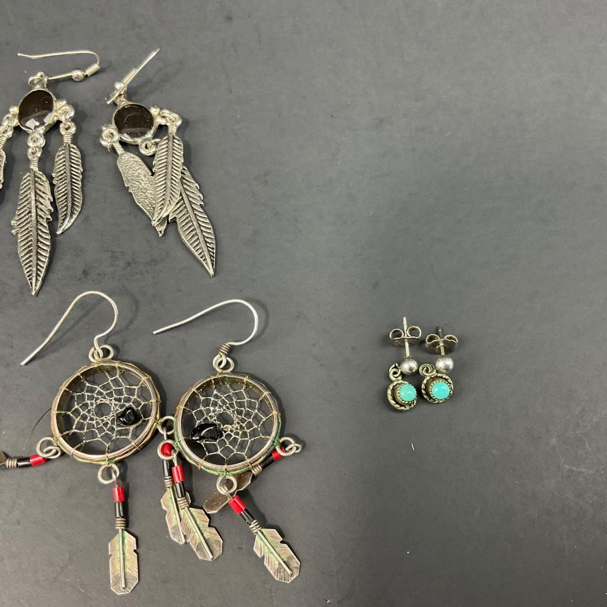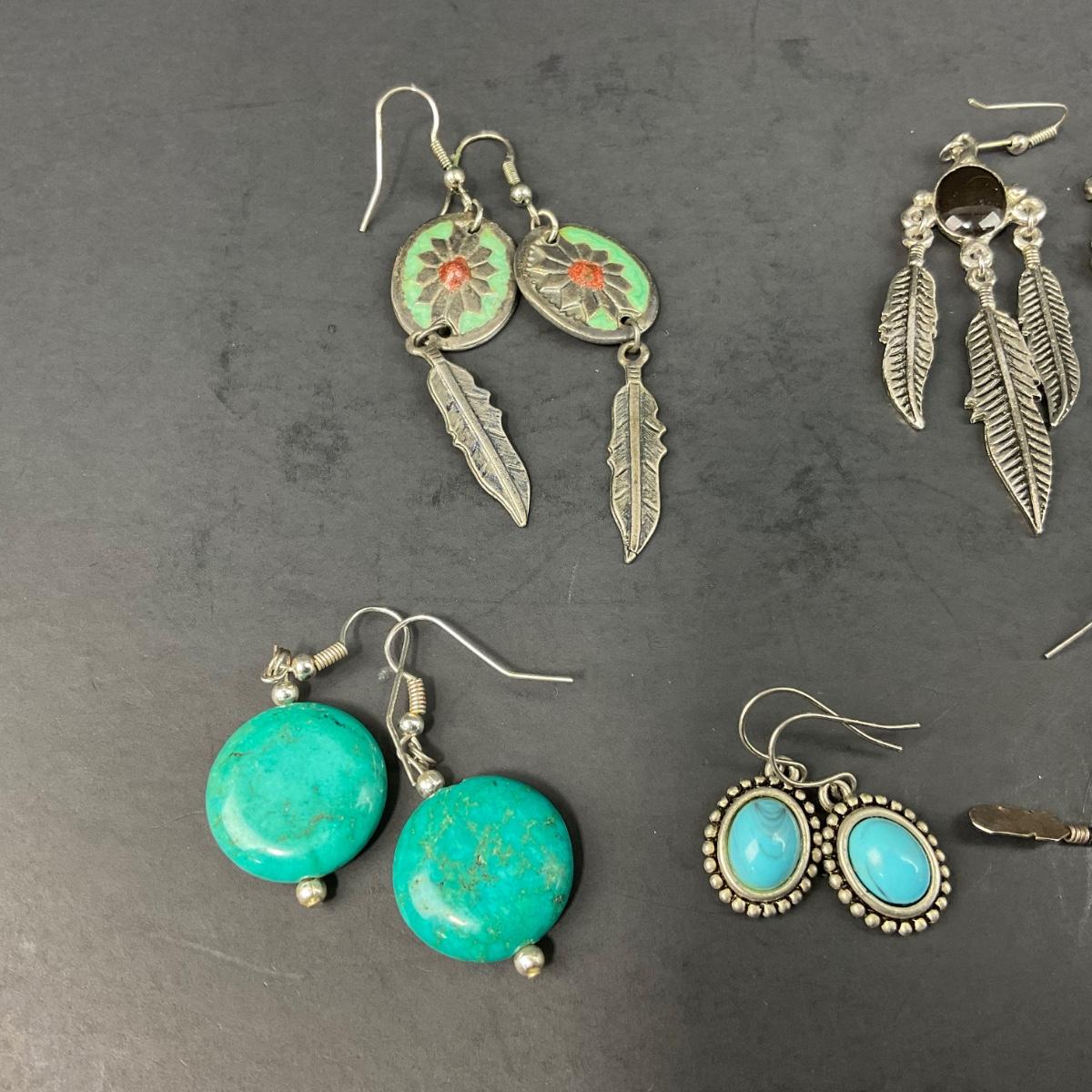 6 pairs of miscellaneous assorted earrings, not all earrings have backs, earrings are in worn condition. Please see photos for details and condition. Any condition statement is given as a courtesy to a client, is an opinion, and should not be treated as a statement of fact. Reference to condition written, oral or within a condition report shall not be regarded as a full account of condition and may not include all defects, alterations, or restorations. Absence of a condition report does not imply a lot is flawless or lacking imperfections or damage. Katherine’s Auction & Appraisal Service shall have no responsibility for any error or omission. Returns shall not be accepted on the basis of condition. ::: Shipping is available on this lot. If you require shipping you must let us know at the close of the auction. We will coordinate with you after the item has been won. Shipping fees will include insurance up to or exceeding the value of all items being mailed. If you have any questions regarding this lot please contact the auctioneer either via this website, by direct email or by phone. PICK UP TIMES and other important information can be found in the TERMS and DESCRIPTION of the auction. Please take a look for pertinent information. Thanks!