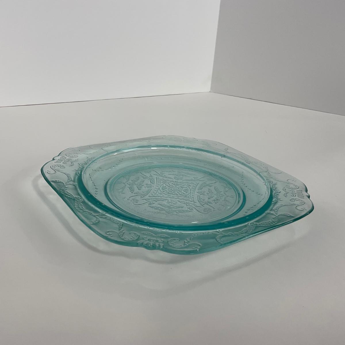 One vintage blue Madrid Federal Glass Co. (1932-1939) plate. Please see photos for details and condition. ::: Shipping is available on this lot. If you require shipping you must let us know at the close of the auction. We will coordinate with you after the item has been won. Shipping fees will include insurance up to or exceeding the value of all items being mailed. If you have any questions regarding this lot please contact the auctioneer either via this website, by direct email or by phone. PICK UP TIMES and other important information can be found in the TERMS and DESCRIPTION of the auction. Please take a look for pertinent information. Thanks!