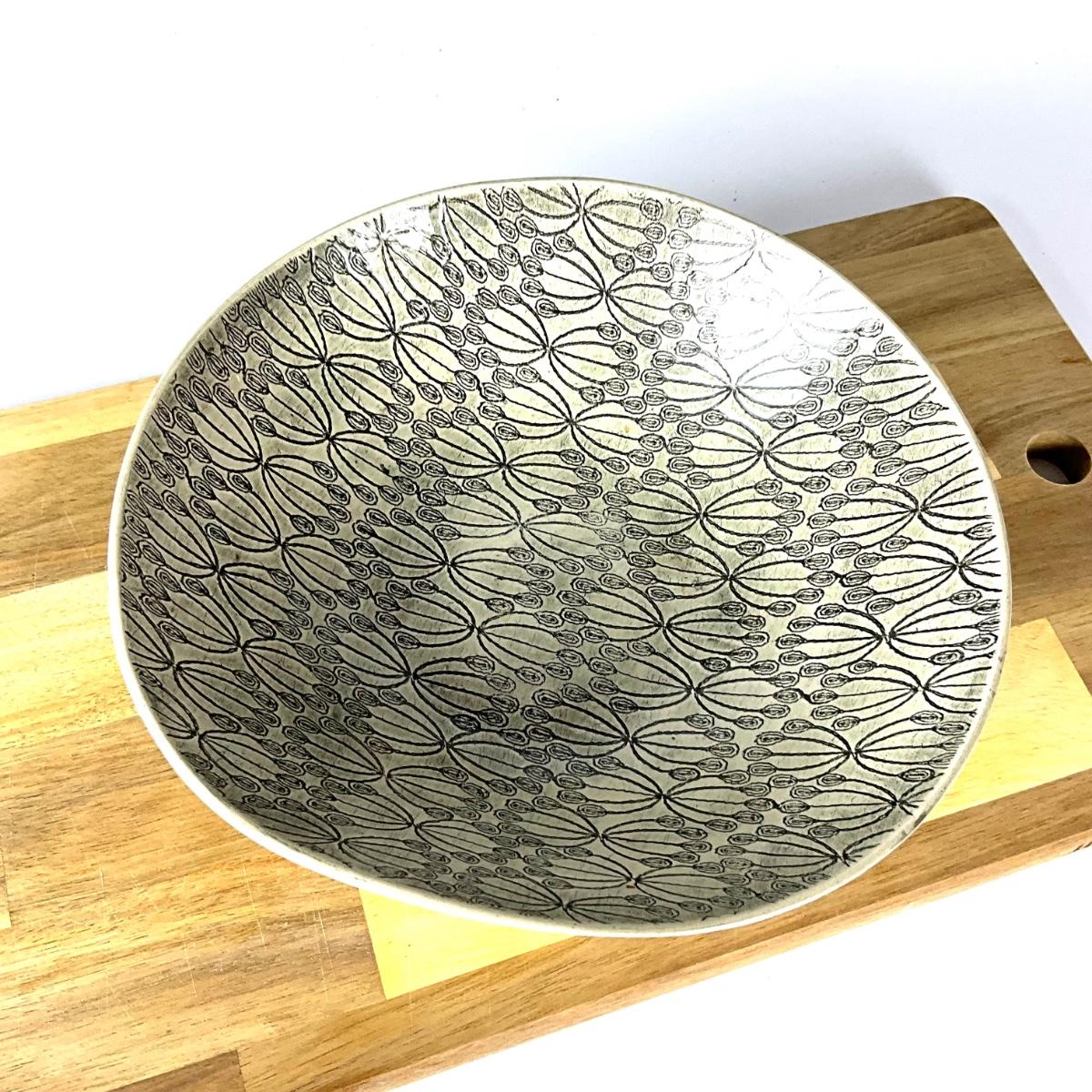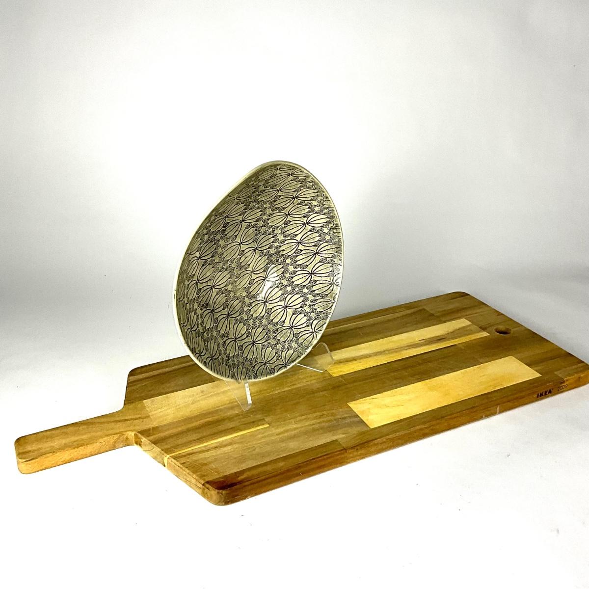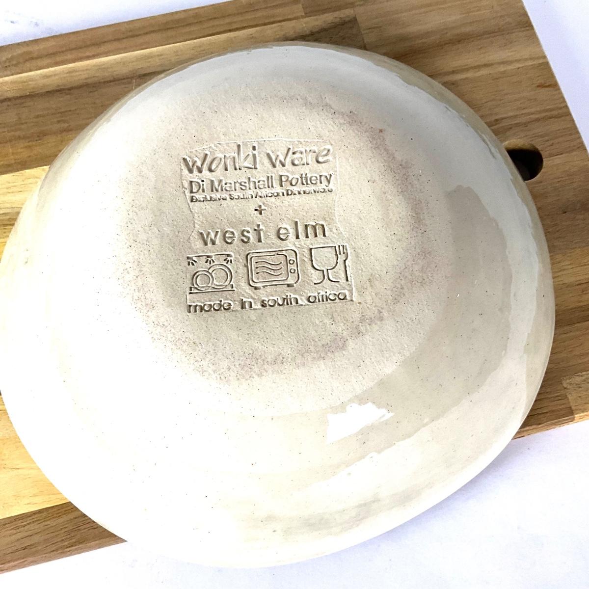 Description: Long IKEA cutting board (28" x 11" W) accompanied by a West Elm "Wonkyware" bowl with a diameter of 10.75". A practical and elegant addition to your kitchen collection.