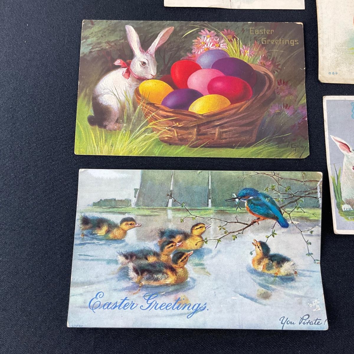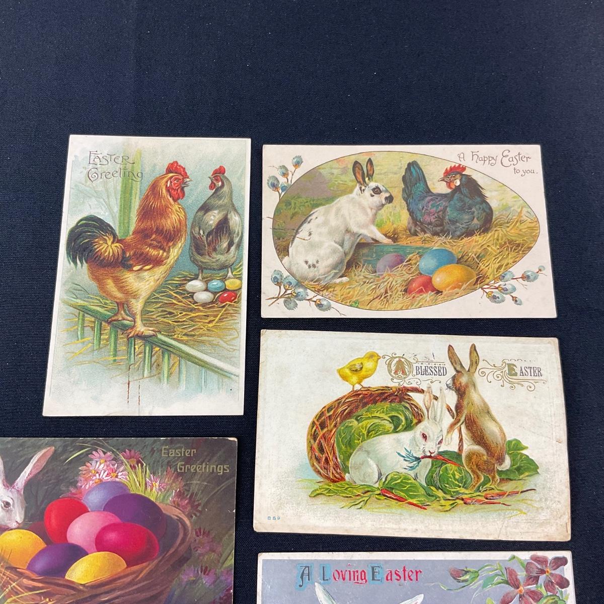 Six assorted Easter postcards. Please see photos for details and condition. Any condition statement is given as a courtesy to a client, is an opinion, and should not be treated as a statement of fact. Reference to condition written, oral or within a condition report shall not be regarded as a full account of condition and may not include all defects, alterations, or restorations. Absence of a condition report does not imply a lot is flawless or lacking imperfections or damage. Katherine’s Auction & Appraisal Service shall have no responsibility for any error or omission. Returns shall not be accepted on the basis of condition. ::: Shipping is available on this lot. If you require shipping you must let us know at the close of the auction. We will coordinate with you after the item has been won. Shipping fees will include insurance up to or exceeding the value of all items being mailed. If you have any questions regarding this lot please contact the auctioneer either via this website, by direct email or by phone. PICK UP TIMES and other important information can be found in the TERMS and DESCRIPTION of the auction. Please take a look for pertinent information. Thanks!