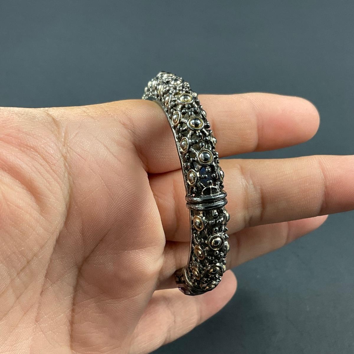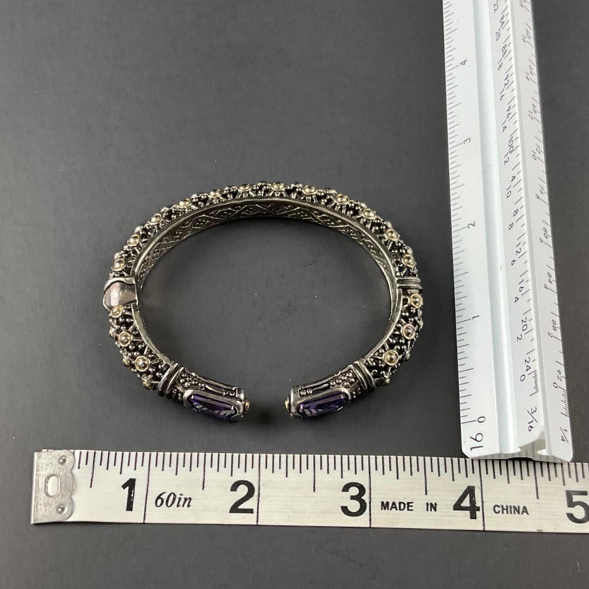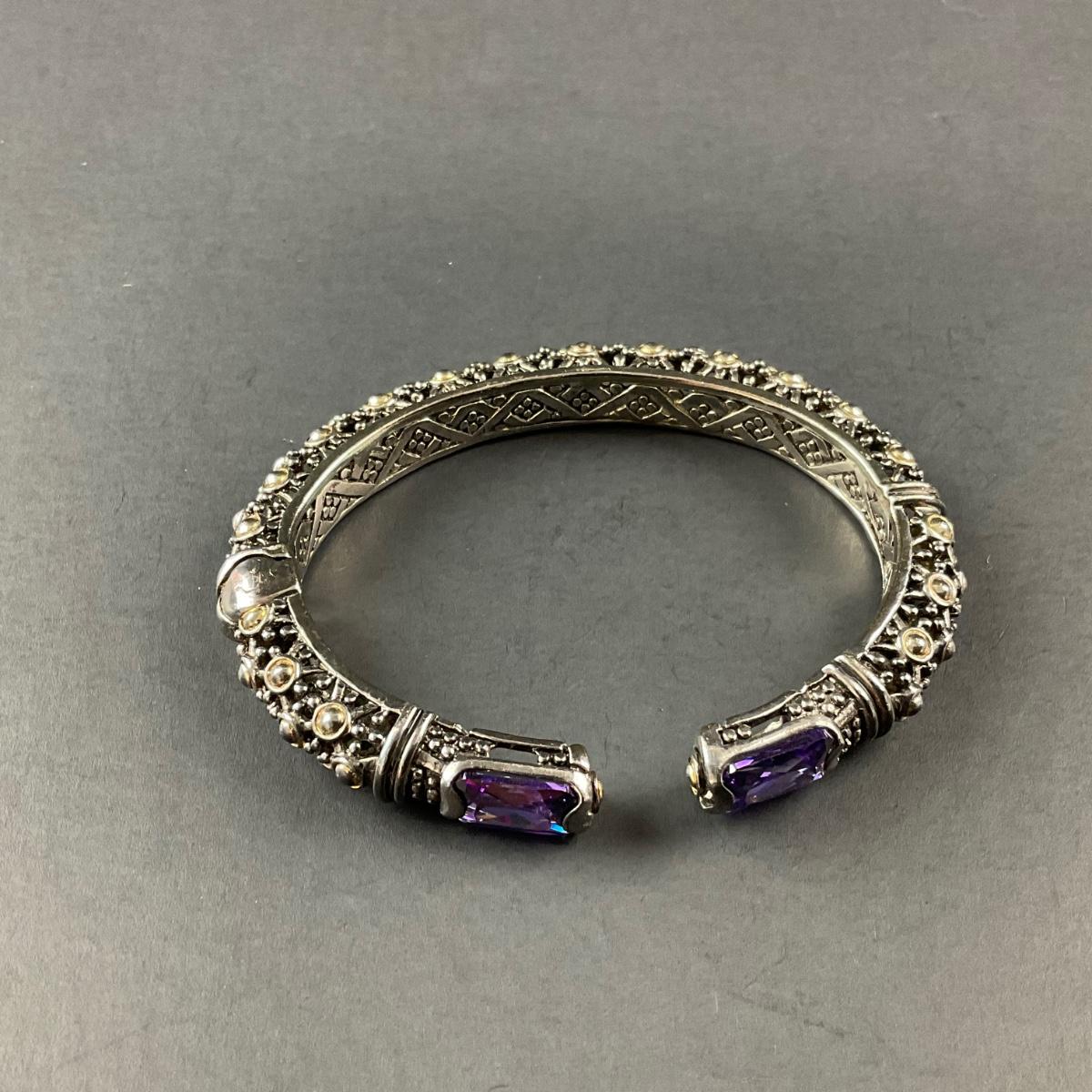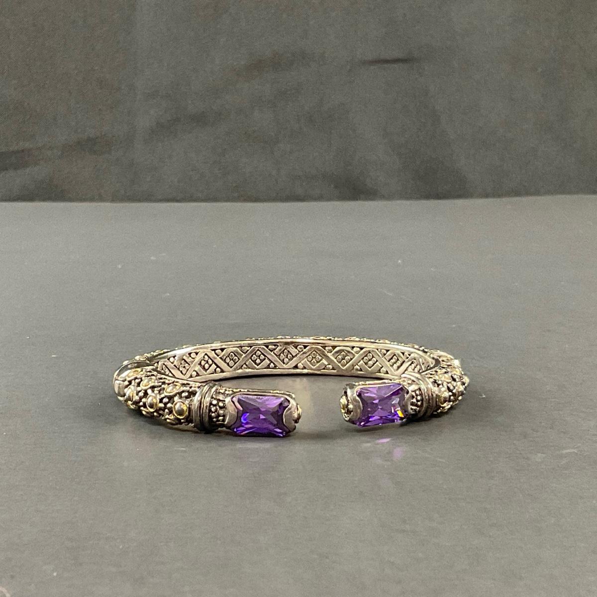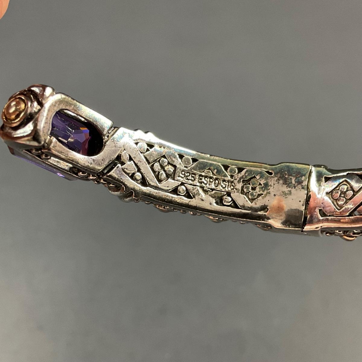 One marked ESPO Sig 925 bracelet with stones marked. Total weight of bracelet with the stones is 44 grams. This piece does have some scuffs, scratches, marks, or slight damage, but otherwise appears to be in great shape. Please see photos for details and condition. Any condition statement is given as a courtesy to a client, is an opinion, and should not be treated as a statement of fact. Reference to condition written, oral or within a condition report shall not be regarded as a full account of condition and may not include all defects, alterations, or restorations. Absence of a condition report does not imply a lot is flawless or lacking imperfections or damage. Katherine’s Auction & Appraisal Service shall have no responsibility for any error or omission. Returns shall not be accepted on the basis of condition. ::: Shipping is available on this lot. If you require shipping you must let us know at the close of the auction. We will coordinate with you after the item has been won. Shipping fees will include insurance up to or exceeding the value of all items being mailed. If you have any questions regarding this lot please contact the auctioneer either via this website, by direct email or by phone. PICK UP TIMES and other important information can be found in the TERMS and DESCRIPTION of the auction. Please take a look for pertinent information. Thanks!