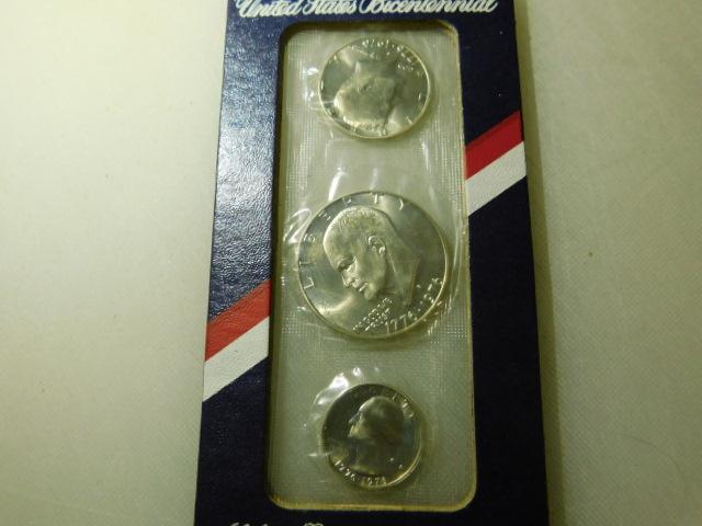 1776-1976 Bicentennial Silver UNC 3 Coin Set $1, Half Dollar, Quarter