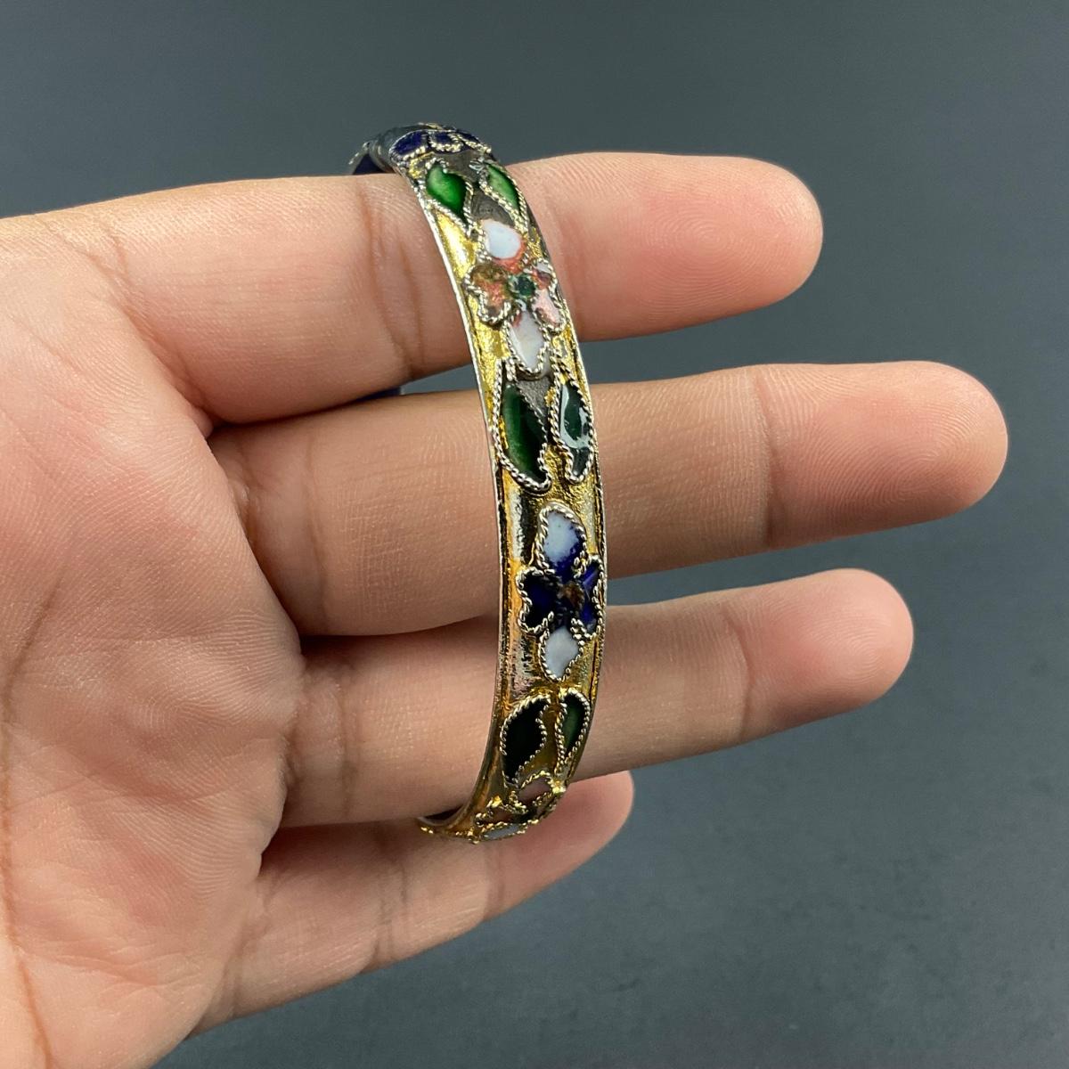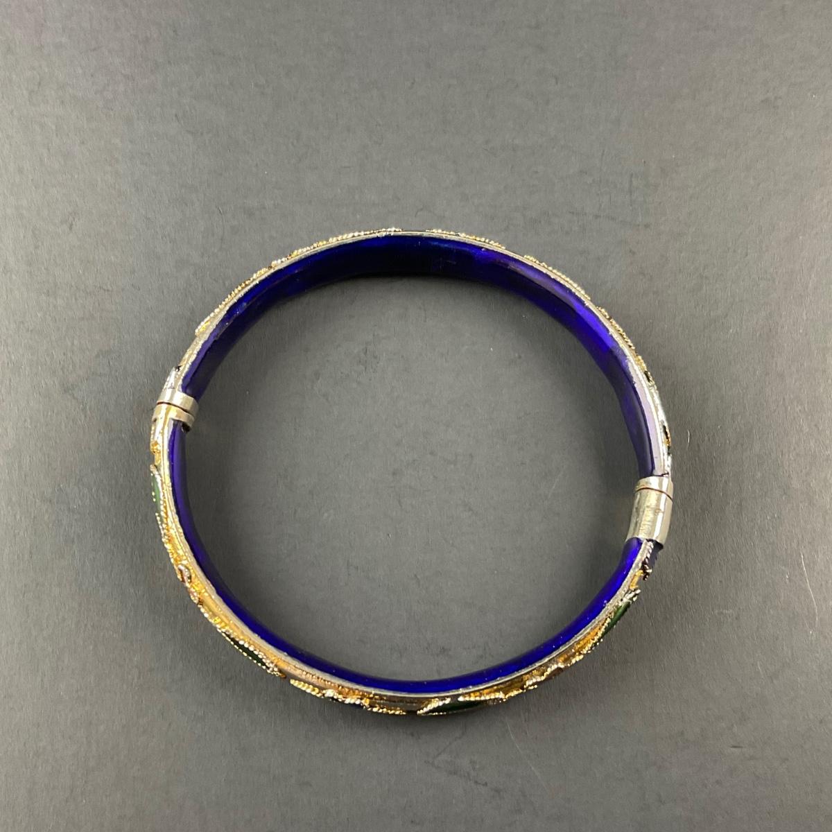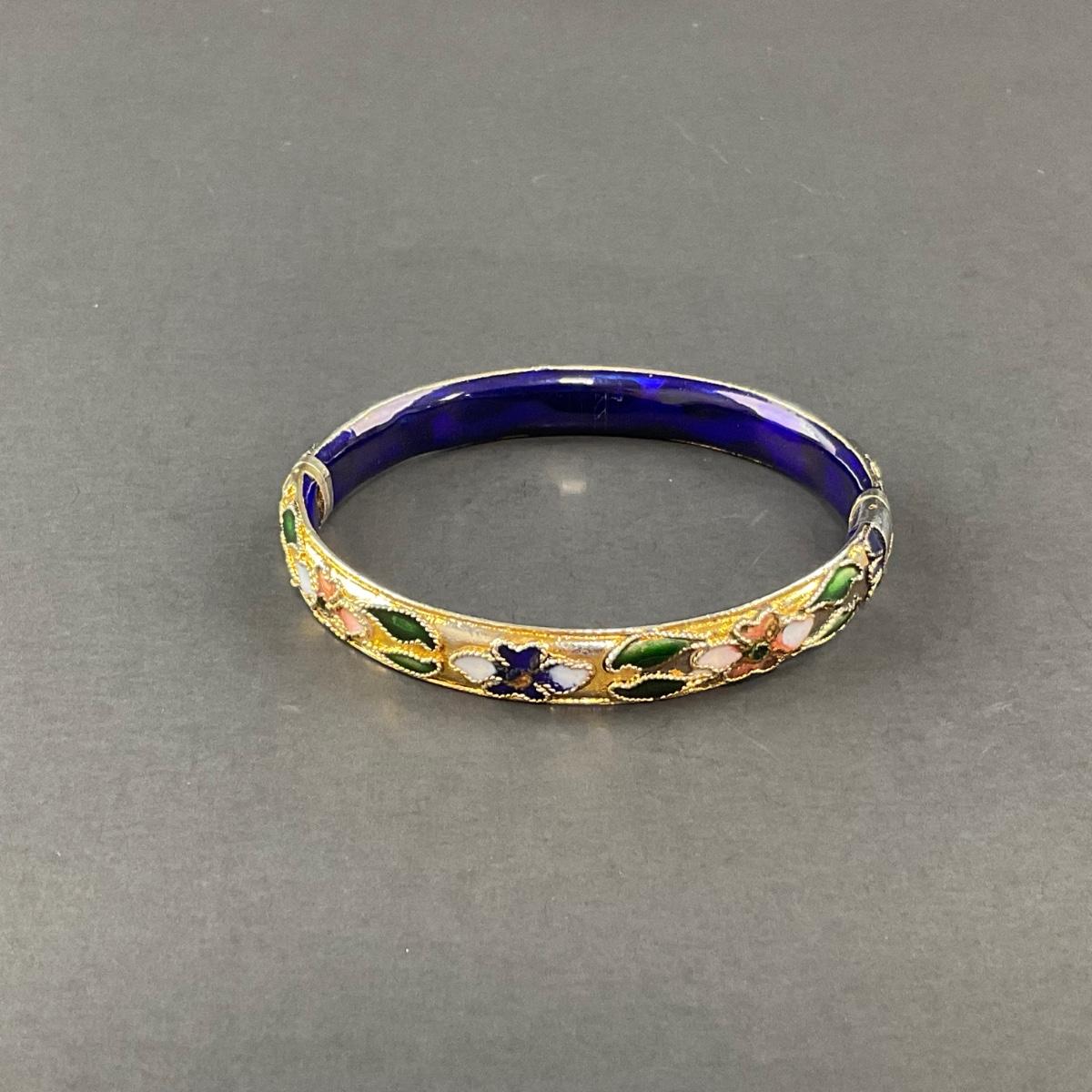 -178- CLOISONNÉ | Blue & Gold Floral Motif Hinged Bangle