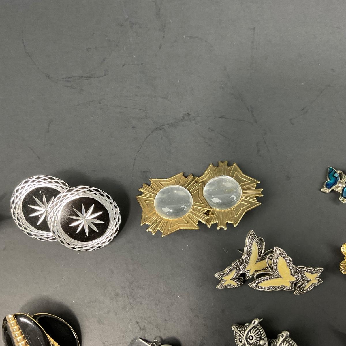 21 pairs of miscellaneous assorted earrings, not all earrings have backs, earrings are in worn condition. Please see photos for details and condition. Any condition statement is given as a courtesy to a client, is an opinion, and should not be treated as a statement of fact. Reference to condition written, oral or within a condition report shall not be regarded as a full account of condition and may not include all defects, alterations, or restorations. Absence of a condition report does not imply a lot is flawless or lacking imperfections or damage. Katherine’s Auction & Appraisal Service shall have no responsibility for any error or omission. Returns shall not be accepted on the basis of condition. ::: Shipping is available on this lot. If you require shipping you must let us know at the close of the auction. We will coordinate with you after the item has been won. Shipping fees will include insurance up to or exceeding the value of all items being mailed. If you have any questions regarding this lot please contact the auctioneer either via this website, by direct email or by phone. PICK UP TIMES and other important information can be found in the TERMS and DESCRIPTION of the auction. Please take a look for pertinent information. Thanks!