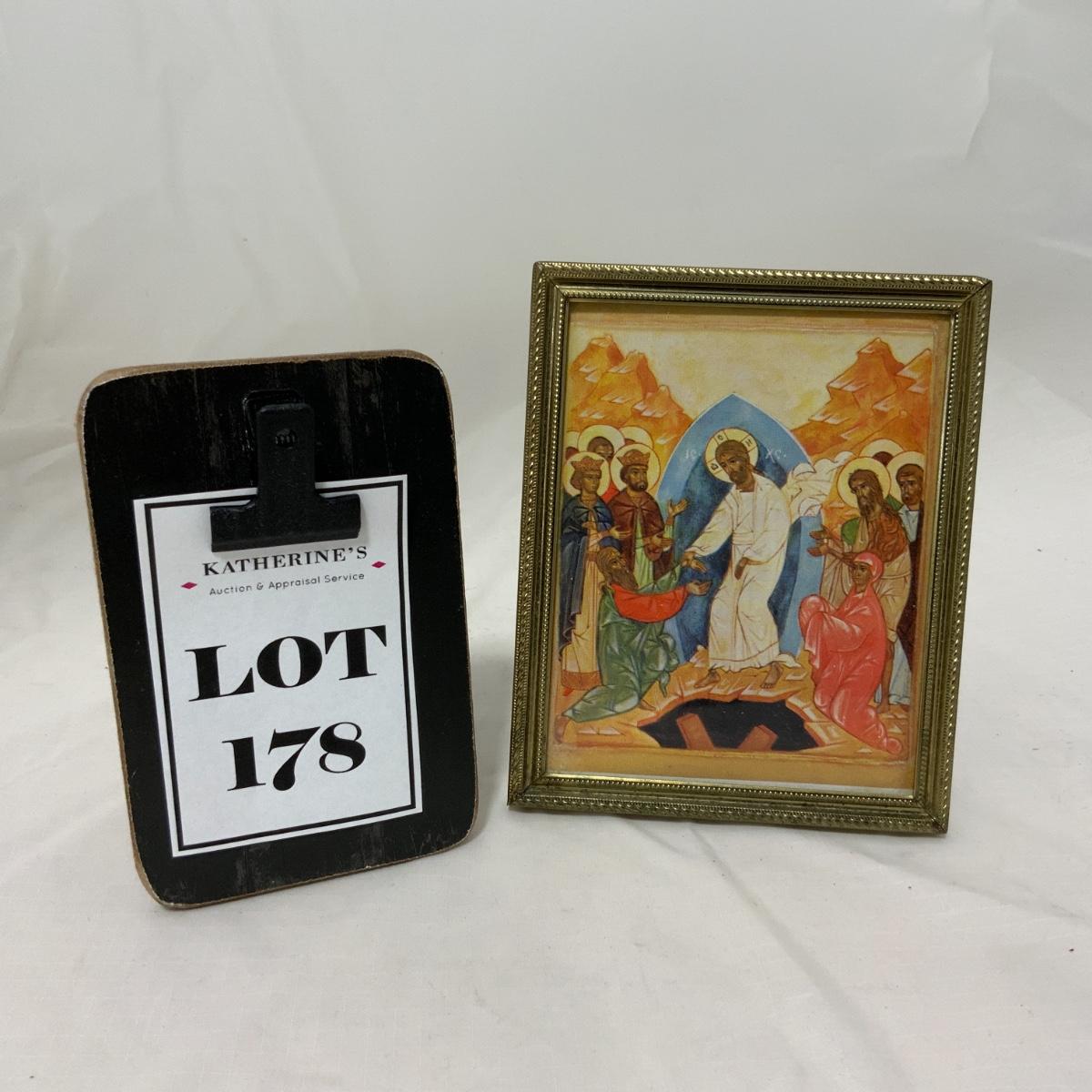 From the Estate of Peter Radovanovich: Eastern Orthodox Style of the Resurrection of Christ. Please see photos for details and condition. ::: Shipping is available on this lot. If you require shipping you must let us know at the close of the auction. We will coordinate with you after the item has been won. Shipping fees will include insurance up to or exceeding the value of all items being mailed. If you have any questions regarding this lot please contact the auctioneer either via this website, by direct email or by phone. PICK UP TIMES and other important information can be found in the TERMS and DESCRIPTION of the auction. Please take a look for pertinent information. Thanks!