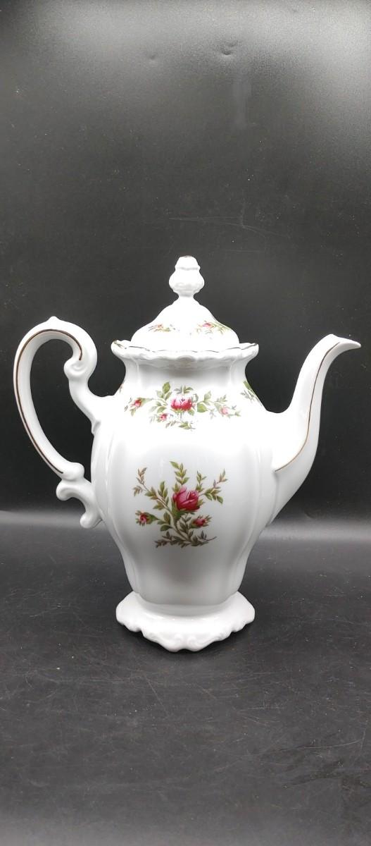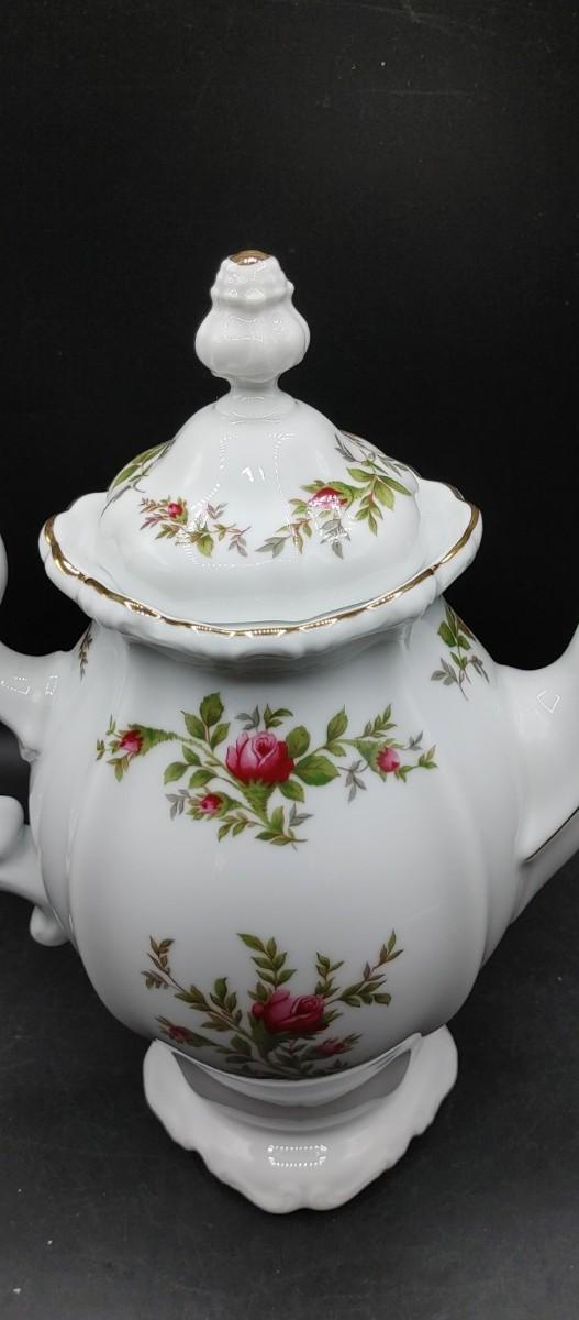 #178 Johann Haviland Porcelain Rose Teapot is 11" tall full size. No flaws! Gorgeous!