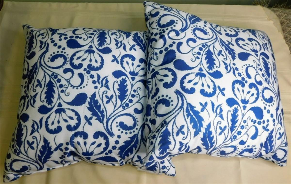 178 Lot of 2 Blue and White Floral Decorative Pillows 18 x 18
