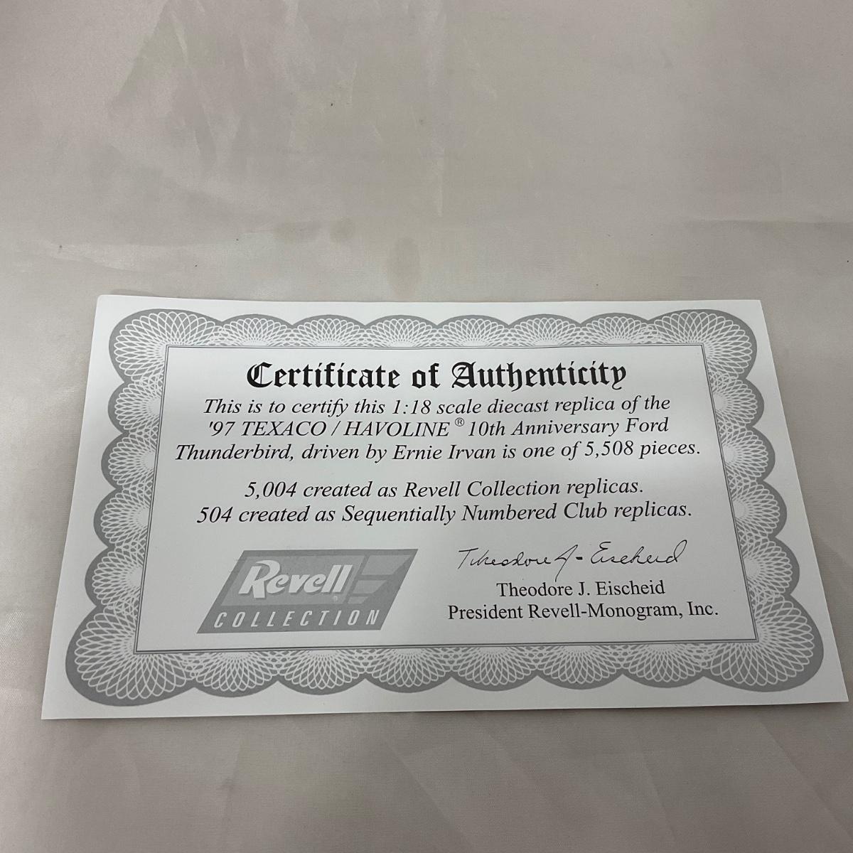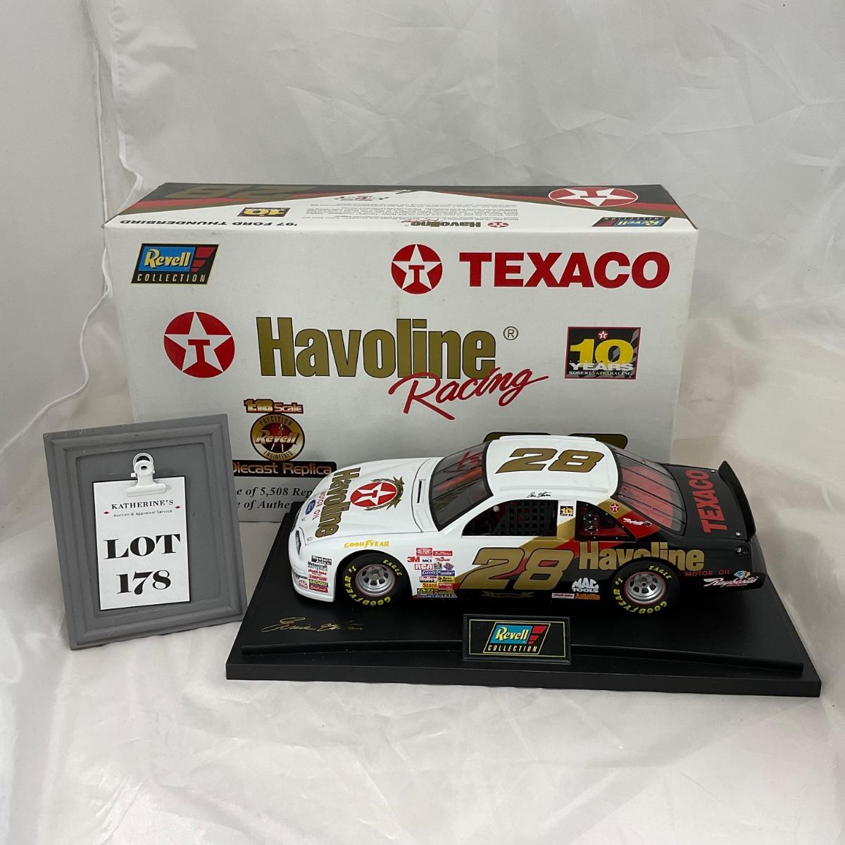 One NASCAR die cast 1:18 scale 1997 Havoline Ford Thunderbird figure. Comes with a Certificate of Authenticity. Please see photos for details and condition. ::: Shipping is available on this lot. If you require shipping you must let us know at the close of the auction. We will coordinate with you after the item has been won. Shipping fees will include insurance up to or exceeding the value of all items being mailed. If you have any questions regarding this lot please contact the auctioneer either via this website, by direct email or by phone. PICK UP TIMES and other important information can be found in the TERMS and DESCRIPTION of the auction. Please take a look for pertinent information. Thanks!
