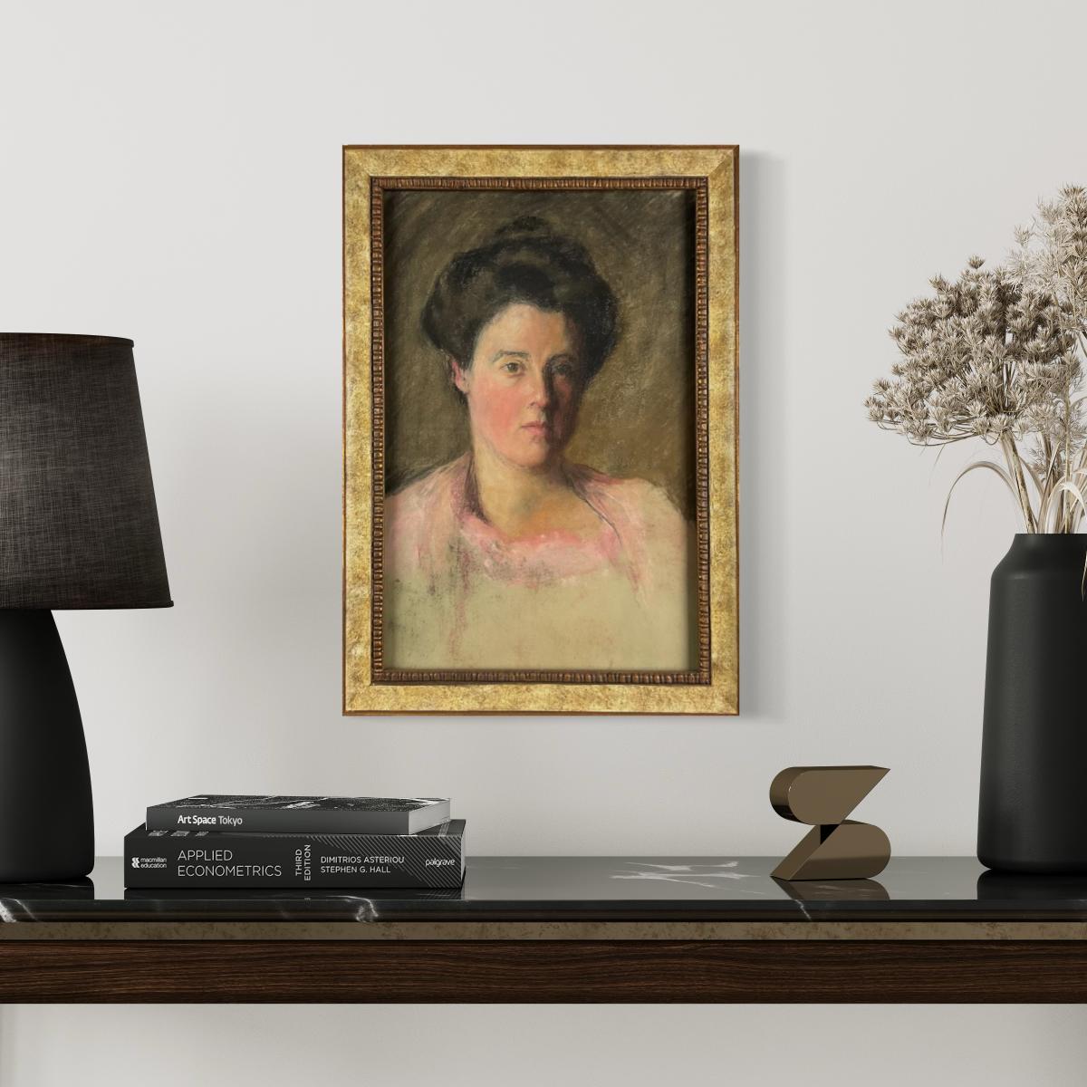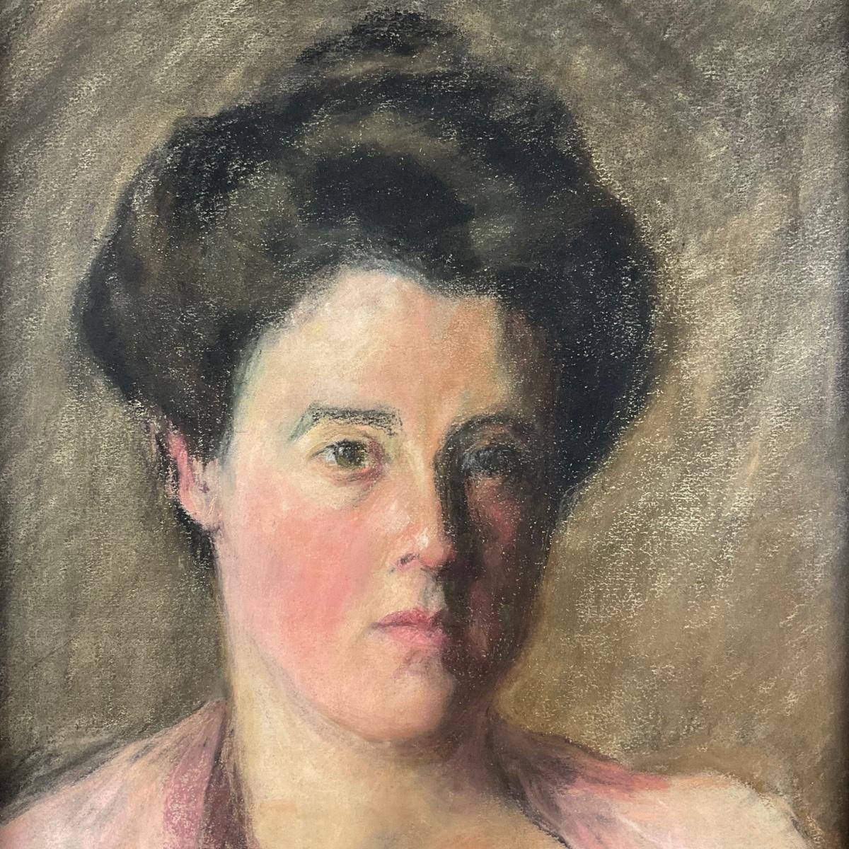 080 American School, Pastel Portrait Of Woman In Pink Blouse Circa 20th Century