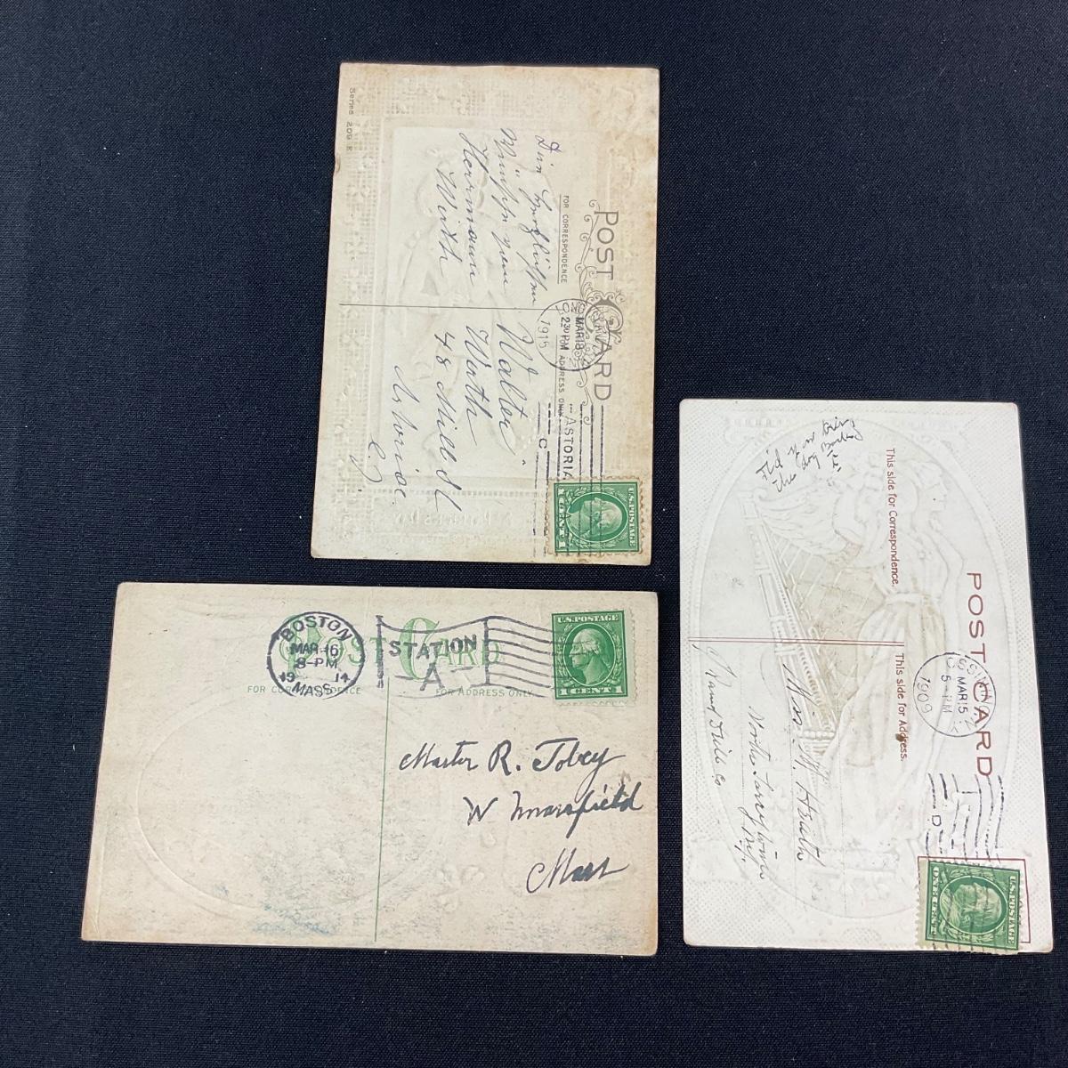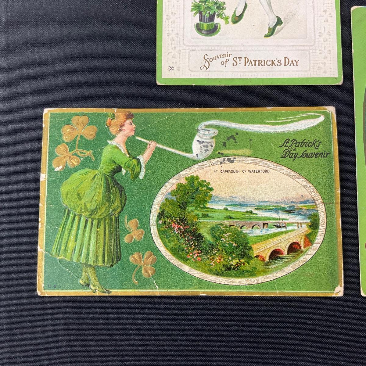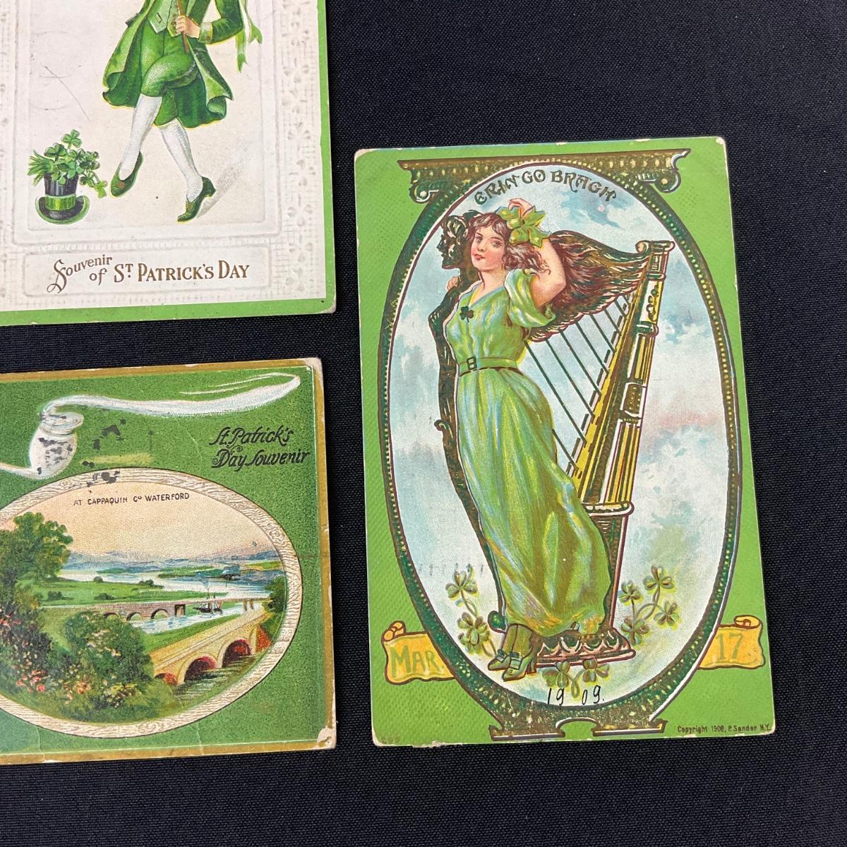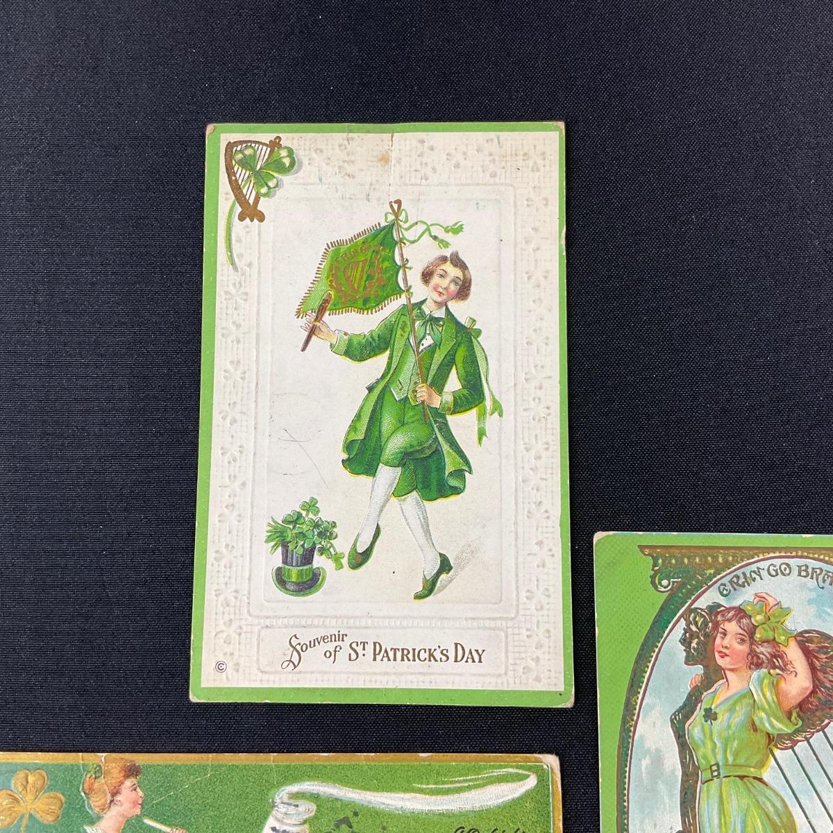 Three assorted saint Patrick’s day postcards. Please see photos for details and condition. Any condition statement is given as a courtesy to a client, is an opinion, and should not be treated as a statement of fact. Reference to condition written, oral or within a condition report shall not be regarded as a full account of condition and may not include all defects, alterations, or restorations. Absence of a condition report does not imply a lot is flawless or lacking imperfections or damage. Katherine’s Auction & Appraisal Service shall have no responsibility for any error or omission. Returns shall not be accepted on the basis of condition. ::: Shipping is available on this lot. If you require shipping you must let us know at the close of the auction. We will coordinate with you after the item has been won. Shipping fees will include insurance up to or exceeding the value of all items being mailed. If you have any questions regarding this lot please contact the auctioneer either via this website, by direct email or by phone. PICK UP TIMES and other important information can be found in the TERMS and DESCRIPTION of the auction. Please take a look for pertinent information. Thanks!