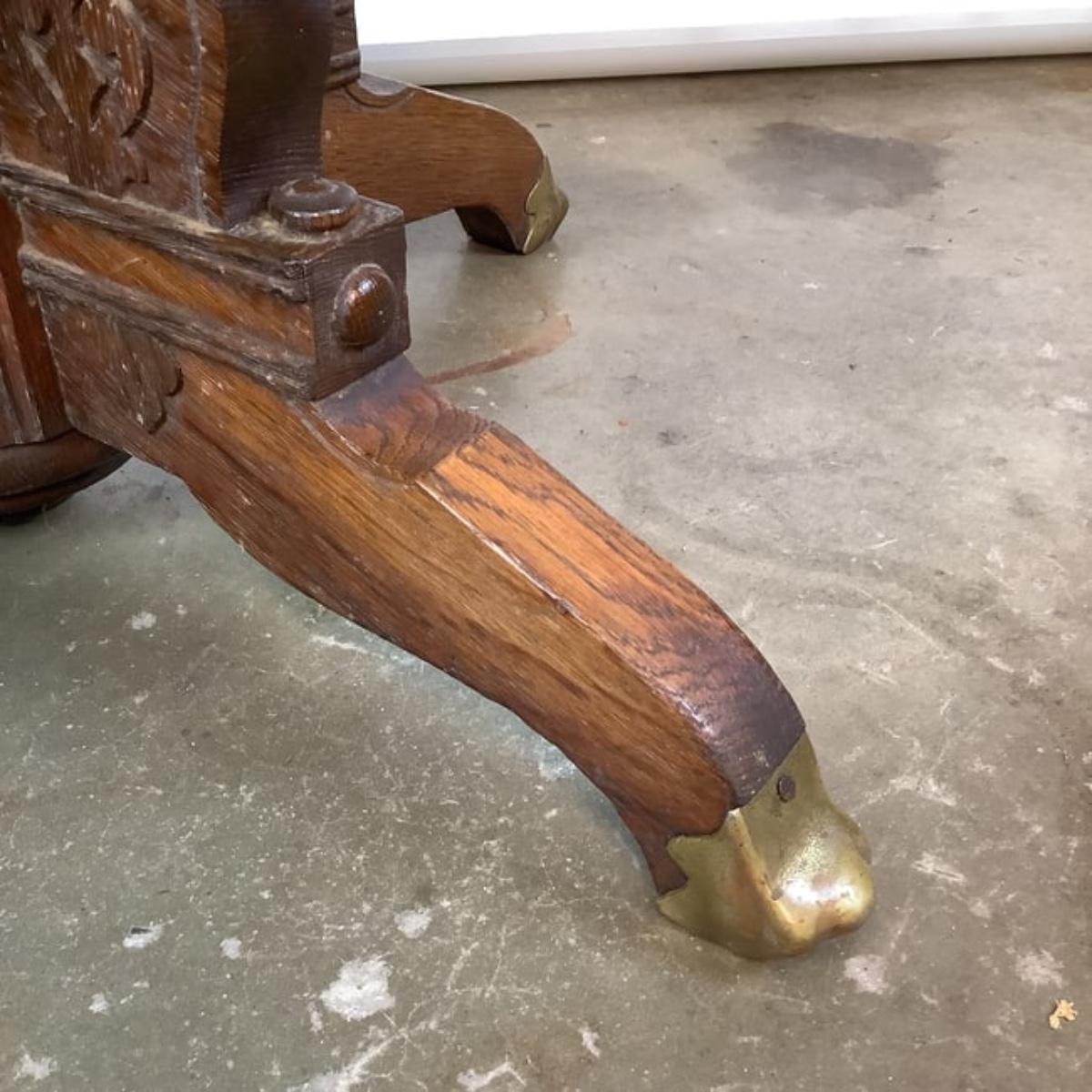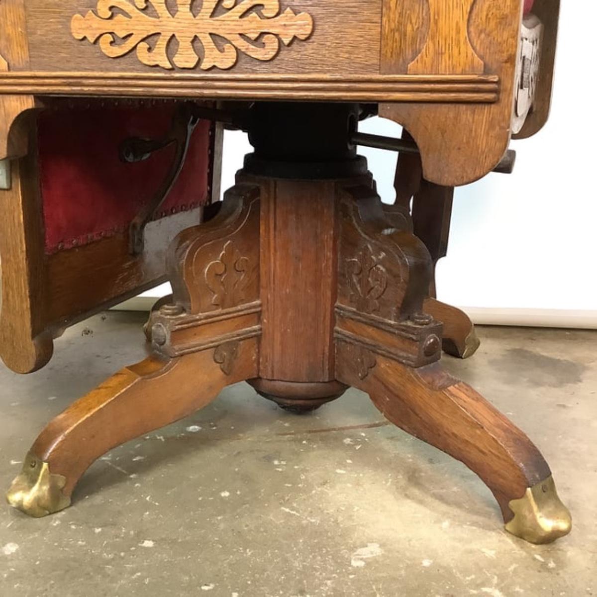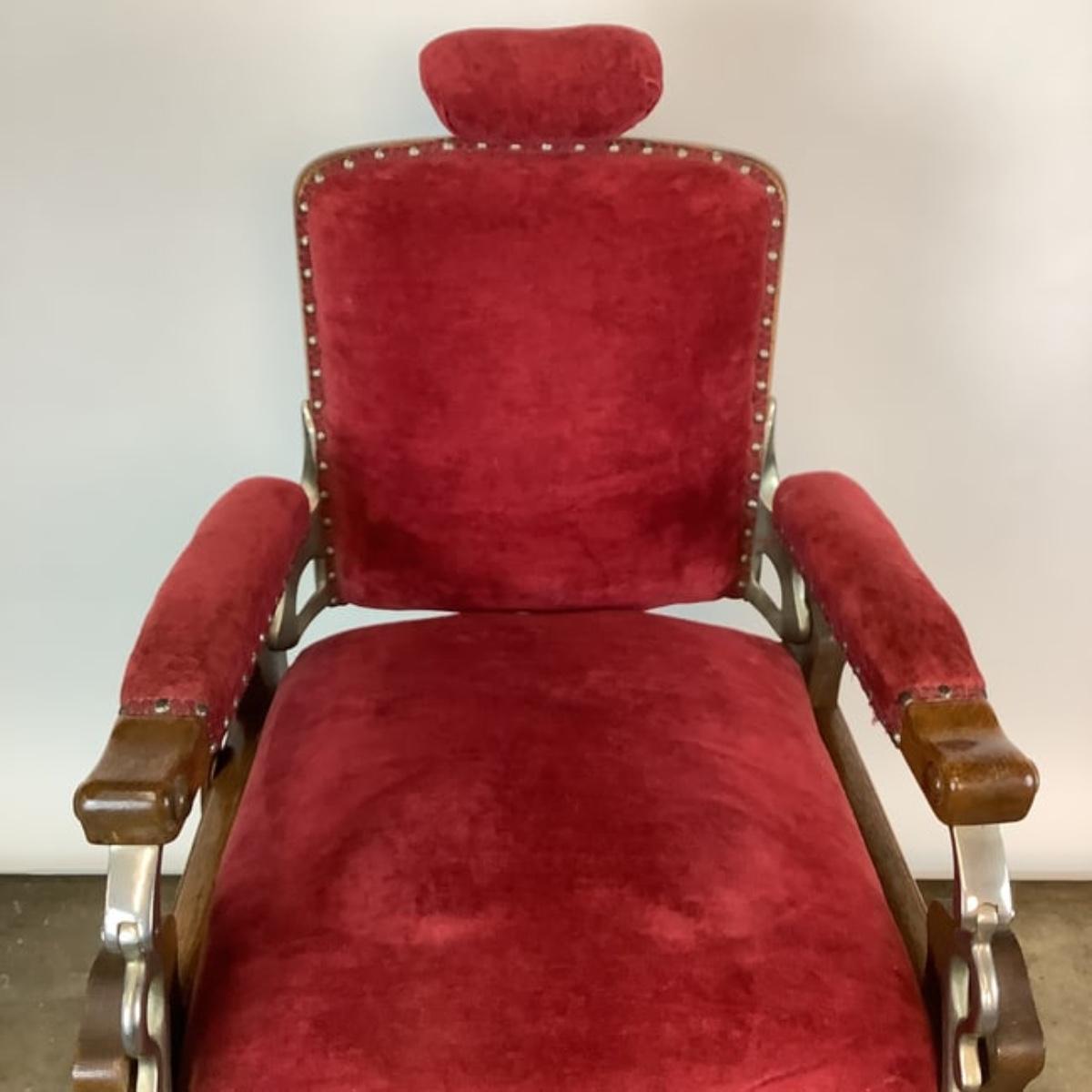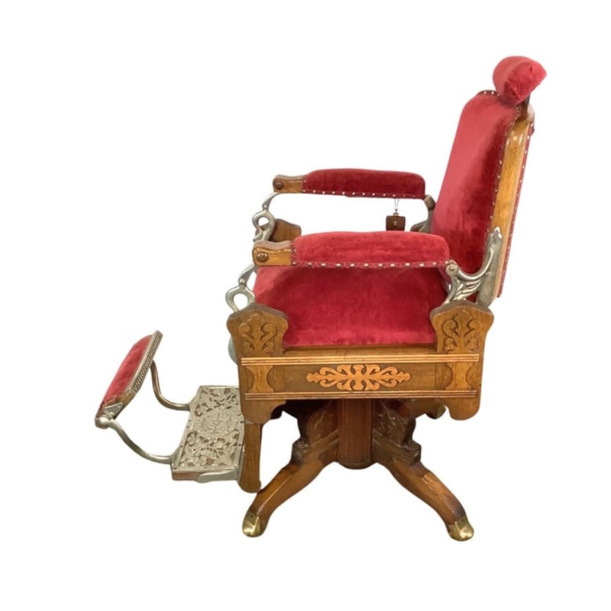 "Congress Hydraulic Patented Koken Barbors Supply Co. St. Louis, USA"Adjustable headrest. Has golden finish, nickel plated trim and leather blade sharpener with quarter sewn oak Measures: 46" high x 22.5" wide (adjustable height)