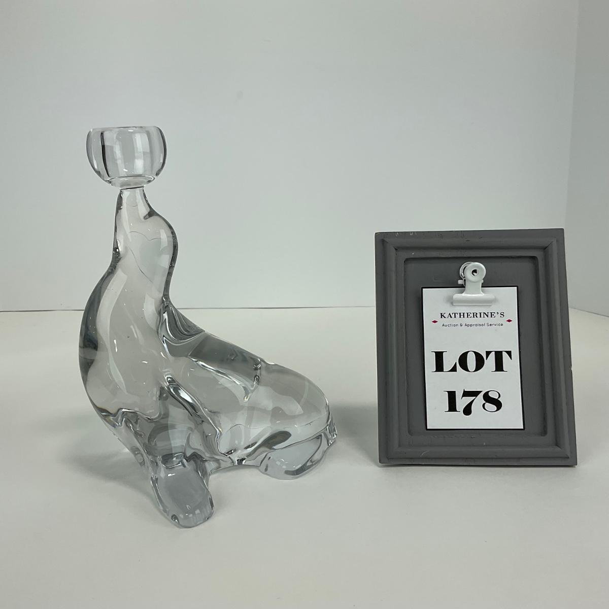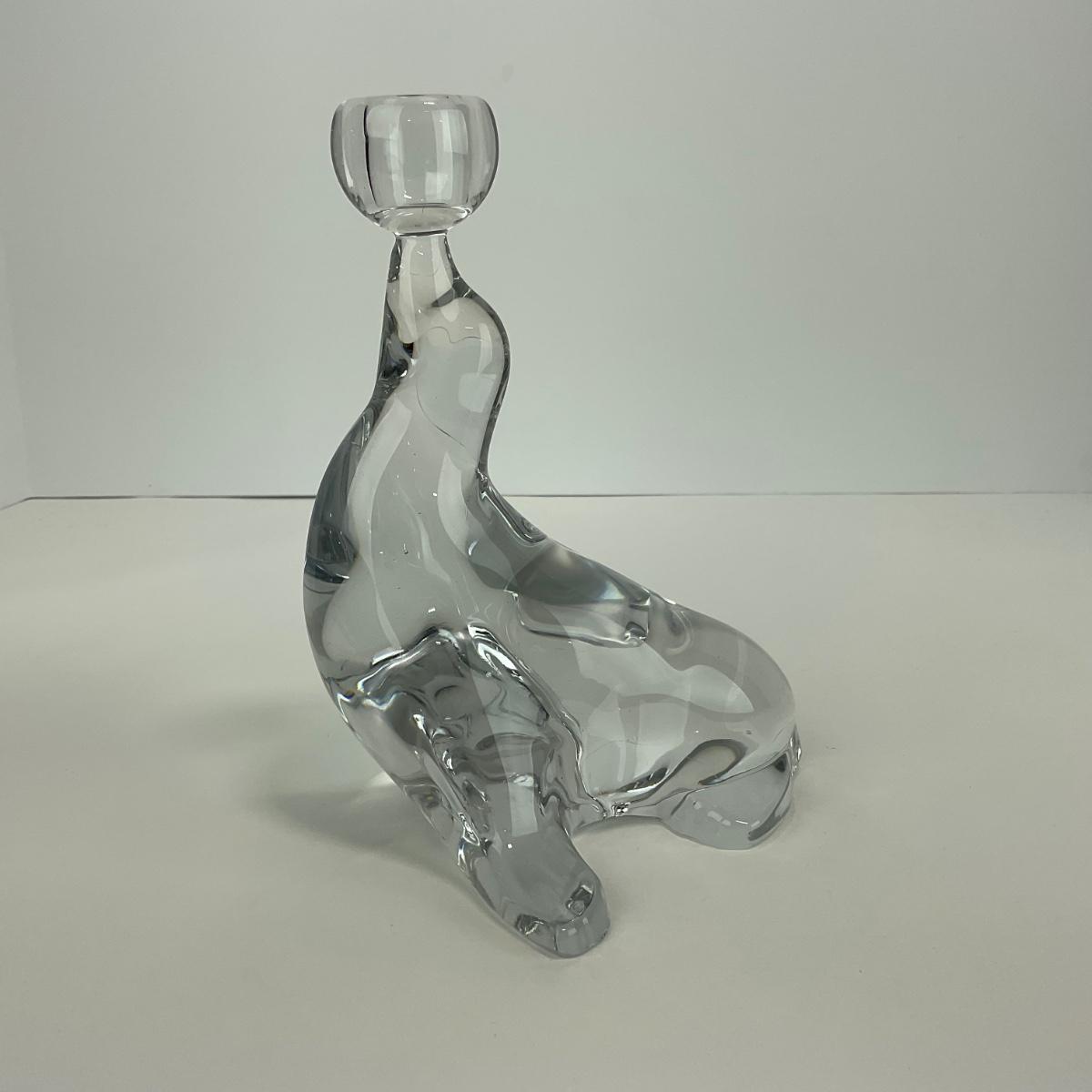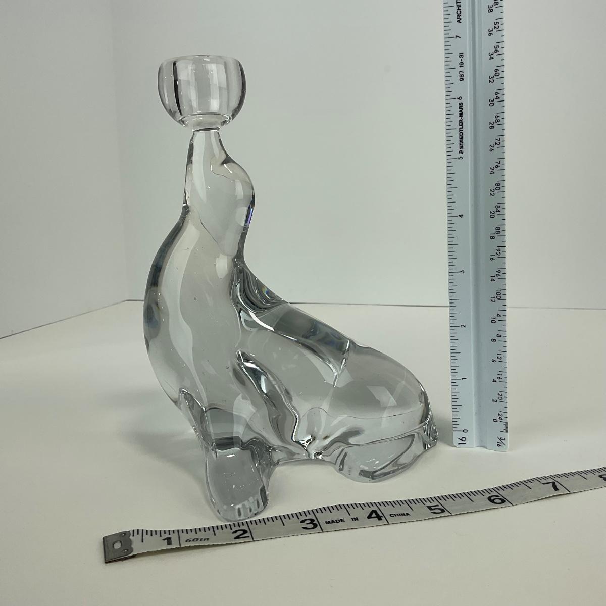 One clear glass seal balancing ball candle holder chips on the bottom rim of the base. This piece does have some scuffs, scratches, marks, or slight damage, but otherwise appears to be in great shape. Please see photos for details and condition. Any condition statement is given as a courtesy to a client, is an opinion, and should not be treated as a statement of fact. Reference to condition written, oral or within a condition report shall not be regarded as a full account of condition and may not include all defects, alterations, or restorations. Absence of a condition report does not imply a lot is flawless or lacking imperfections or damage. Katherine’s Auction & Appraisal Service shall have no responsibility for any error or omission. Returns shall not be accepted on the basis of condition. ::: Shipping is available on this lot. If you require shipping you must let us know at the close of the auction. We will coordinate with you after the item has been won. Shipping fees will include insurance up to or exceeding the value of all items being mailed. If you have any questions regarding this lot please contact the auctioneer either via this website, by direct email or by phone. PICK UP TIMES and other important information can be found in the TERMS and DESCRIPTION of the auction. Please take a look for pertinent information. Thanks!