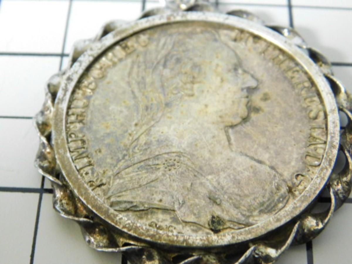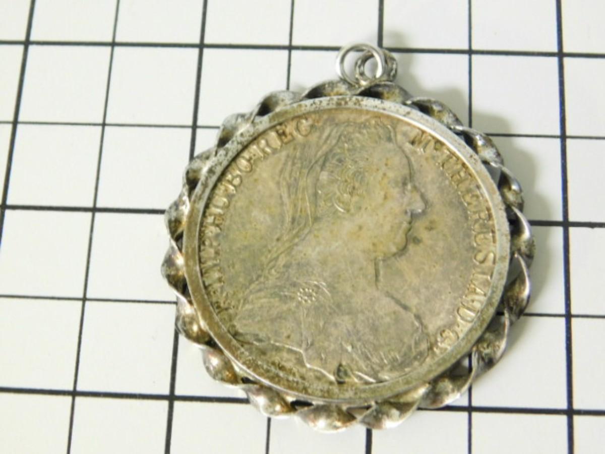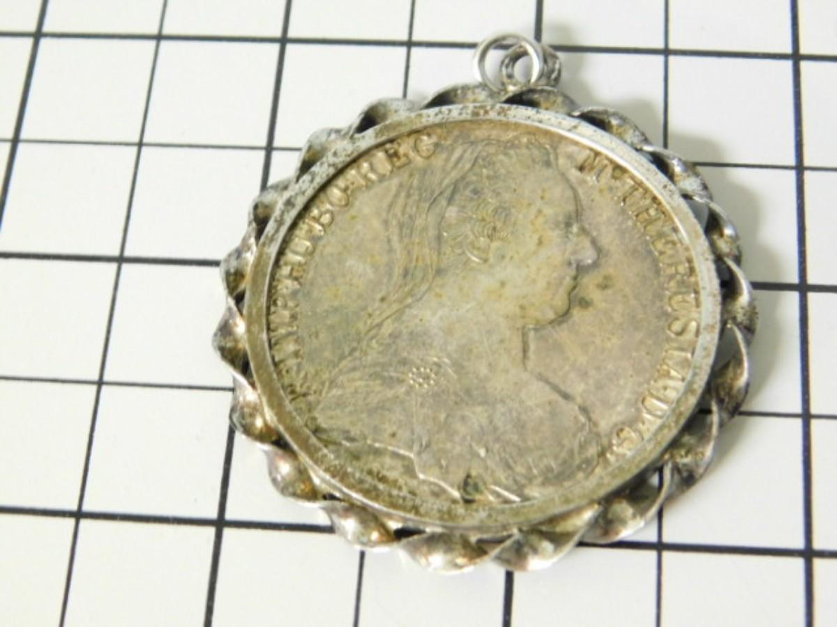 1780 Austria Maria Theresa Thaler Silver Coin Set in Sterling Pendant Frame .833 Silver Ounce Content