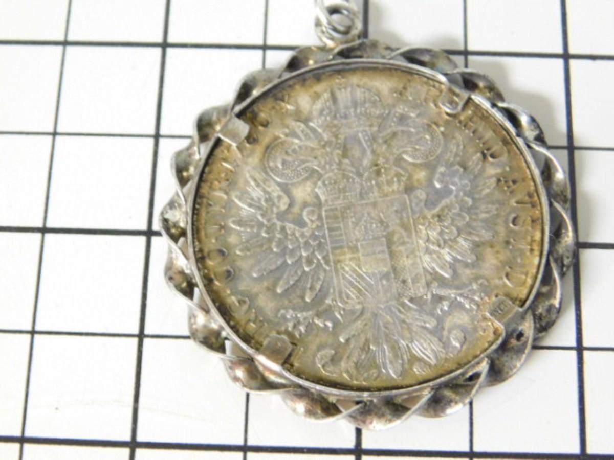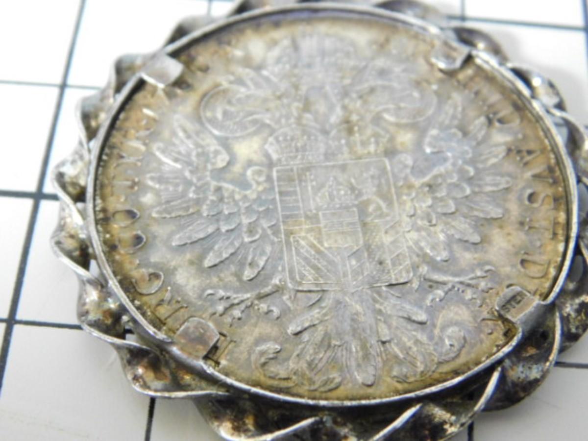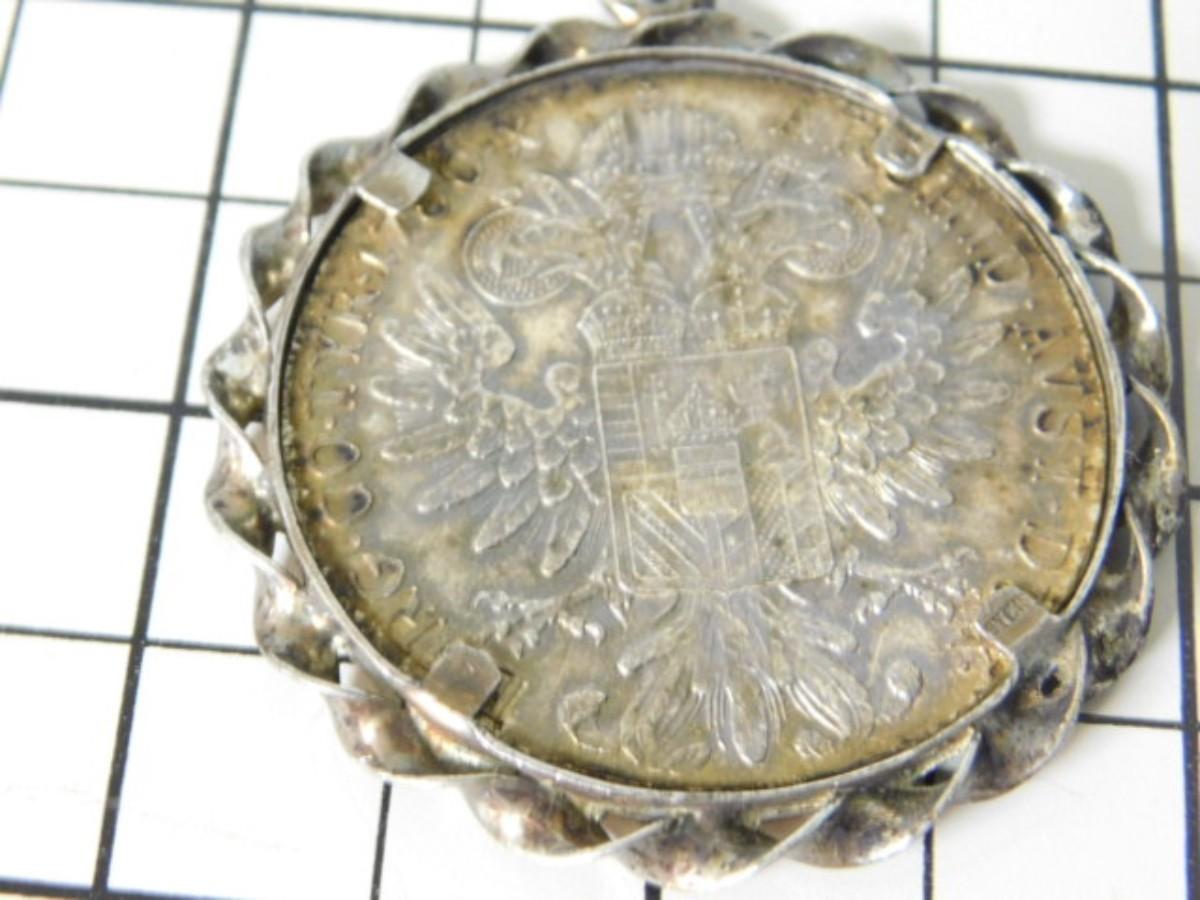 1780 Austria Maria Theresa Thaler Silver Coin Set in Sterling Pendant Frame .833 Silver Ounce Content