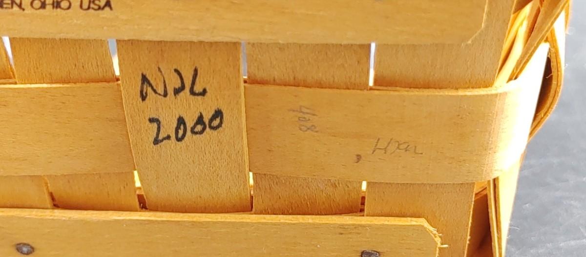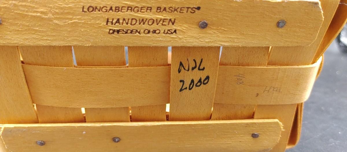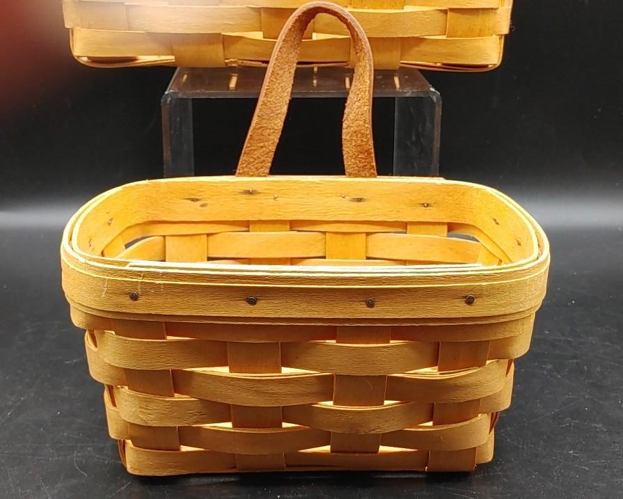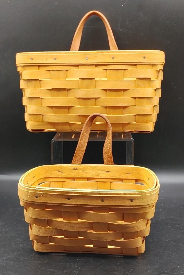 2 Longaberger baskets with leather handles year 2000 both signed by the artist. Ex.condition