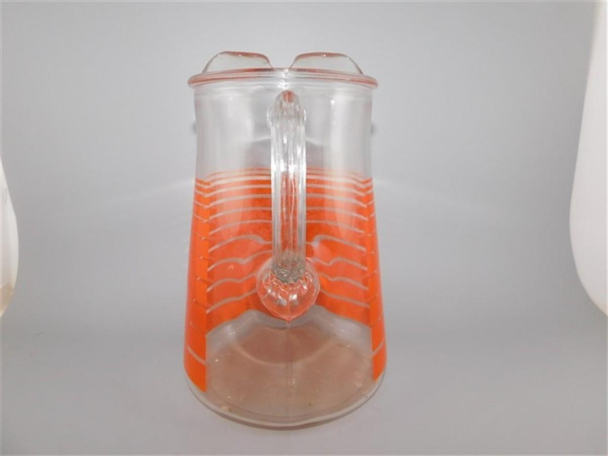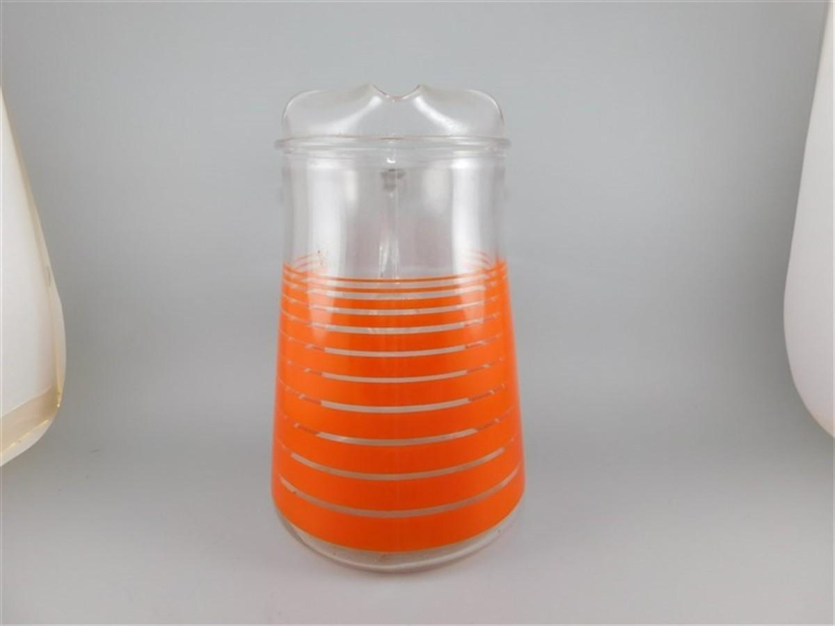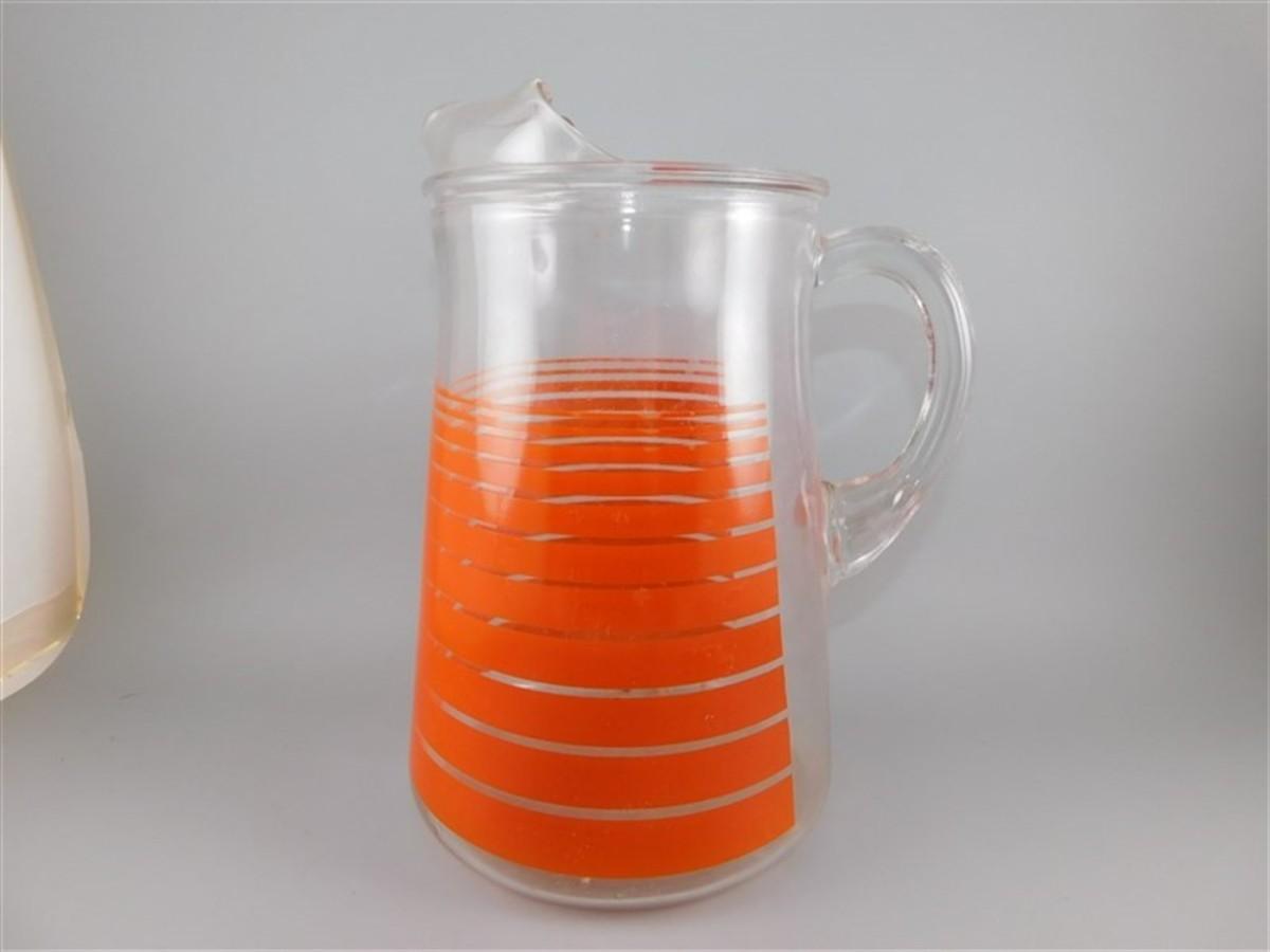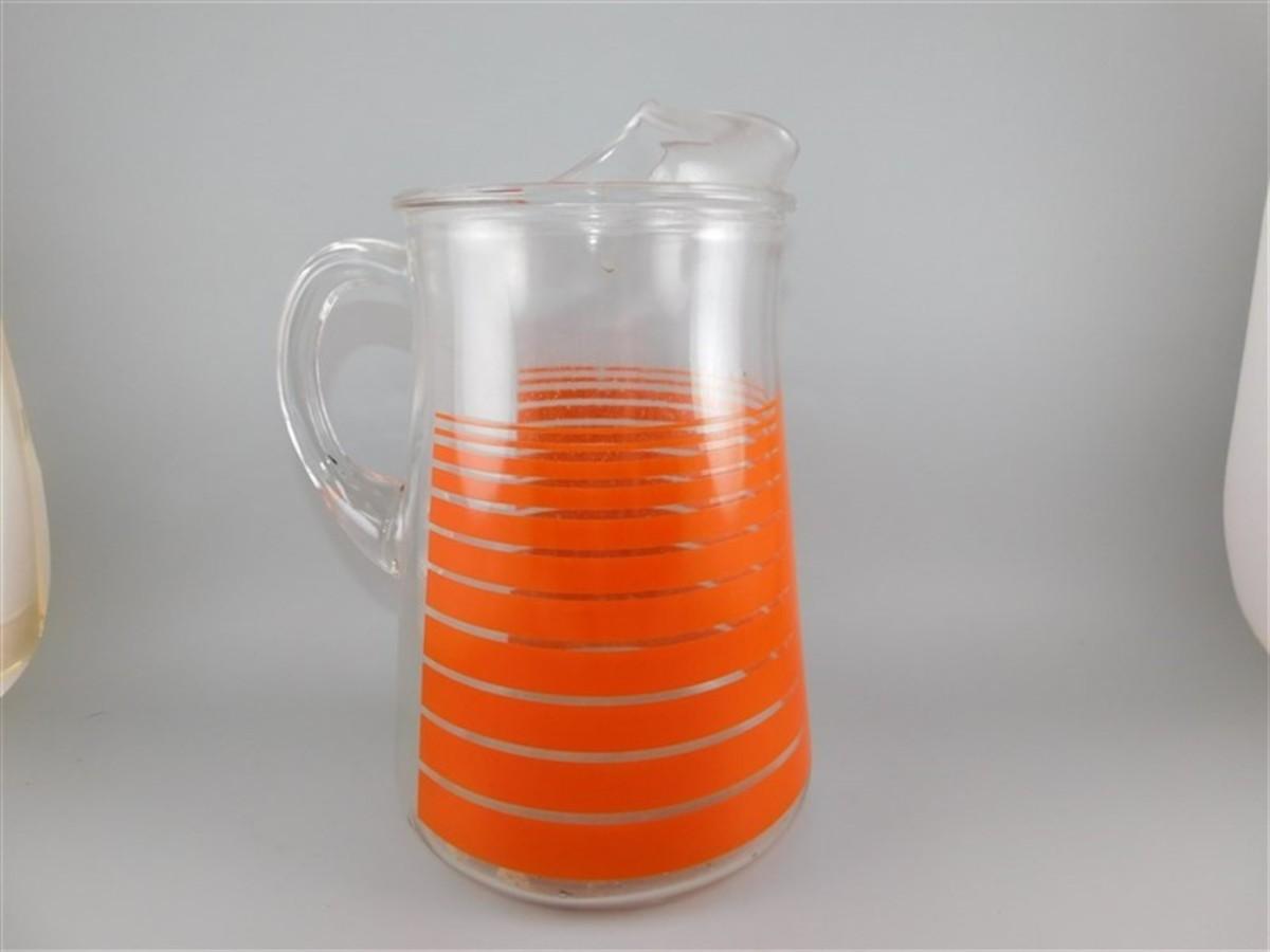 179 9" Large Vintage Indiana Vibrant Tangerine Orange Stripe Pitcher