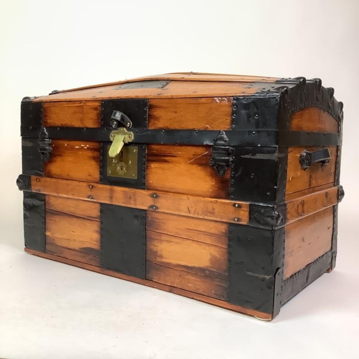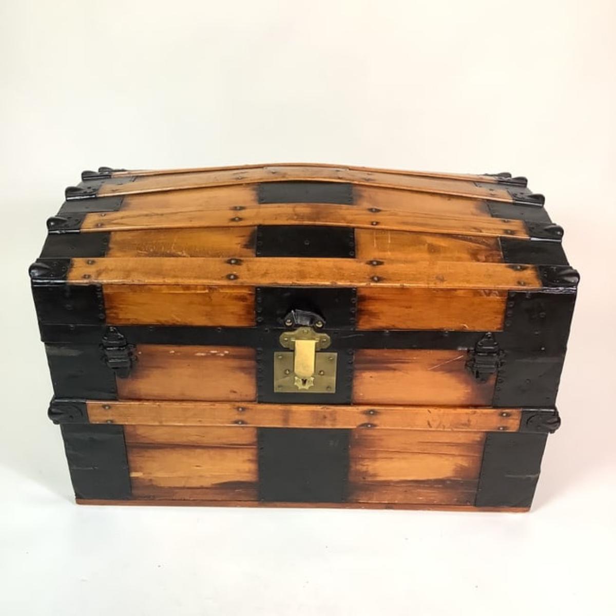 179 American Dome Top Metal Bound Vintage Steamer Trunk RESTORED