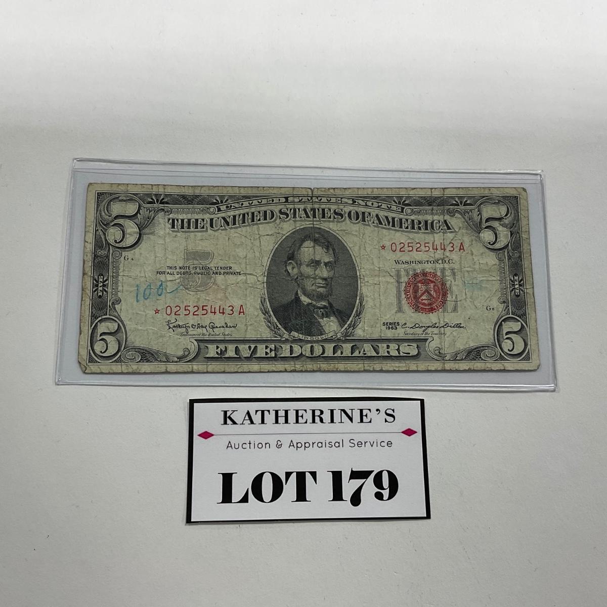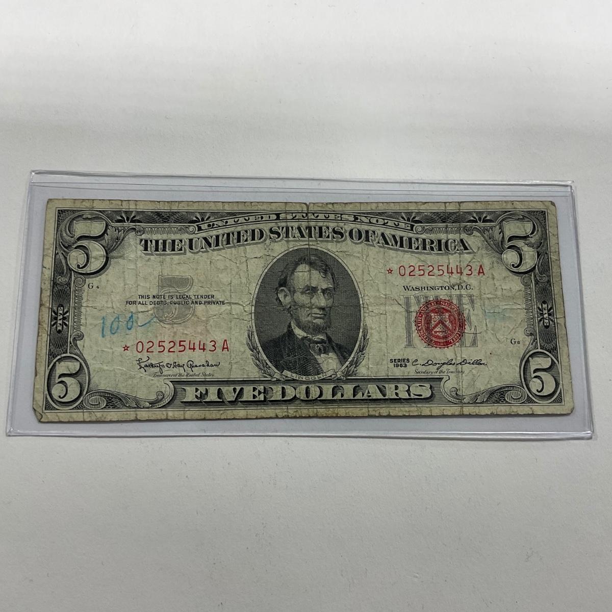 -179- CURRENCY | 1963 Red Seal Five Dollar Star Note