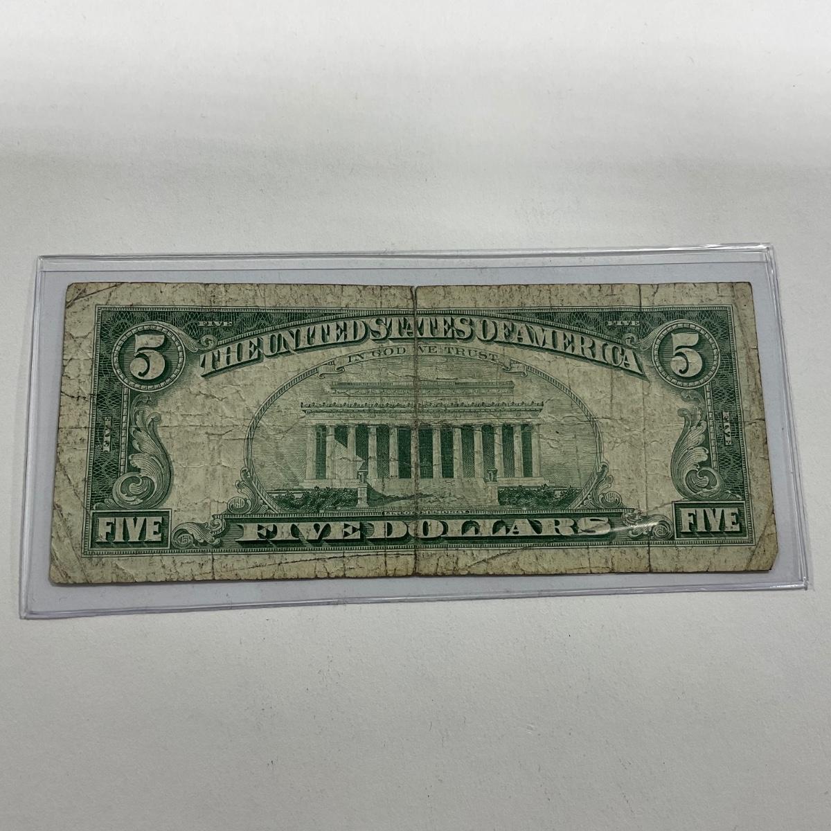 One 1963 five dollar red seal five dollar star note in circulated condition. Please see photos for details and condition. ::: Shipping is available on this lot. If you require shipping you must let us know at the close of the auction. We will coordinate with you after the item has been won. Shipping fees will include insurance up to or exceeding the value of all items being mailed. If you have any questions regarding this lot please contact the auctioneer either via this website, by direct email or by phone. PICK UP TIMES and other important information can be found in the TERMS and DESCRIPTION of the auction. Please take a look for pertinent information. Thanks!
