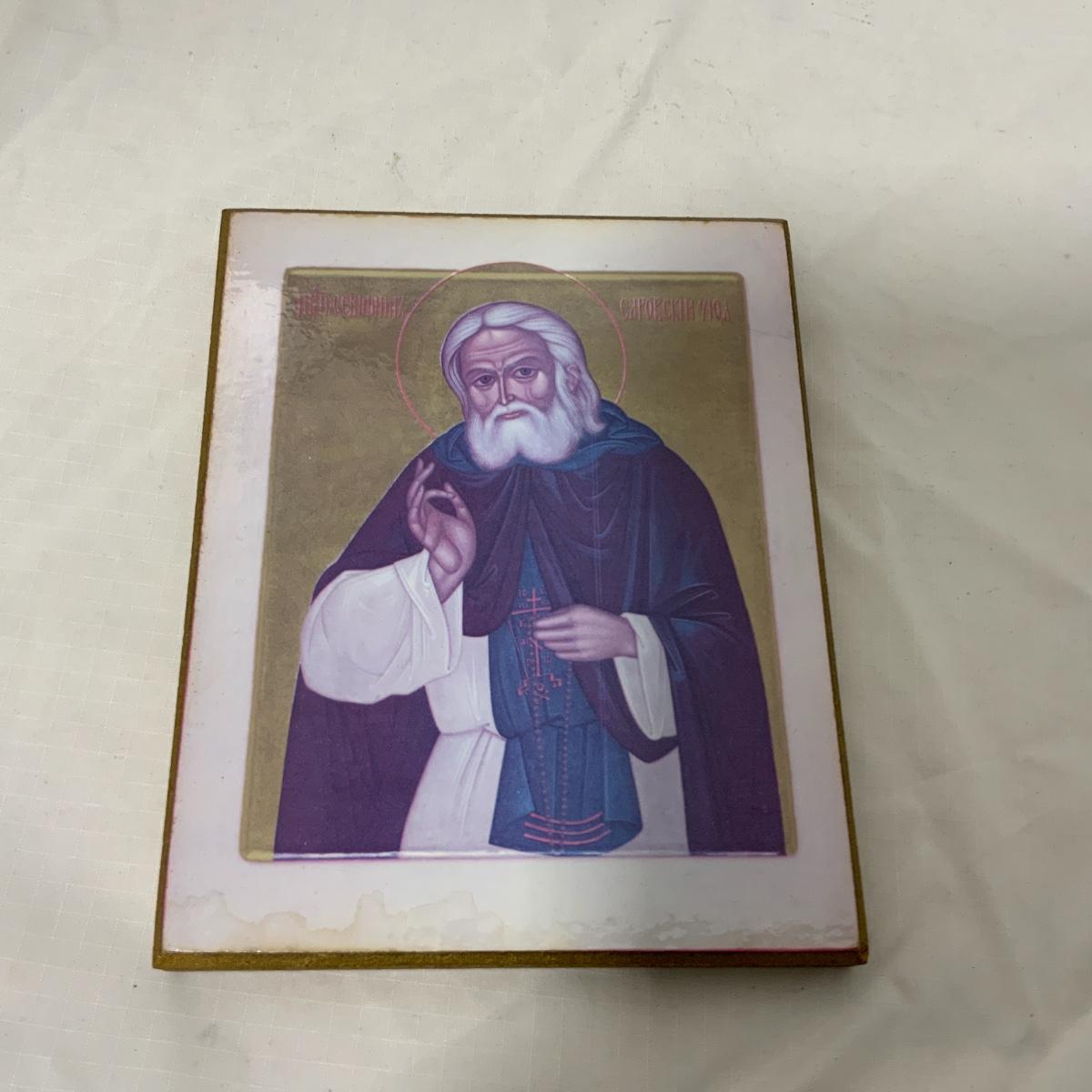 From the Estate of Peter Radovanovich: Eastern Orthodox depiction of Saint Seraphim of Sarov. Saint Seraphim of Sarov, born Prokhor Moshnin, is one of the most renowned Russian saints and is venerated in the Eastern Orthodox Church. He is generally considered the greatest of the 18th-century startsy. Seraphim extended the monastic teachings of contemplation, theoria and self-denial to the layperson. Please see photos for details and condition. ::: Shipping is available on this lot. If you require shipping you must let us know at the close of the auction. We will coordinate with you after the item has been won. Shipping fees will include insurance up to or exceeding the value of all items being mailed. If you have any questions regarding this lot please contact the auctioneer either via this website, by direct email or by phone. PICK UP TIMES and other important information can be found in the TERMS and DESCRIPTION of the auction. Please take a look for pertinent information. Thanks!