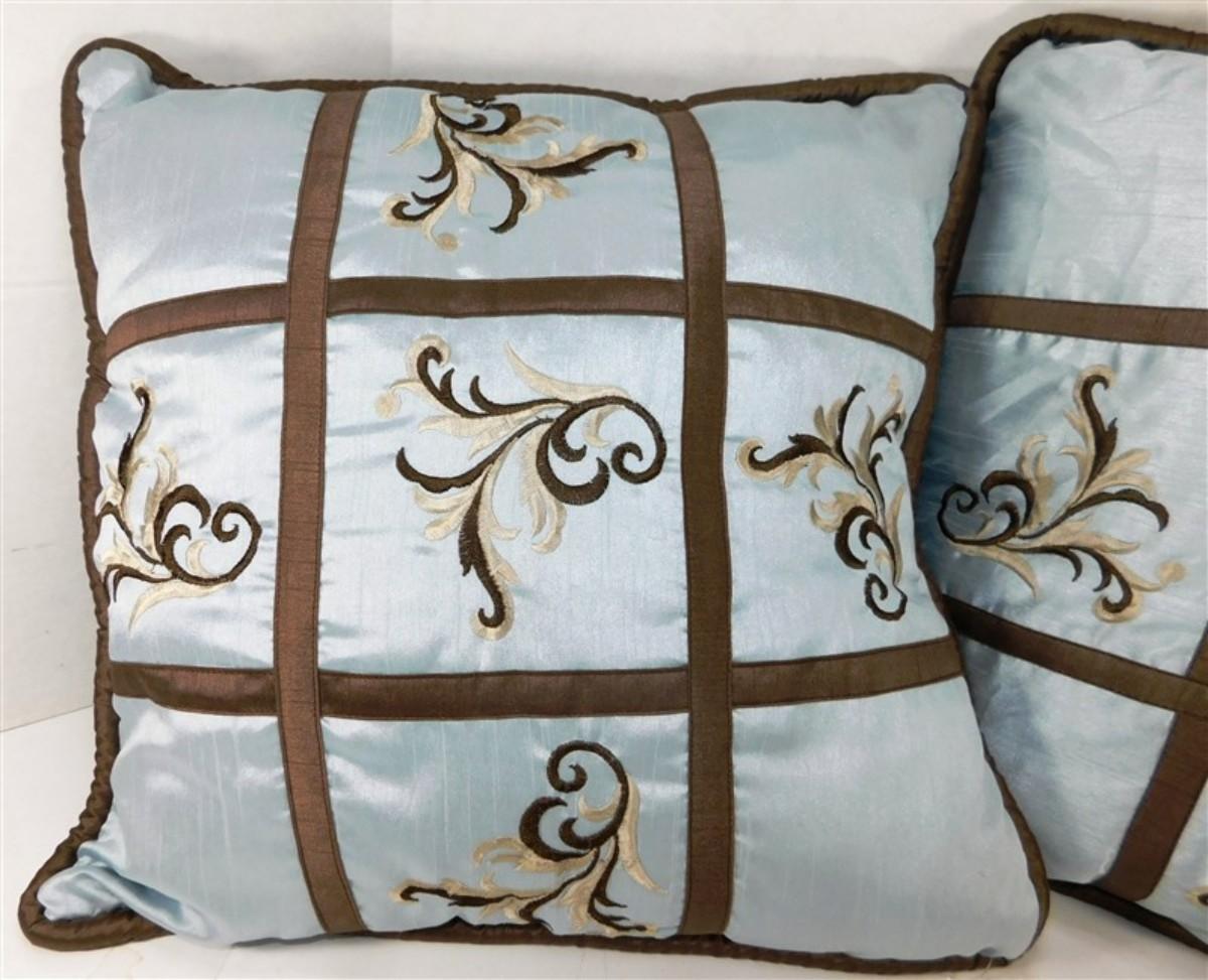 179 Lot of 2 Blue and Brown Floral Decorative Pillow 18 x 18