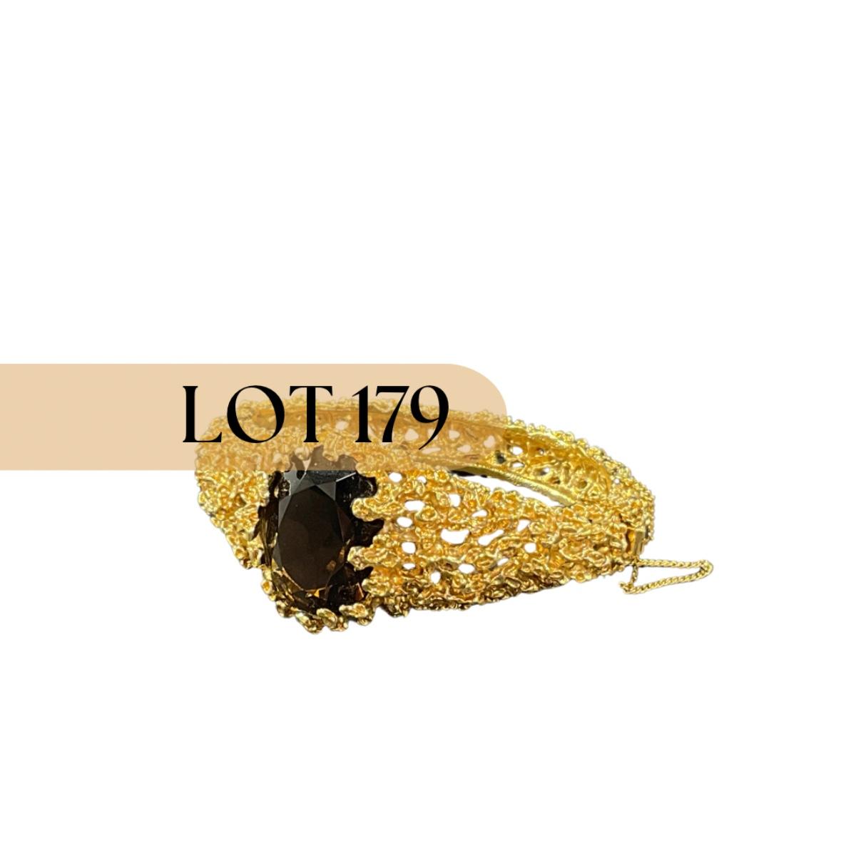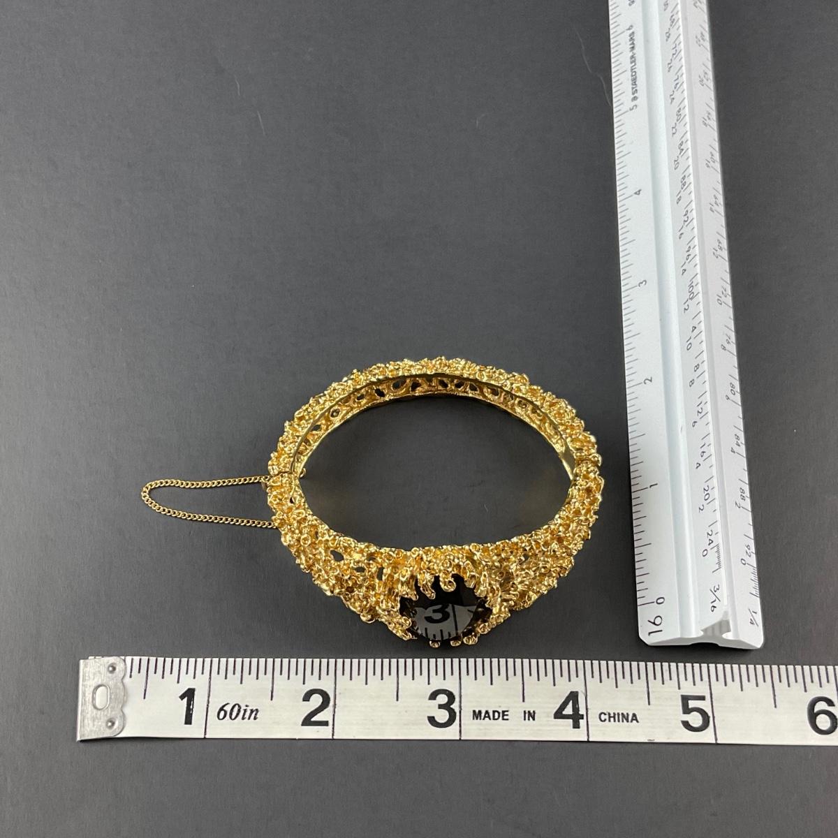 One marked Panetta gold tone hinged bracelet. This piece has no damage, and appears to be in great shape with no visable chips, cracks, or broken pieces. Please see photos for details and condition. Any condition statement is given as a courtesy to a client, is an opinion, and should not be treated as a statement of fact. Reference to condition written, oral or within a condition report shall not be regarded as a full account of condition and may not include all defects, alterations, or restorations. Absence of a condition report does not imply a lot is flawless or lacking imperfections or damage. Katherine’s Auction & Appraisal Service shall have no responsibility for any error or omission. Returns shall not be accepted on the basis of condition. ::: Shipping is available on this lot. If you require shipping you must let us know at the close of the auction. We will coordinate with you after the item has been won. Shipping fees will include insurance up to or exceeding the value of all items being mailed. If you have any questions regarding this lot please contact the auctioneer either via this website, by direct email or by phone. PICK UP TIMES and other important information can be found in the TERMS and DESCRIPTION of the auction. Please take a look for pertinent information. Thanks!