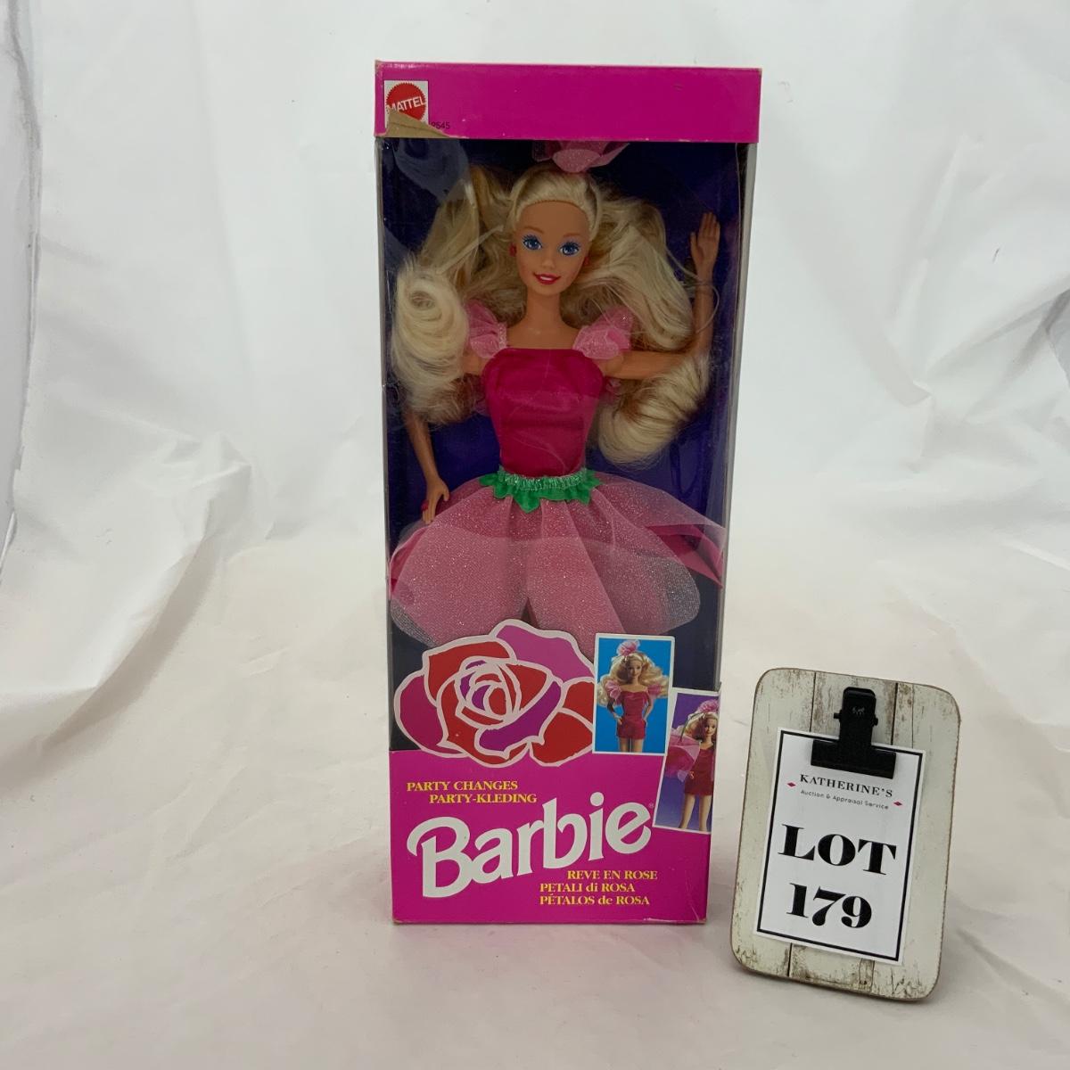 Party Changes Barbie, A stunning doll released by Mattel in 1992. Doll is new, in box. Box has some wear. Please see photos for details and condition. !!! Proceeds from this auction will be donated to the NEW COMMUNITY SHELTER in Green Bay, Wisconsin. Please see Sale Description to the Left for more information. !!! ::: Shipping is available on this lot. If you require shipping you must let us know at the close of the auction. We will coordinate with you after the item has been won. Shipping fees will include insurance up to or exceeding the value of all items being mailed. If you have any questions regarding this lot please contact the auctioneer either via this website, by direct email or by phone. PICK UP TIMES and other important information can be found in the TERMS and DESCRIPTION of the auction. Please take a look for pertinent information. Thanks!