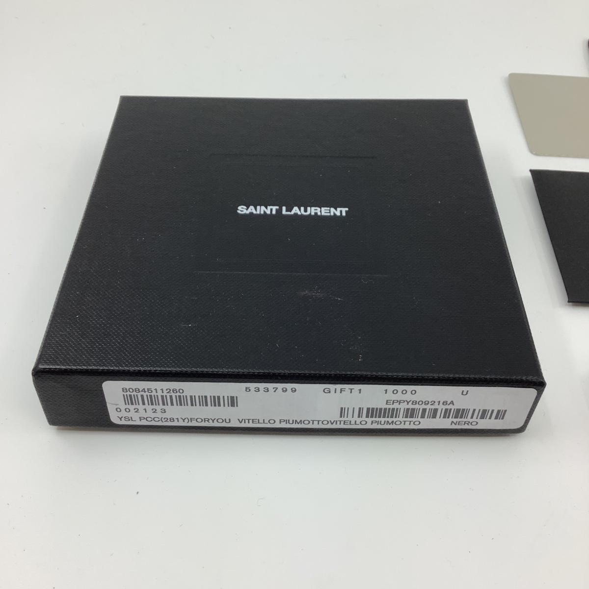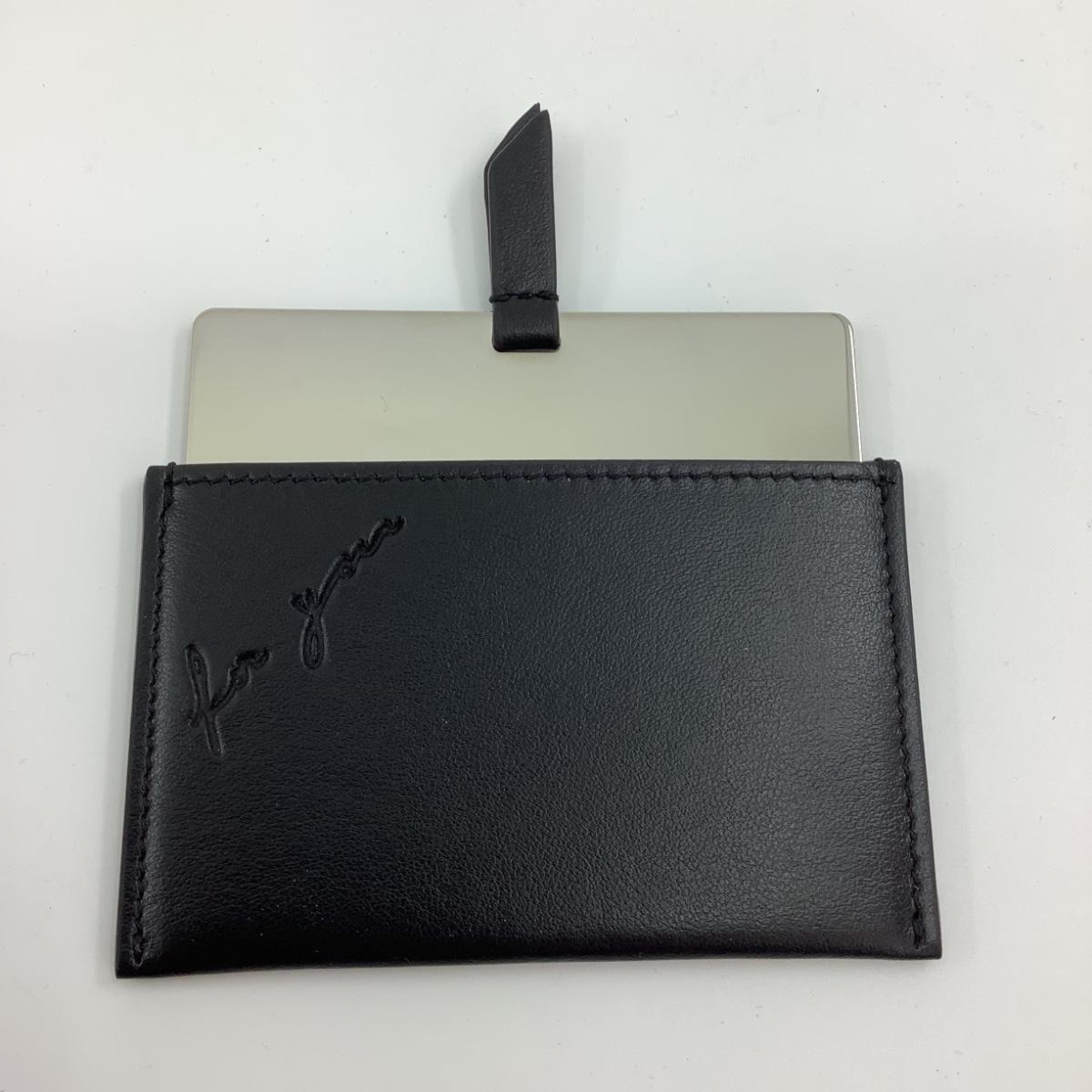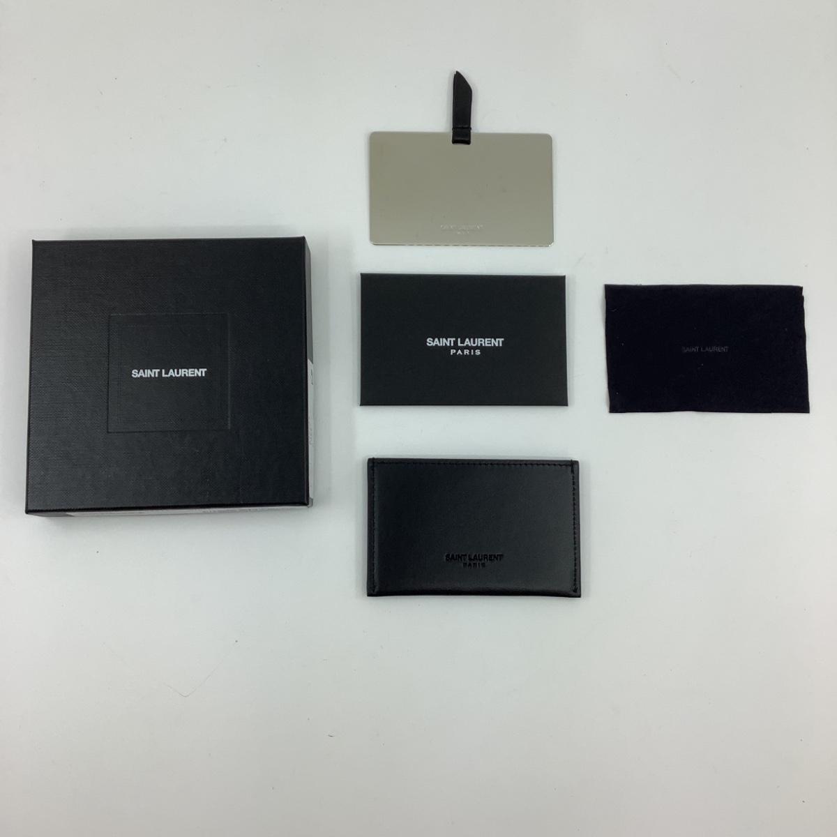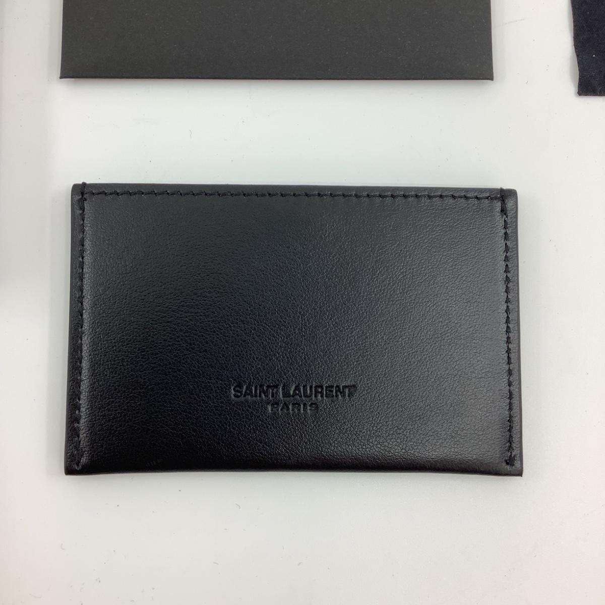 Authentic Saint Laurent black leather card case with wallet mirror. Includes cloth, booklet, authenticity card and gift box.