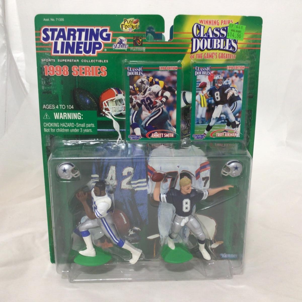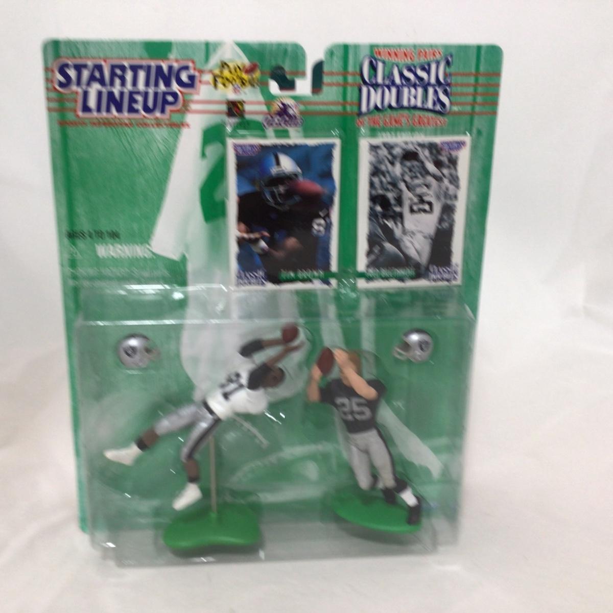 Four starting lineup classic doubles football figures. Please see photos for details and condition. ::: Shipping is available on this lot. If you require shipping you must let us know at the close of the auction. We will coordinate with you after the item has been won. Shipping fees will include insurance up to or exceeding the value of all items being mailed. If you have any questions regarding this lot please contact the auctioneer either via this website, by direct email or by phone. PICK UP TIMES and other important information can be found in the TERMS and DESCRIPTION of the auction. Please take a look for pertinent information. Thanks!