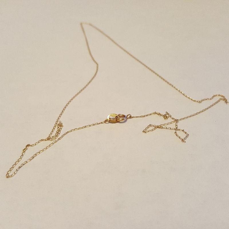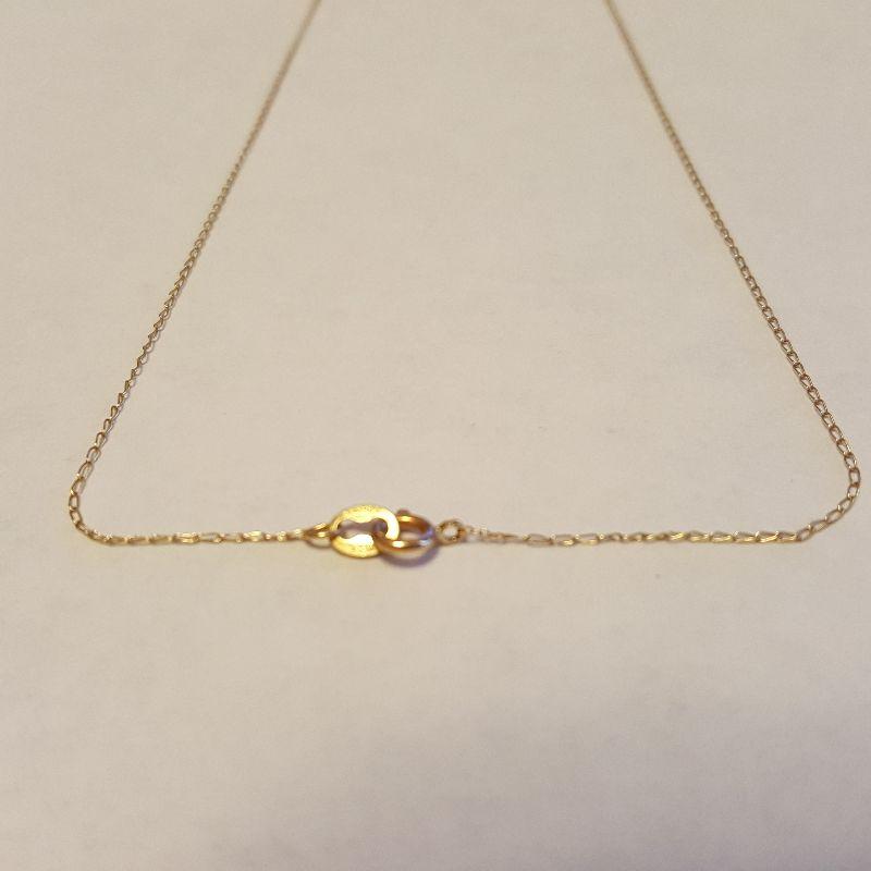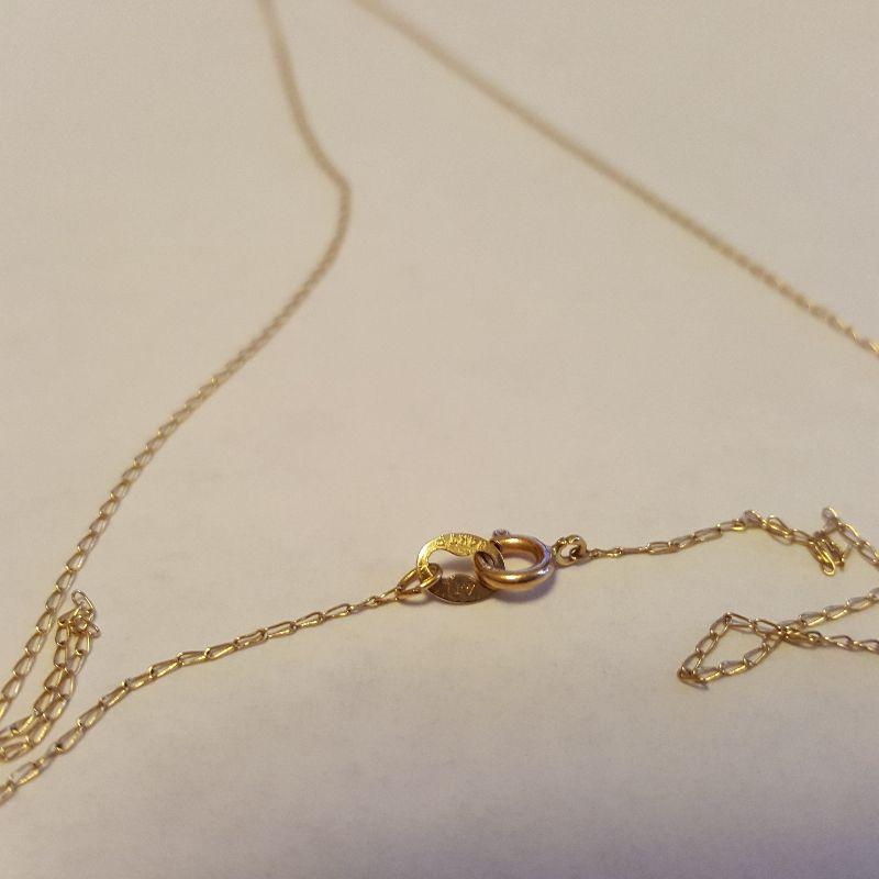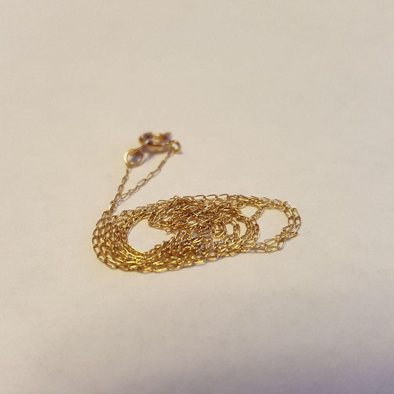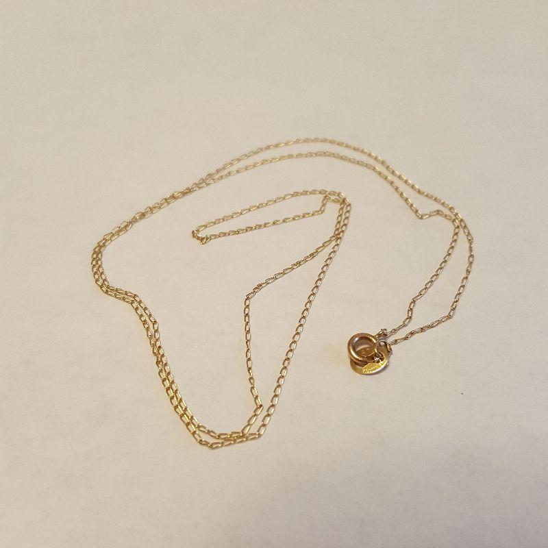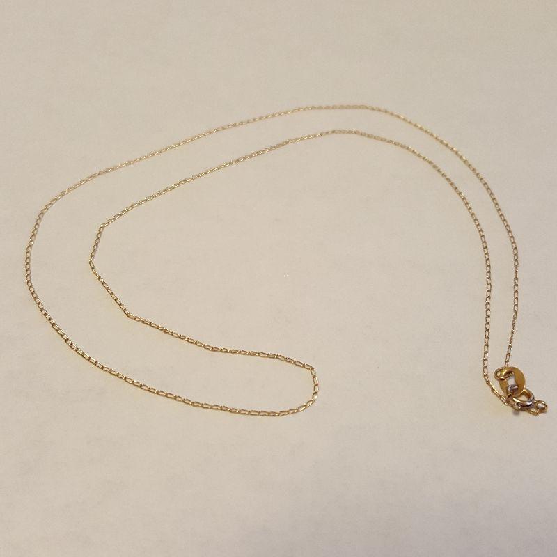 This auction lot is for a very fine loop 17-inch long Gold Necklace. The end clasp is marked 14K. This chain was weighted on our scale at .016ozt.