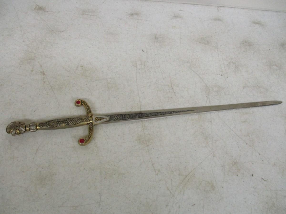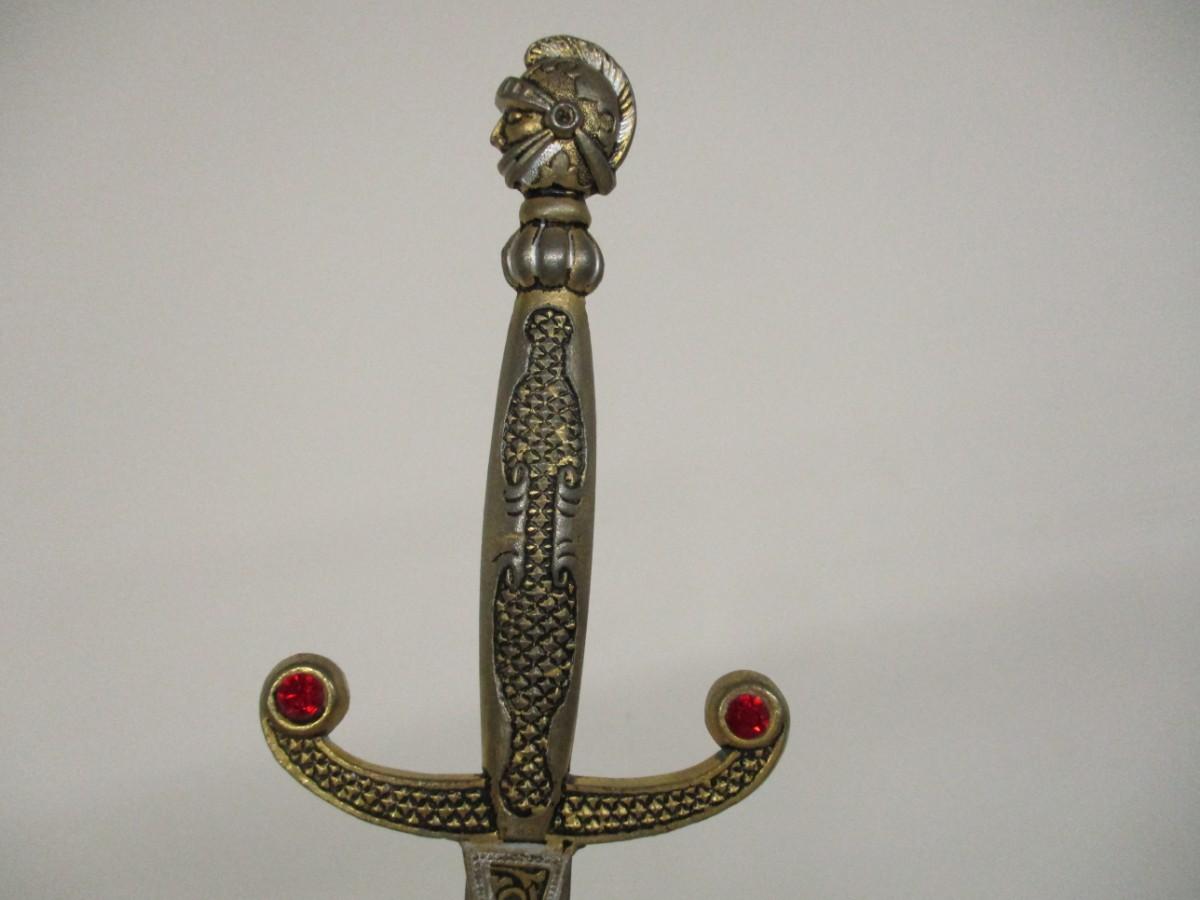 Knight Head Pummel Lodge Collectible Sword with Jewel Tipped Quillons