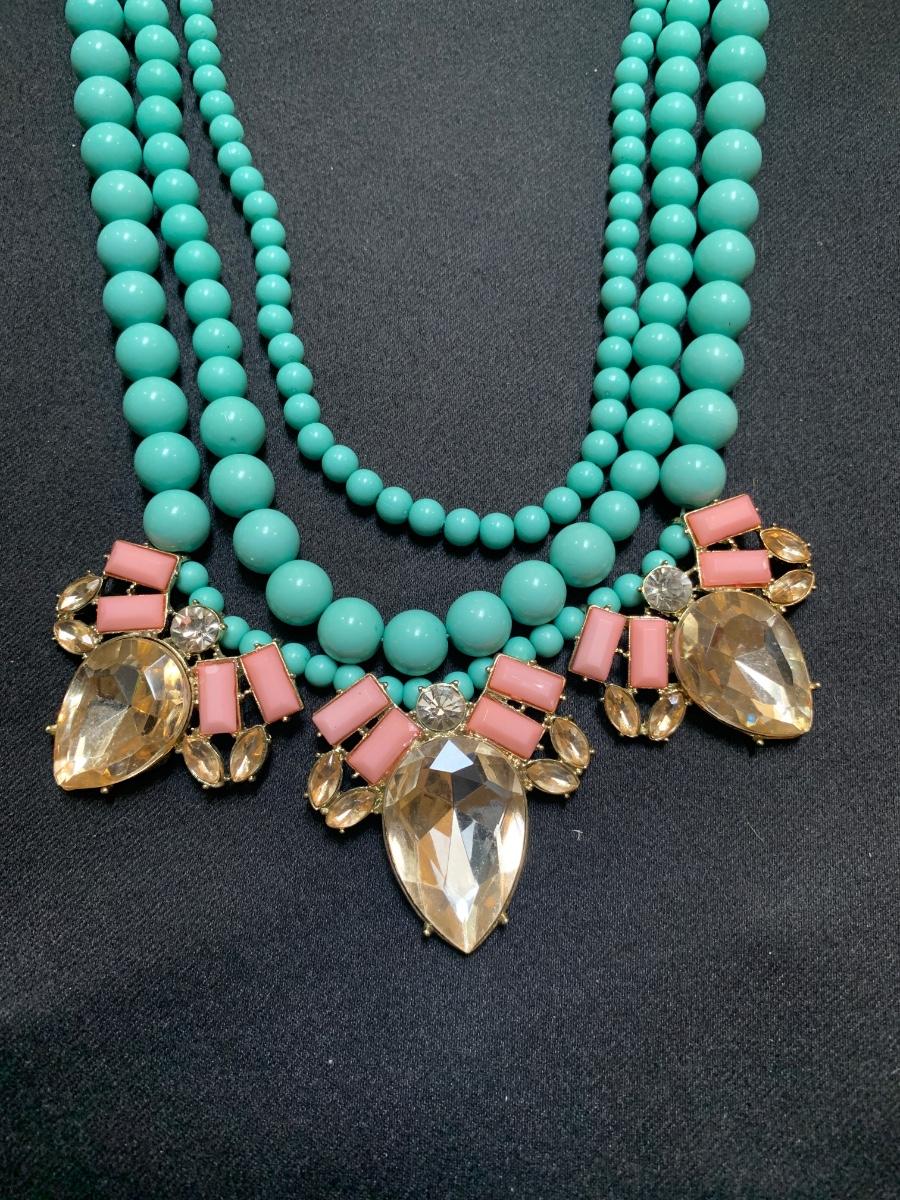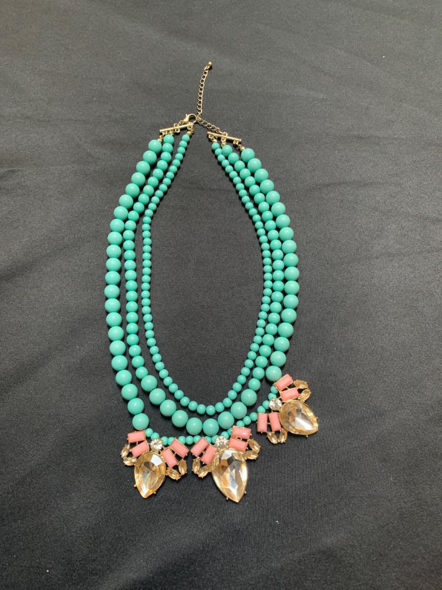 18” 3 Strand BeadedTurquoise Necklace with Pink Accent