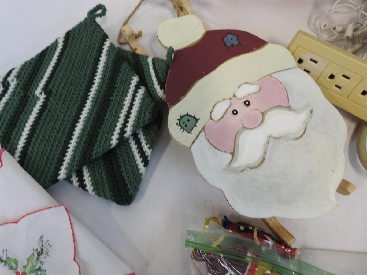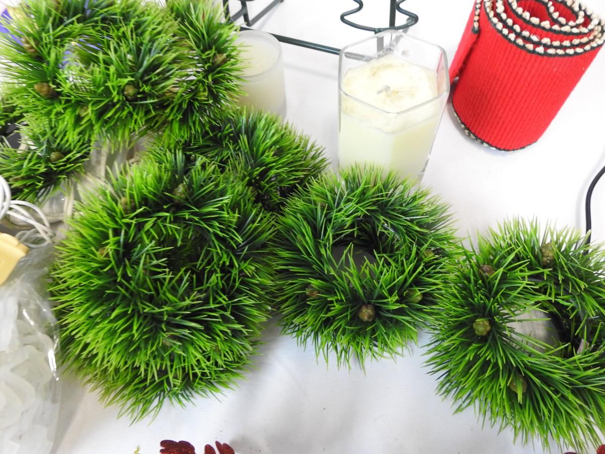 18+ Christmas Lot: Pyramid Ornaments, Small Wreathes, Santa Head Sleigh