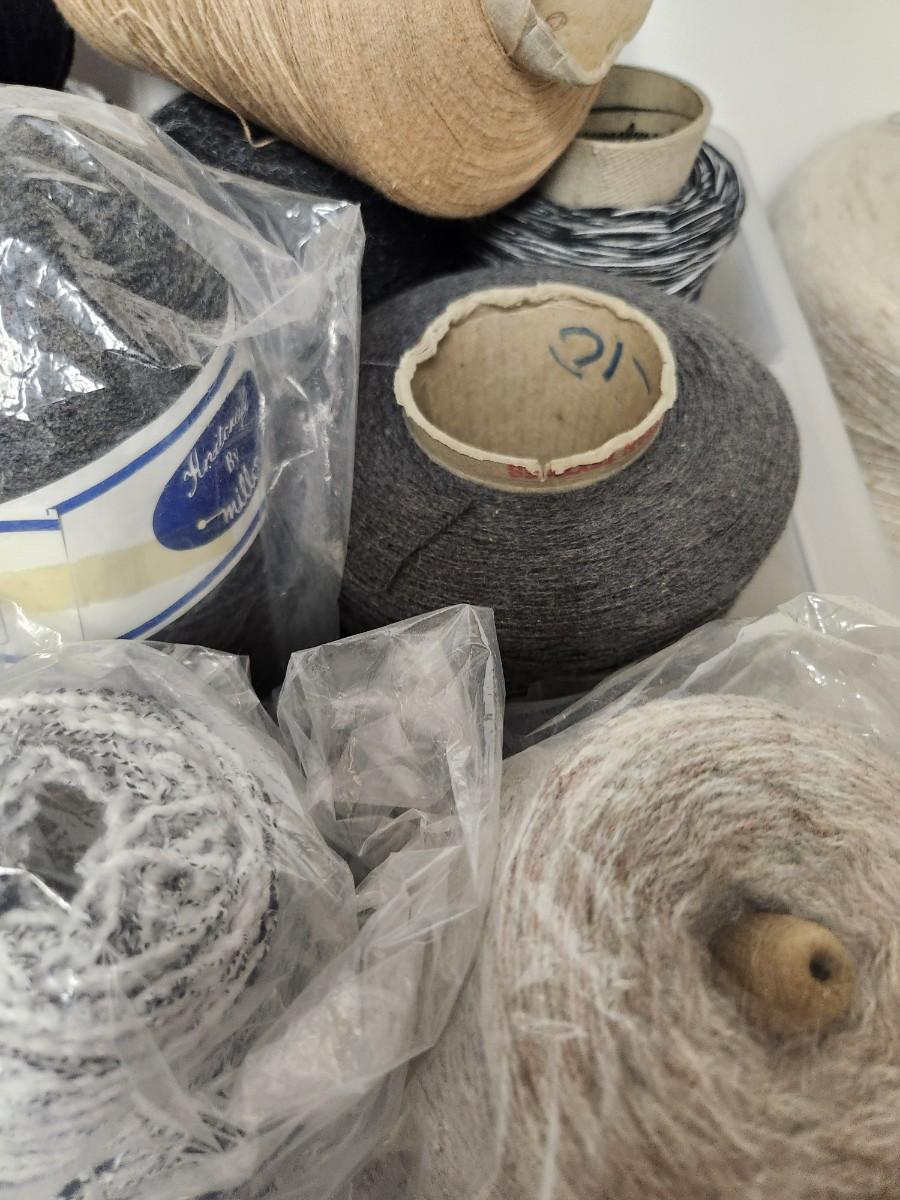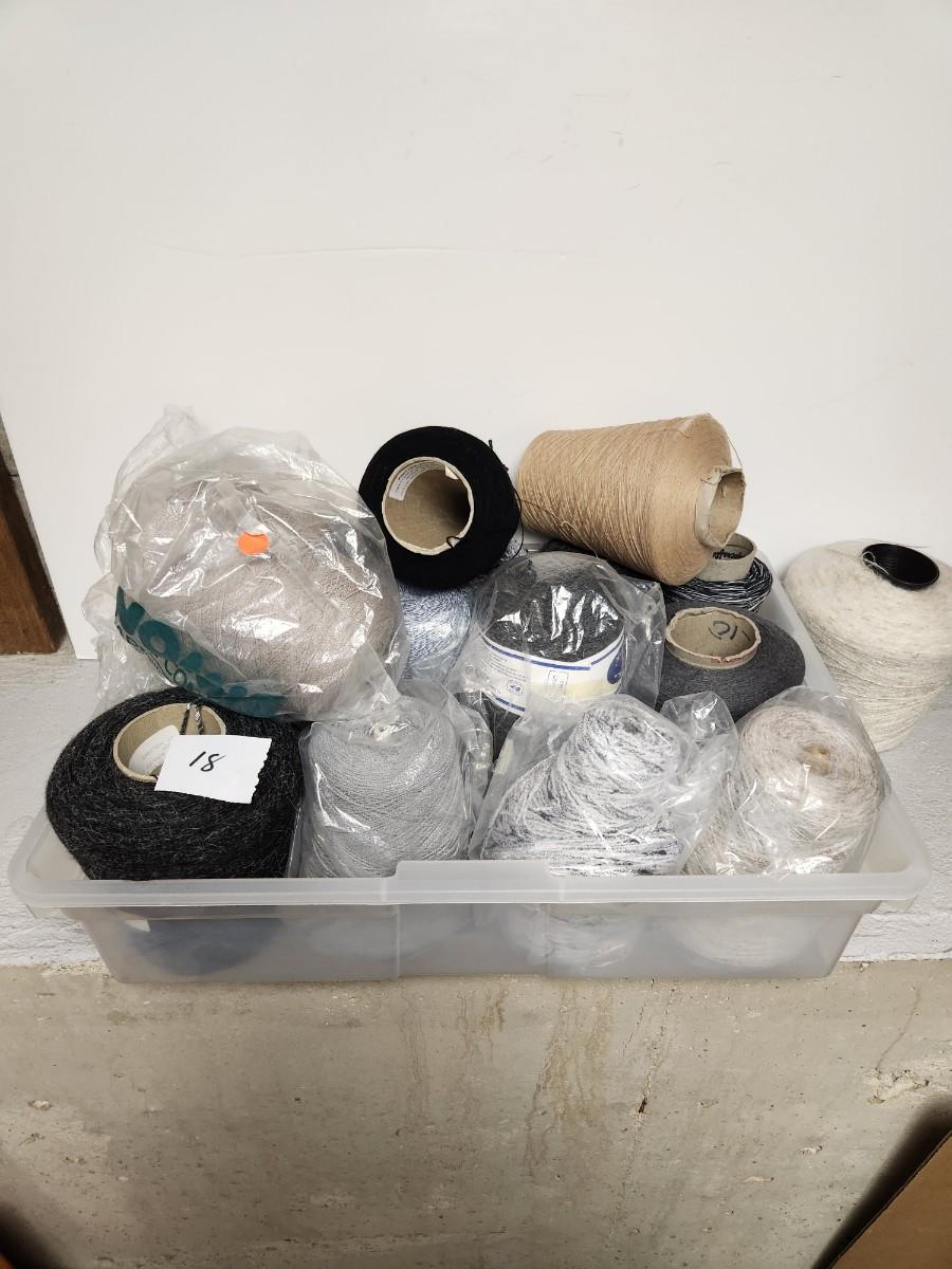 18 cones of yarn in greys